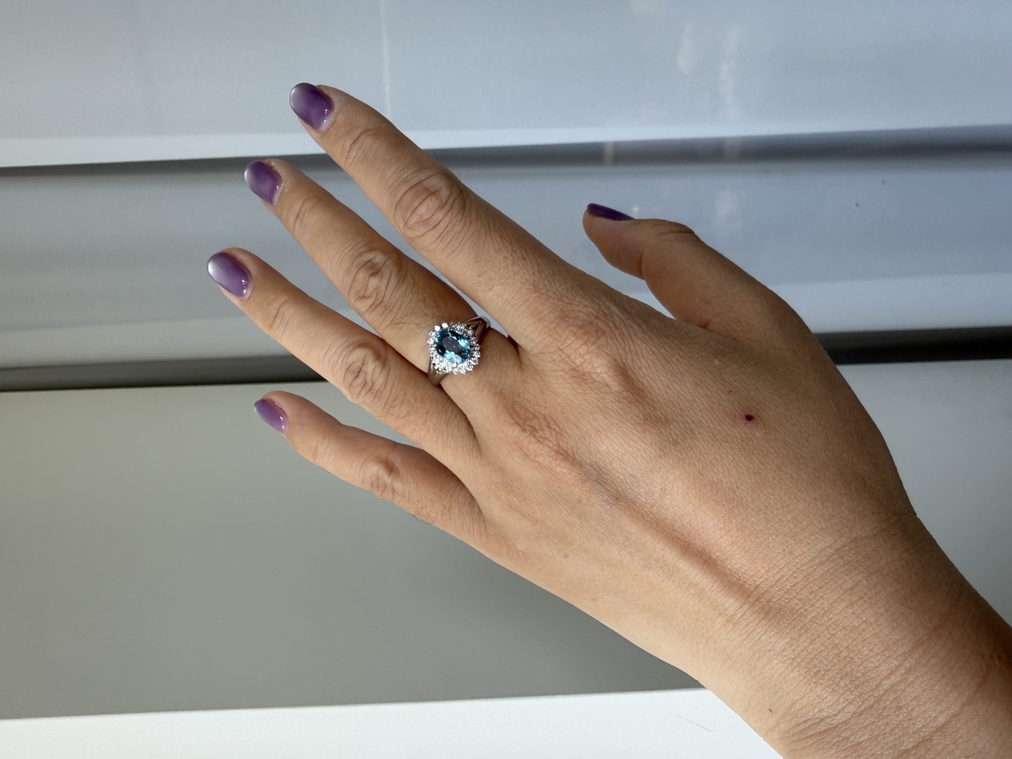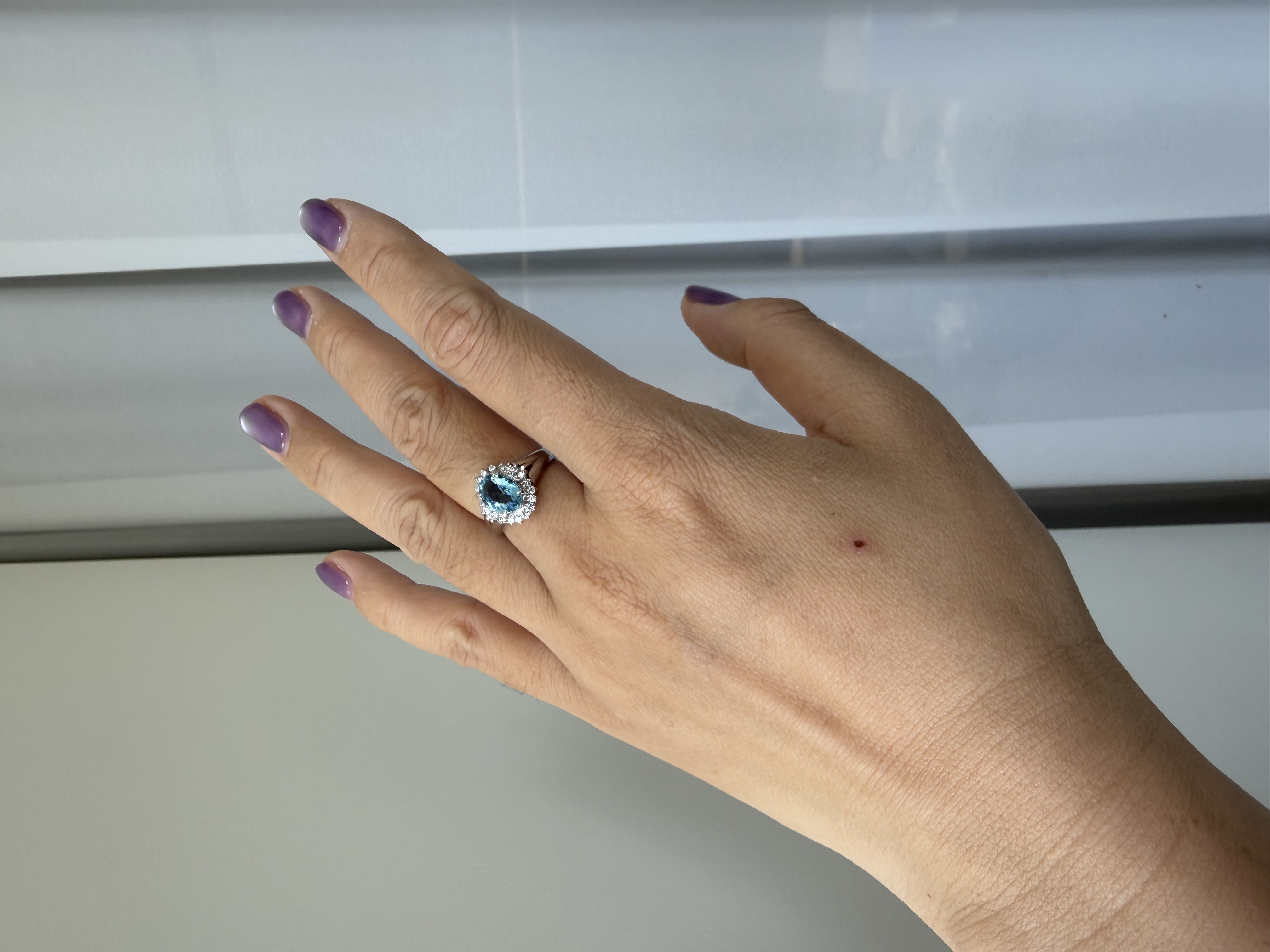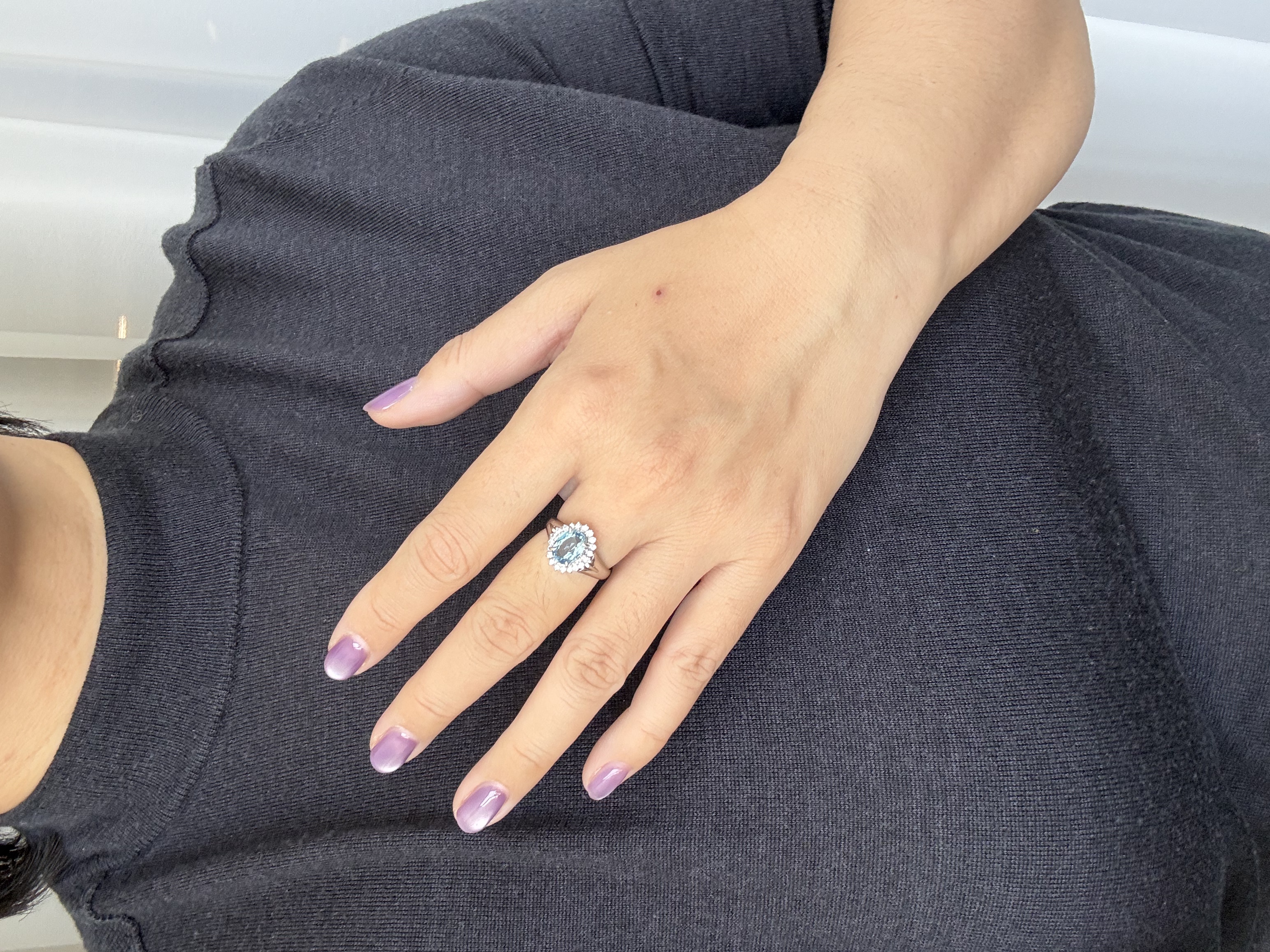 【日本溯源之旅】Pt900 海蓝宝钻石戒指 经典戴妃款 主石海蓝宝 1.38ct 围镶钻石 0.27ct 6.7g 指圈 13-15