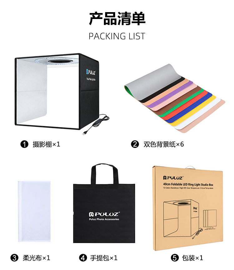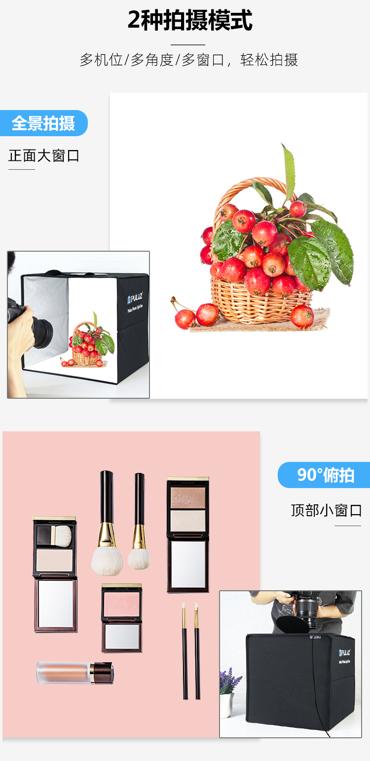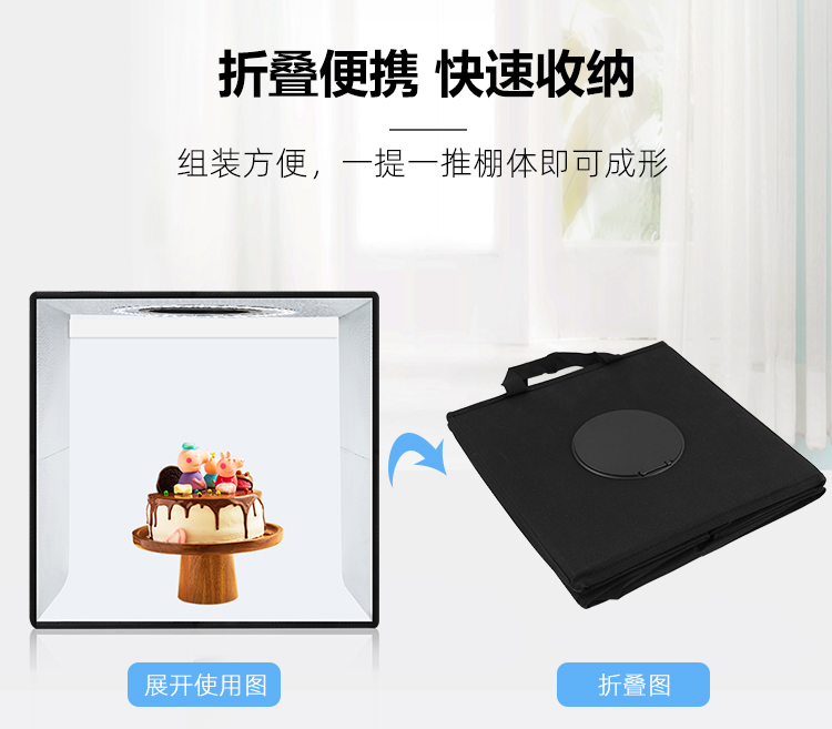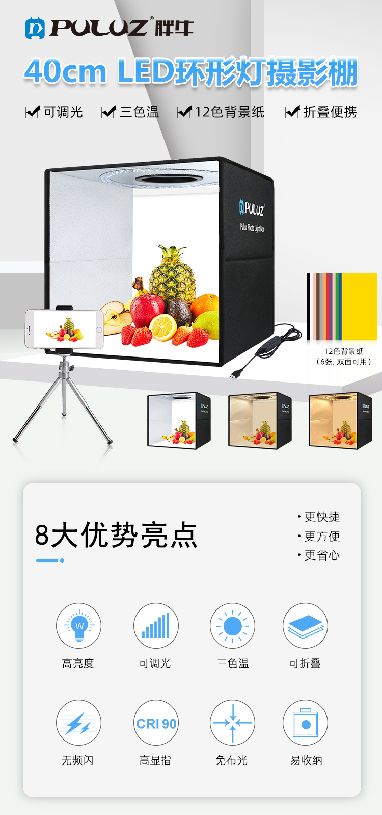 便携小型摄影棚电商产品拍照PU50401B升级版40cm24W/5500K白光单色温摄影灯箱柔光箱送6色背景纸摄影棚套装