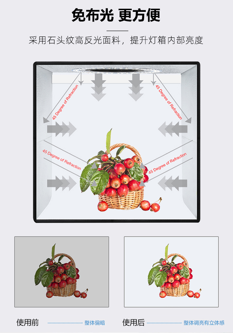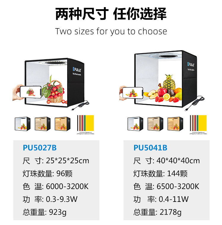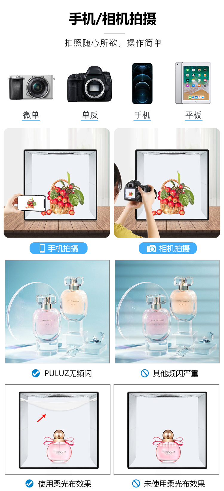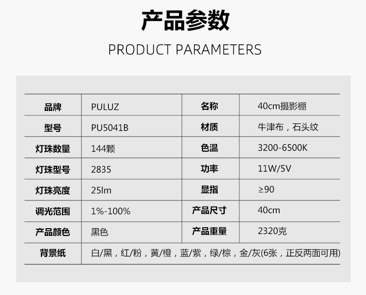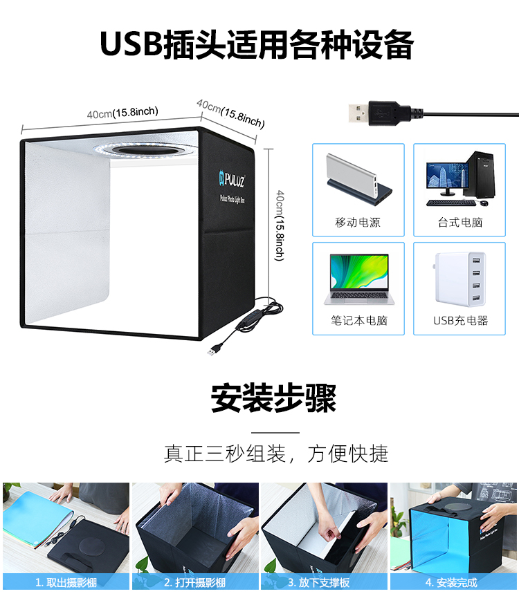 便携小型摄影棚电商产品拍照PU50401B升级版40cm24W/5500K白光单色温摄影灯箱柔光箱送6色背景纸摄影棚套装