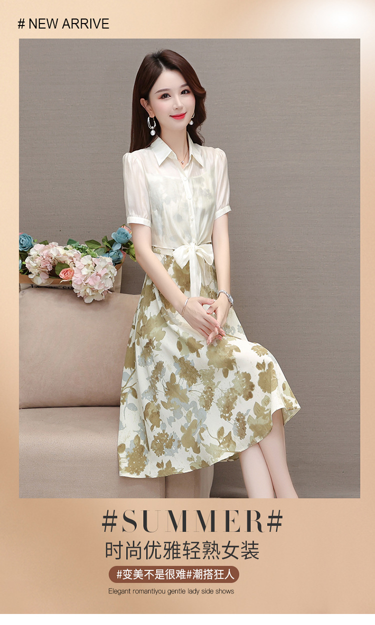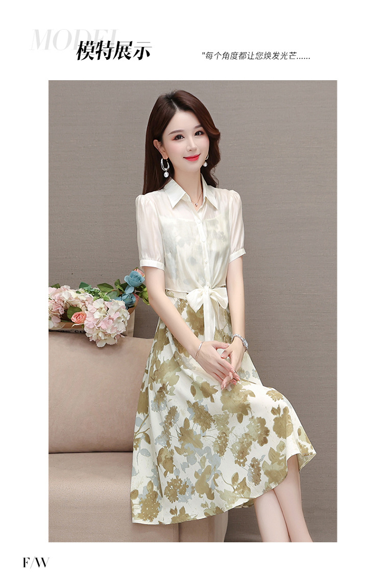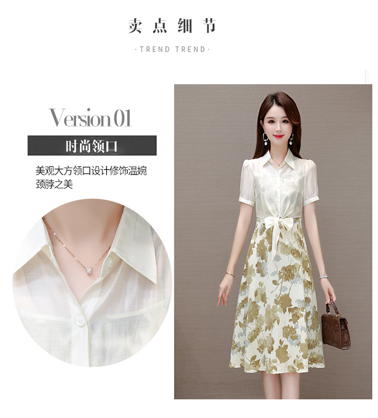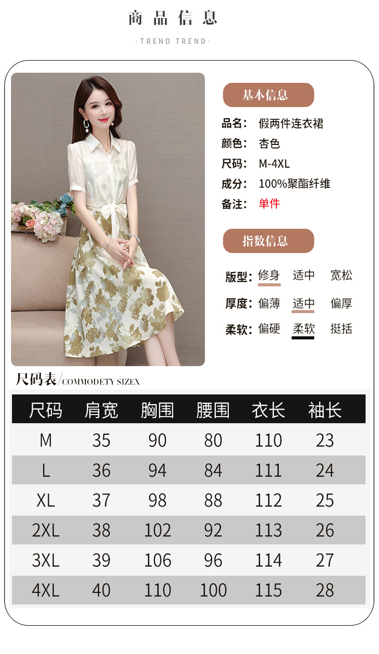 夏季新款,假两件印花裙中长款短袖裙时尚气质女装连衣裙QYM-YX-ZR23091-Y