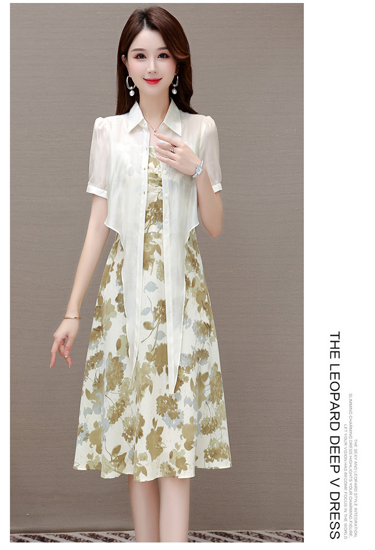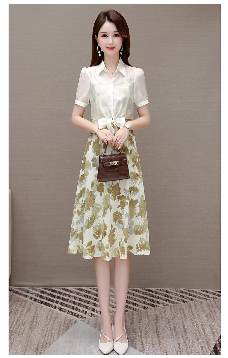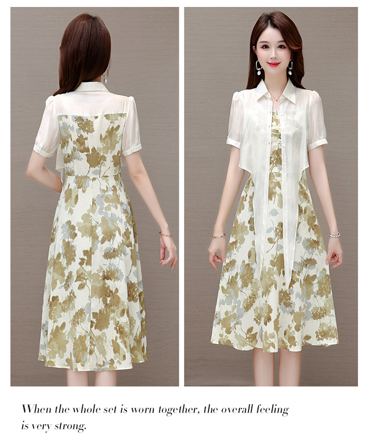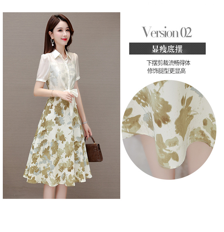 夏季新款,假两件印花裙中长款短袖裙时尚气质女装连衣裙QYM-YX-ZR23091-Y