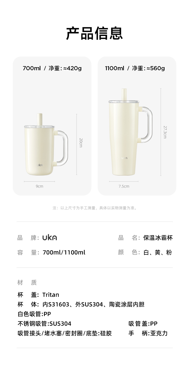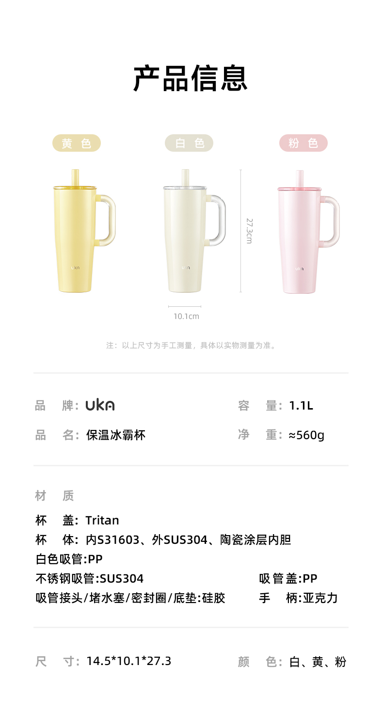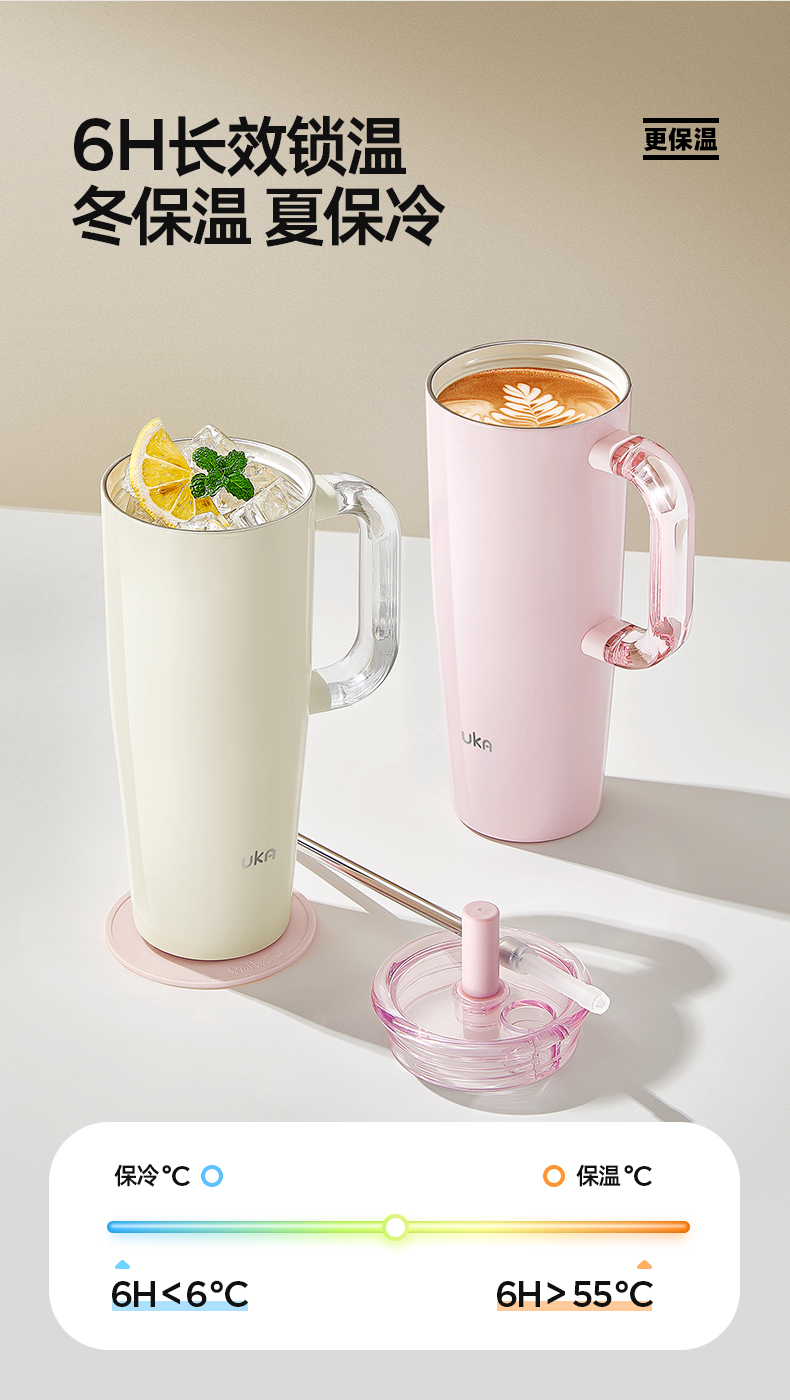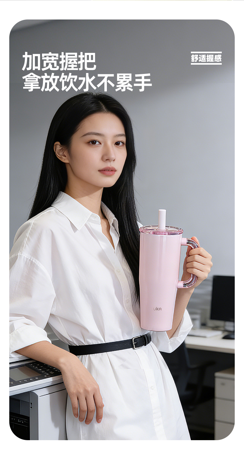 UKA大容量BLING星闪冰霸杯车载高颜值吸管杯保温保冷办公手柄水杯