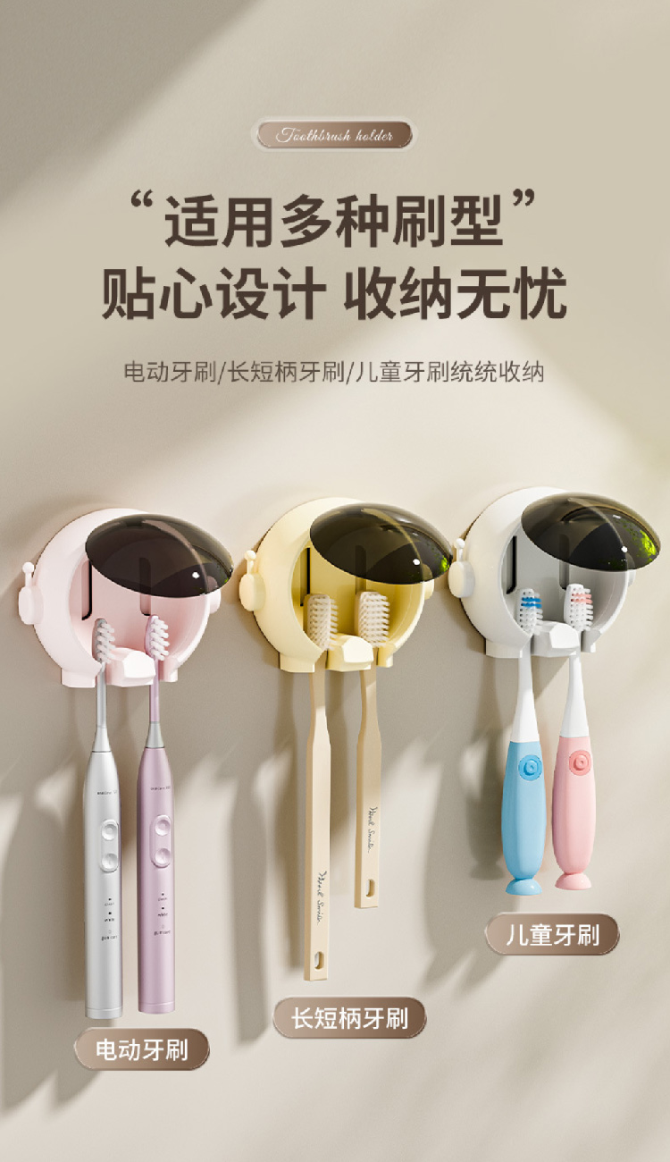 卡通壁挂式免打孔卫生间置物架电动儿童牙刷挂架家用情侣牙刷架