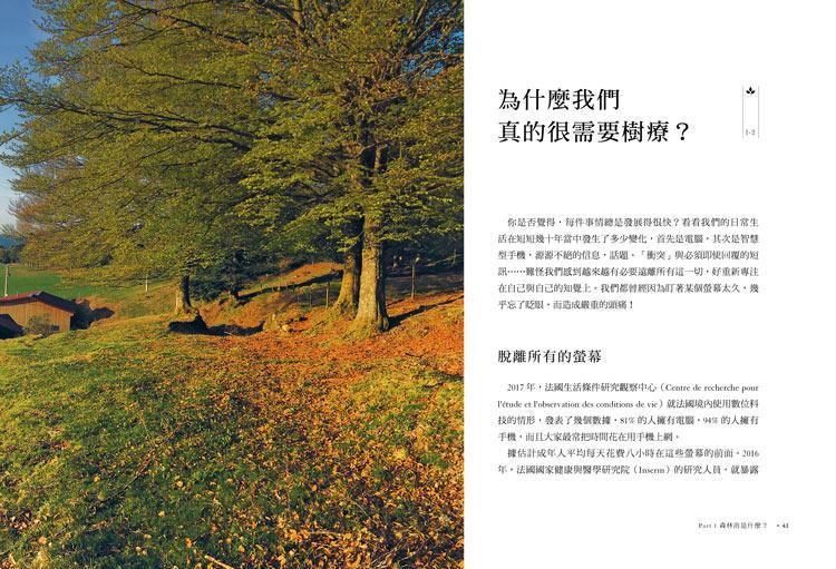 ◆從森林浴和樹療法是什麼到樹是怎麼工作的,從有益身心的30種樹種到如何進行森林浴,從依個人需求從事專屬森林浴到各國對森林保育和生態永續的倡議,詳盡解說相關知識和趨勢!