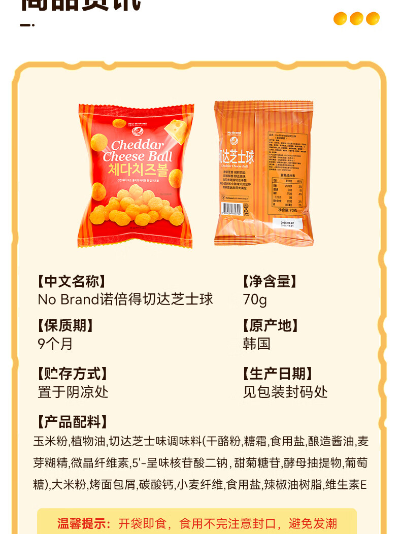 NoBrand切达芝士球(膨化食品)70g/056512 醇厚奶香咸甜交织颗颗酥脆