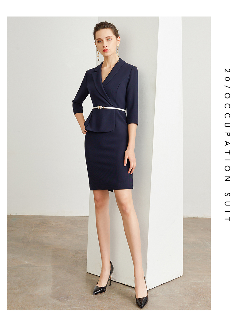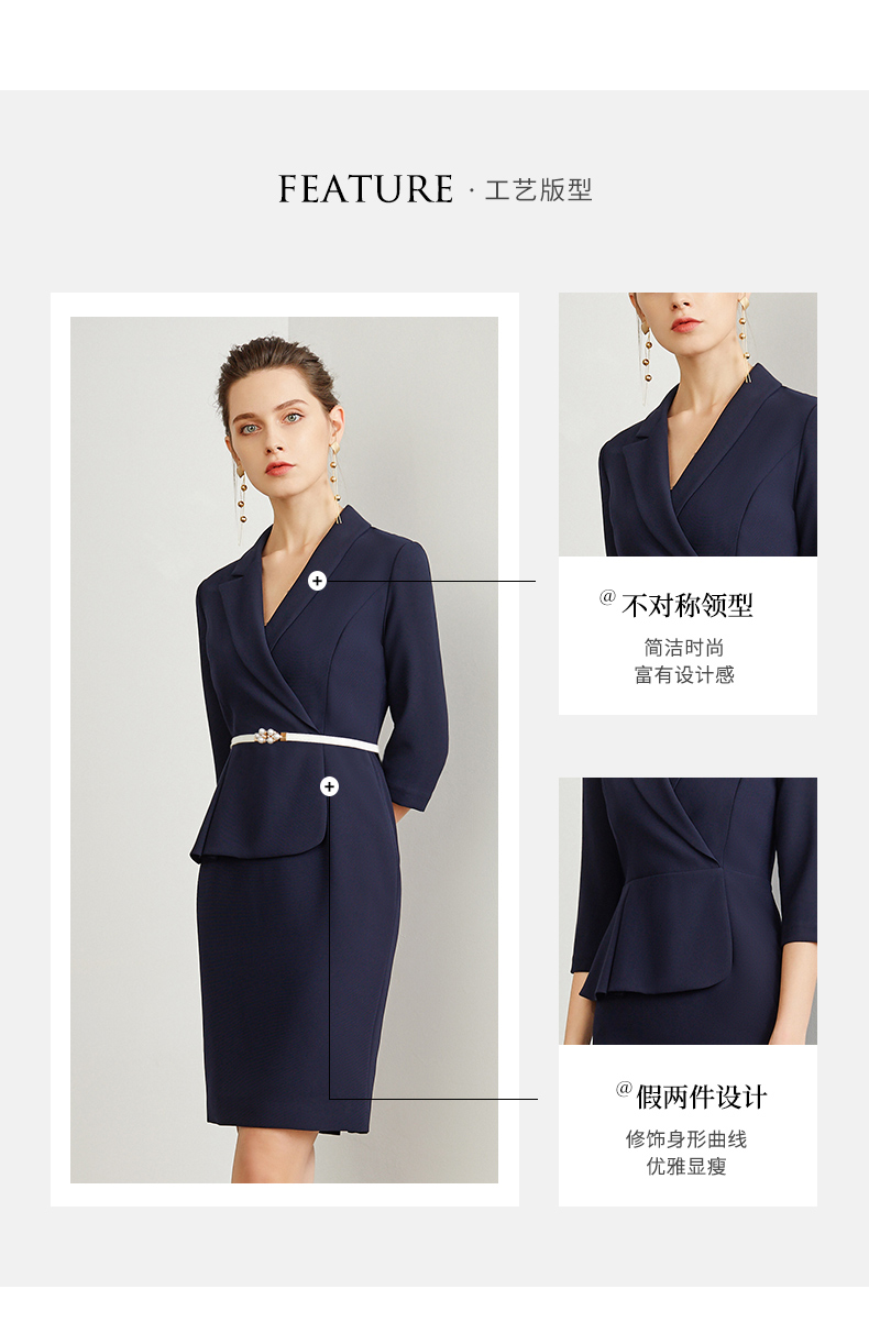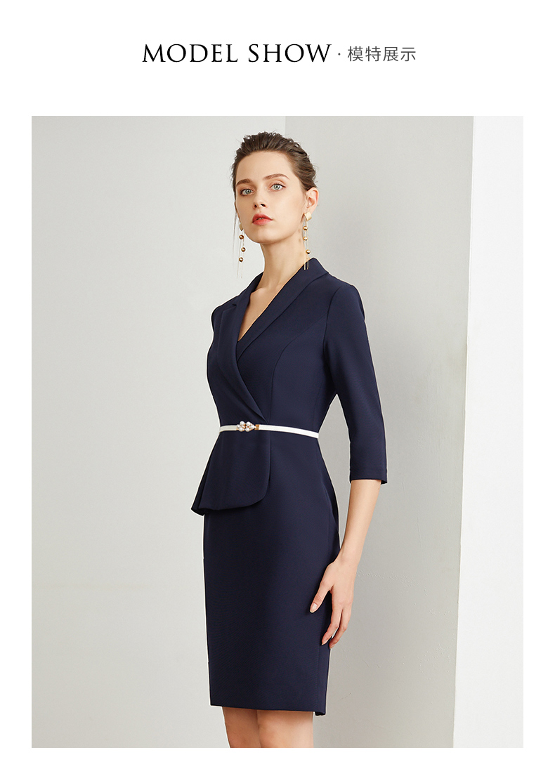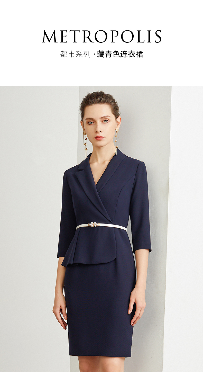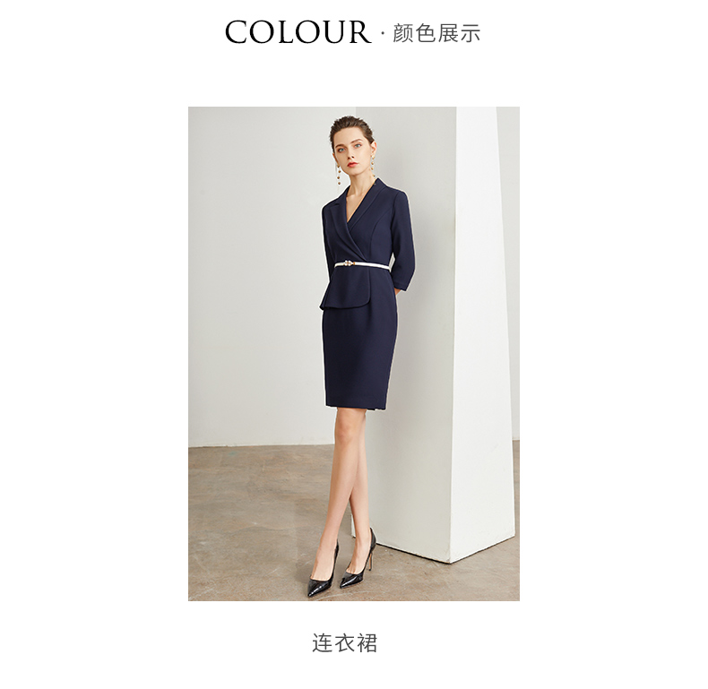 IWY/藏青色腰带收腰时尚气质连衣裙女商务通勤干练职场女神范工作服装 Q472