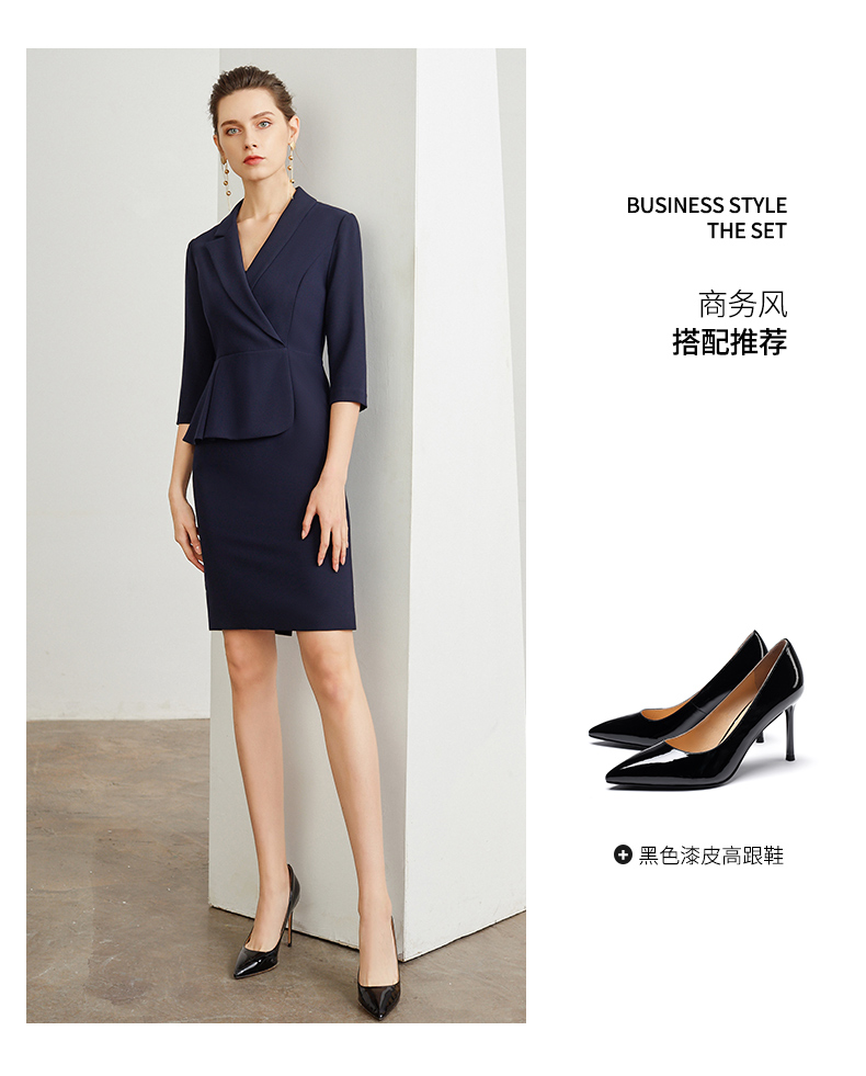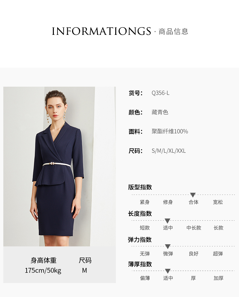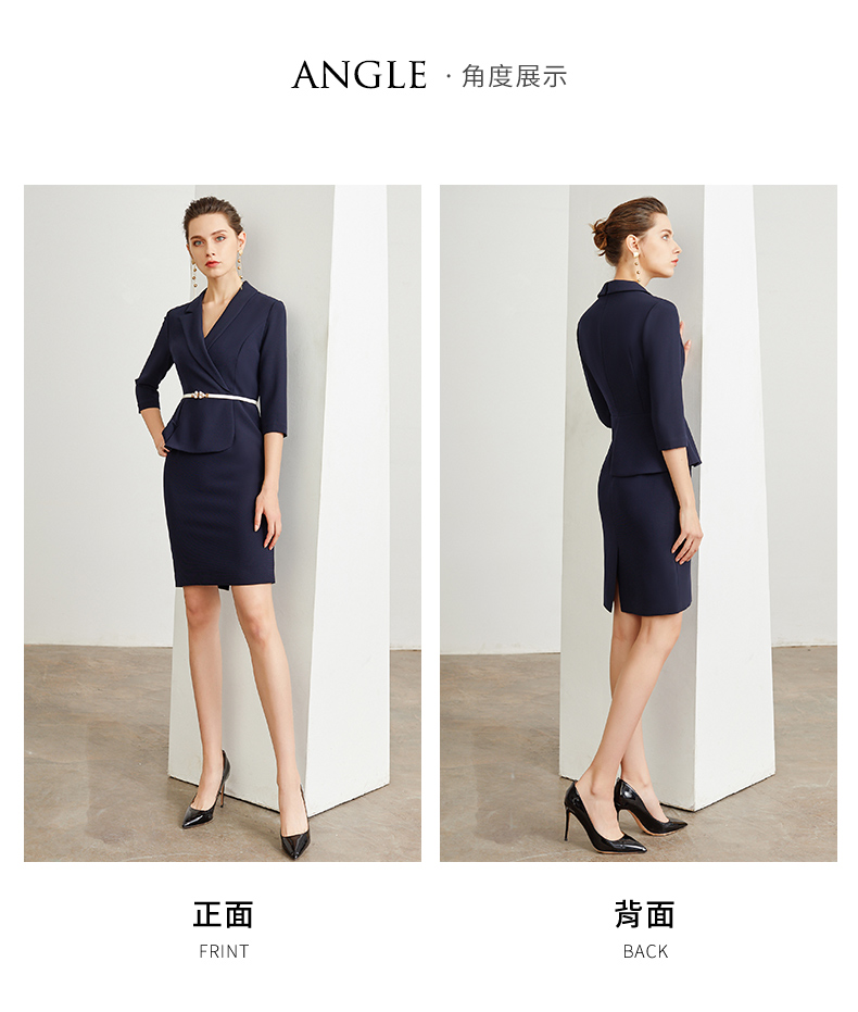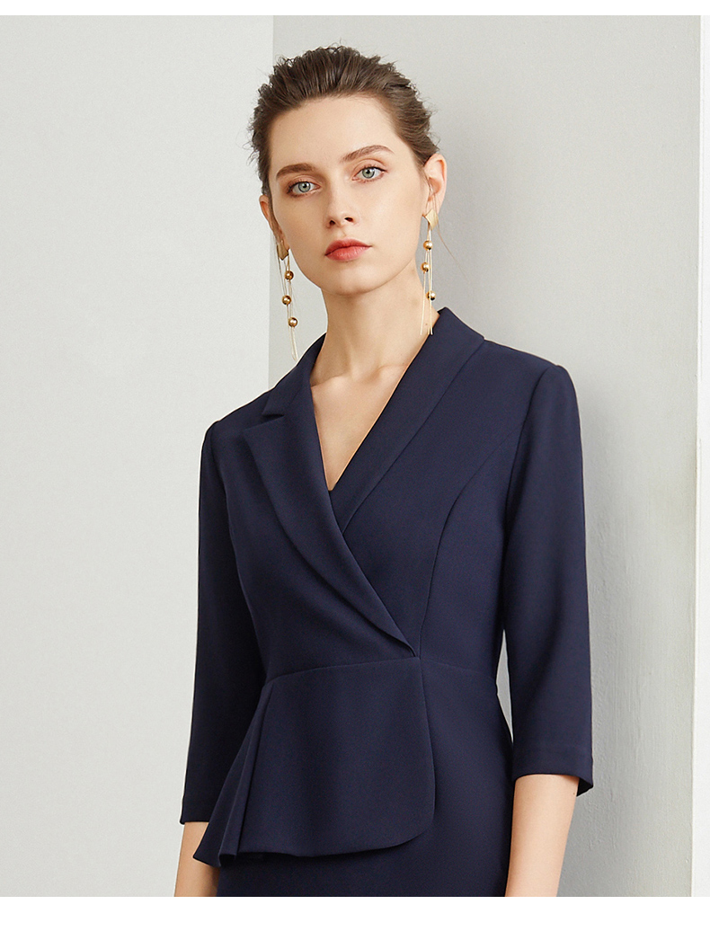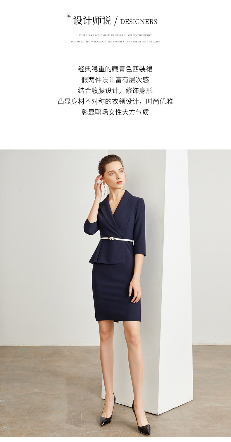 IWY/藏青色腰带收腰时尚气质连衣裙女商务通勤干练职场女神范工作服装 Q472