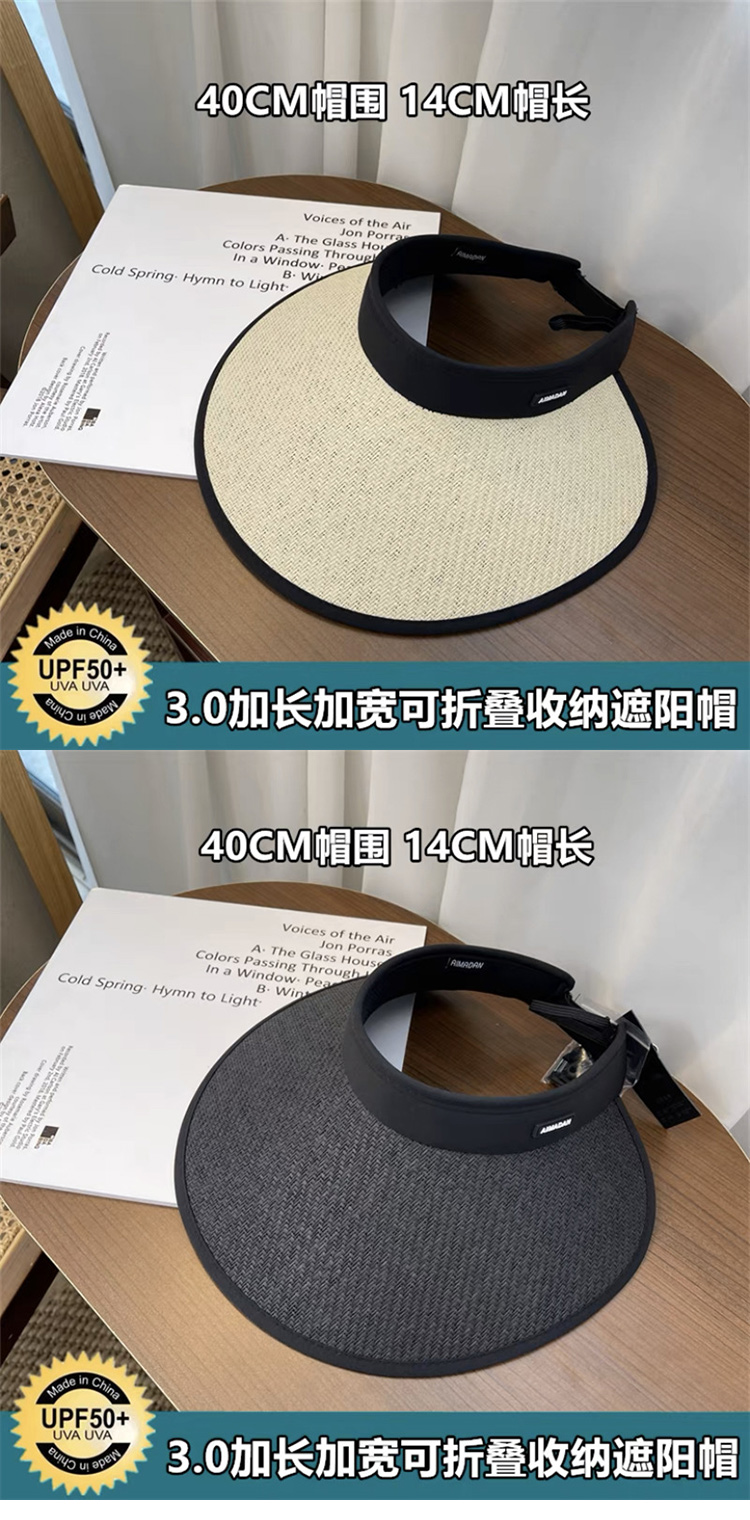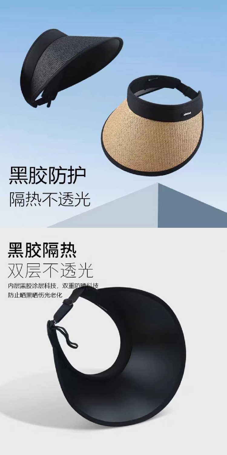 【竹编黑胶防晒帽】升级版可卷草编空顶帽子 夏季防紫外线骑车防晒遮阳帽