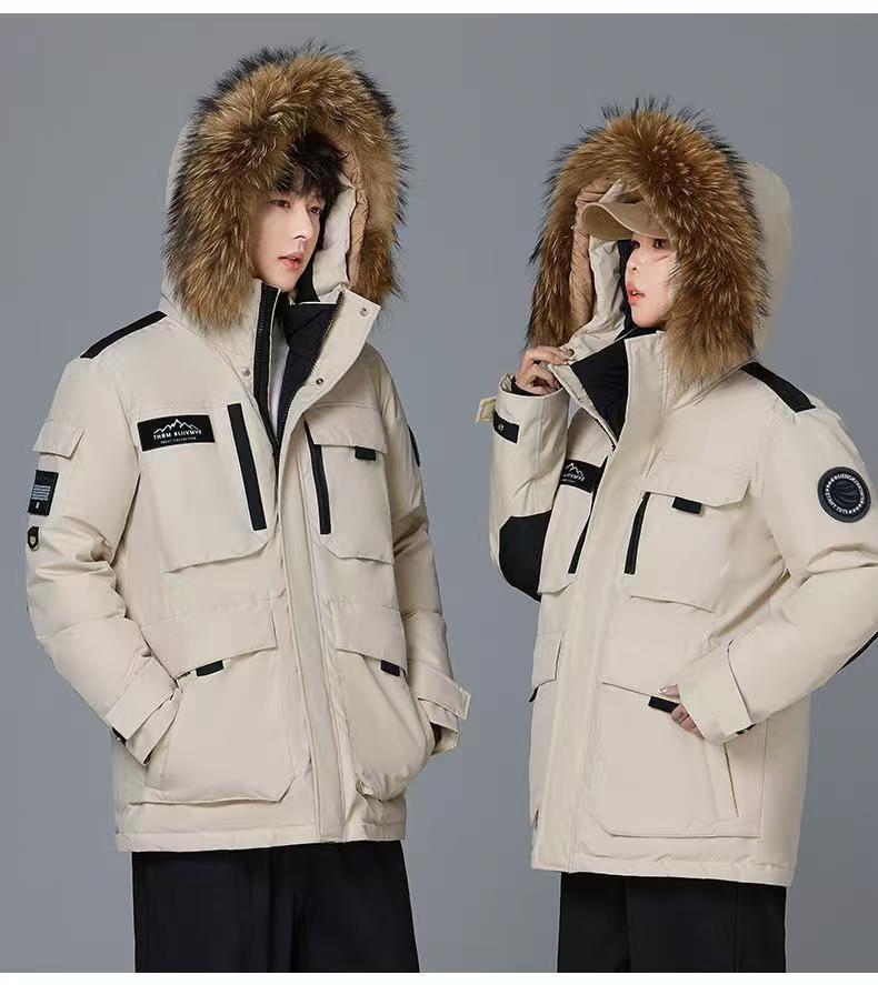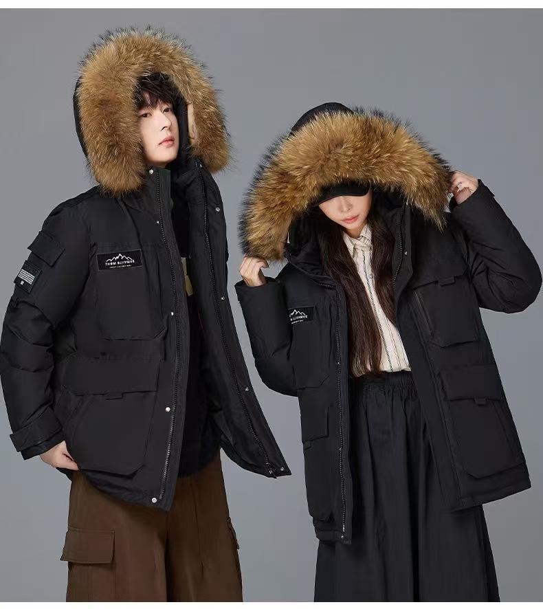 【保暖锁温❗️时尚简约】2025新款加厚情侣工装防寒服冬季男女中长款带毛领户外保暖羽绒服。jb