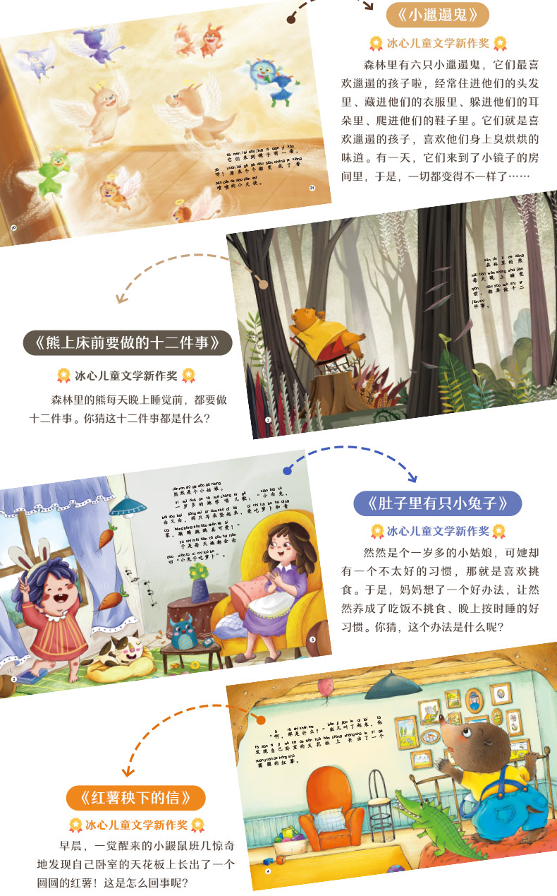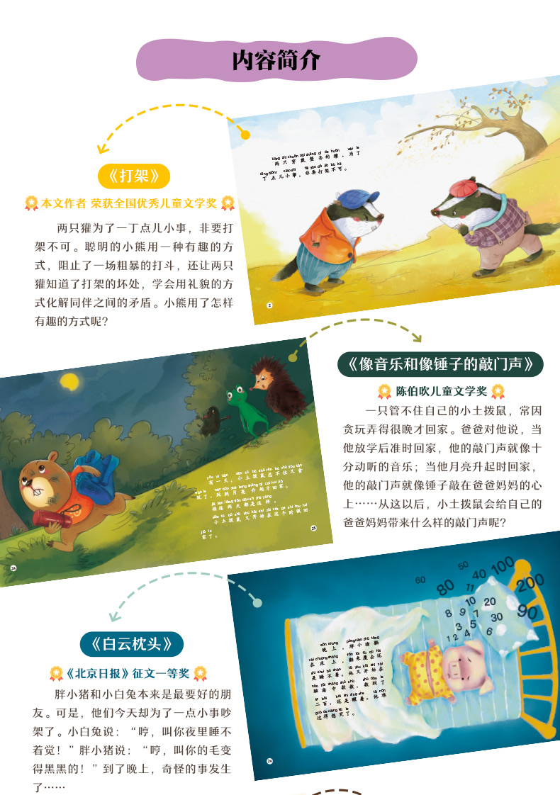 ●白云枕头 “不够好”的爸爸 打架 肚子里有只小兔兔 红薯秧下的信 偷走妈妈 小邋遢鬼 小乌龟去姑姑家 熊上床前要做的十二件事 像音乐和像锤子的敲门声