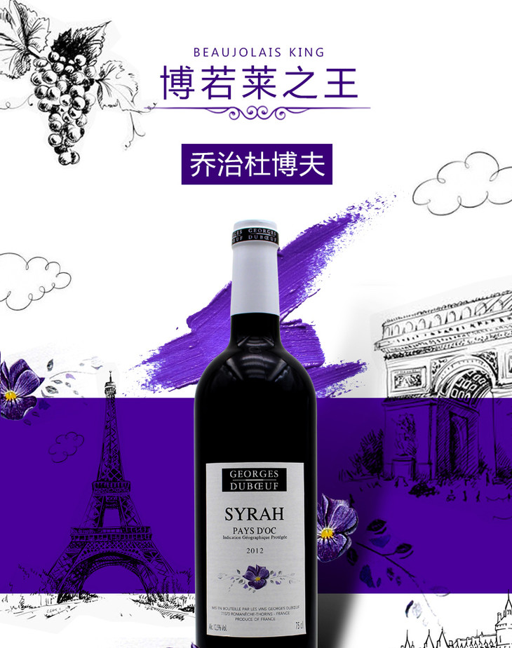 法国原瓶进口红酒 乔治杜博夫西拉红葡萄酒 Georges DuboeufNext code Syrah 单支装750ml【2013】