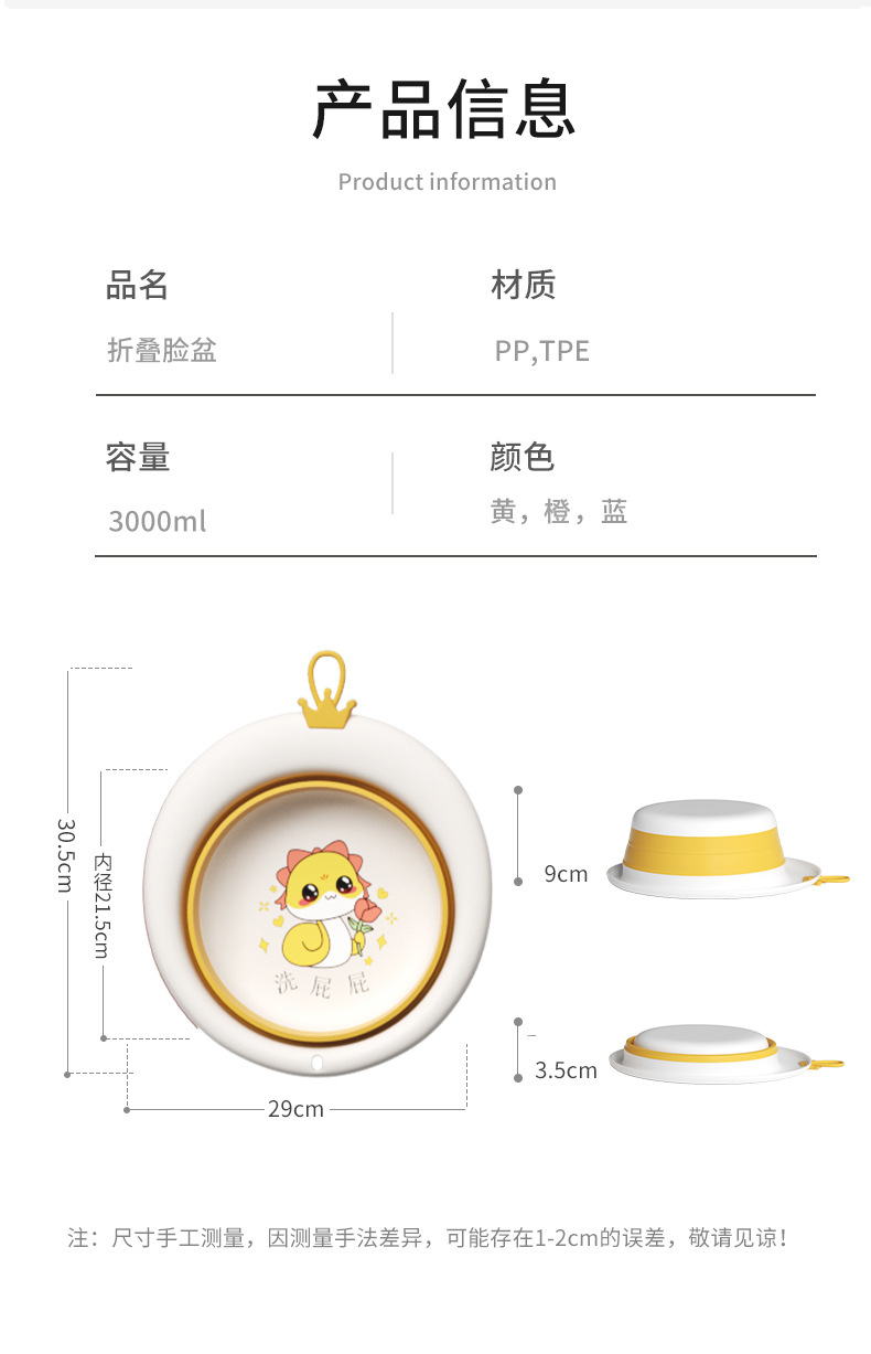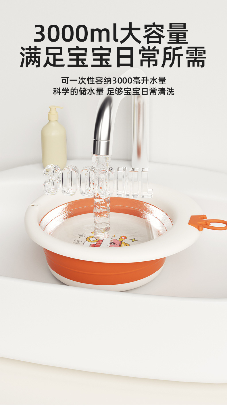 【3000ml大容量、加厚耐摔盆体】可折叠脸盆儿童便携式折叠盆家用卡通婴儿宝宝塑料盆子母婴用品.TA