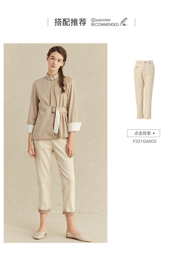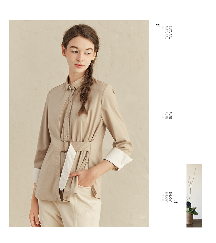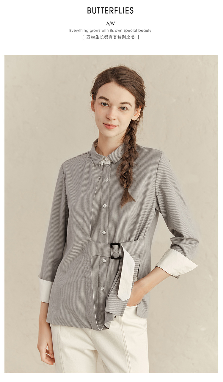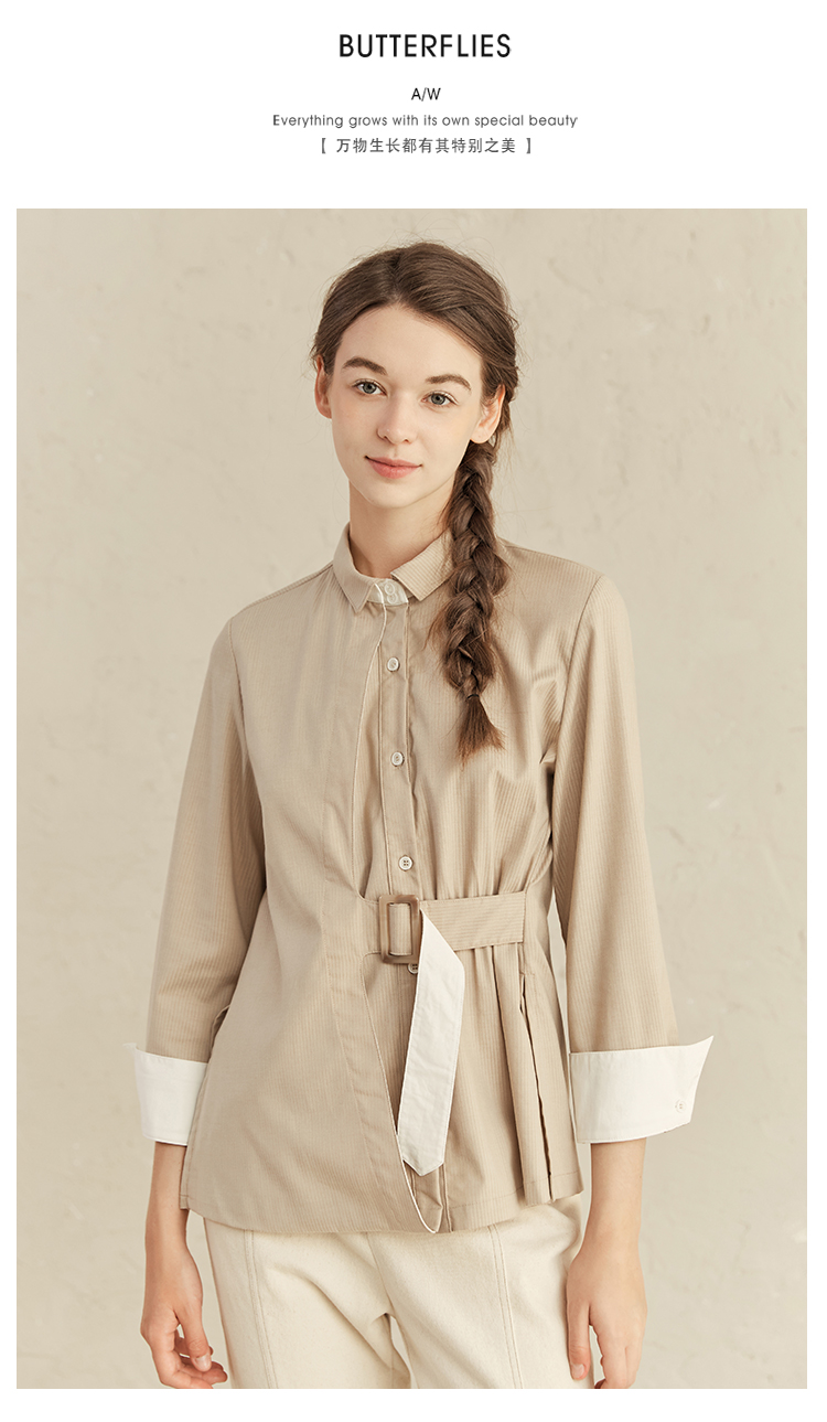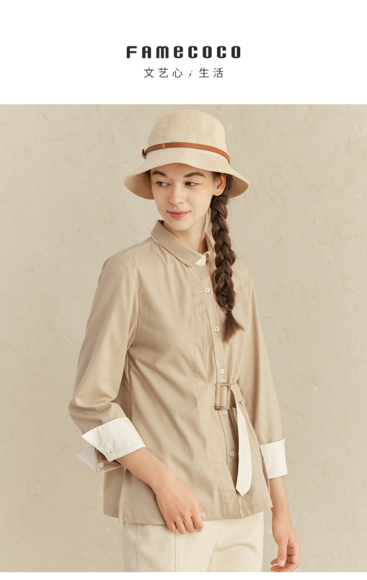 Famecoco范可儿别致收腰衬衫女式早春拼接衬衣F221BH006