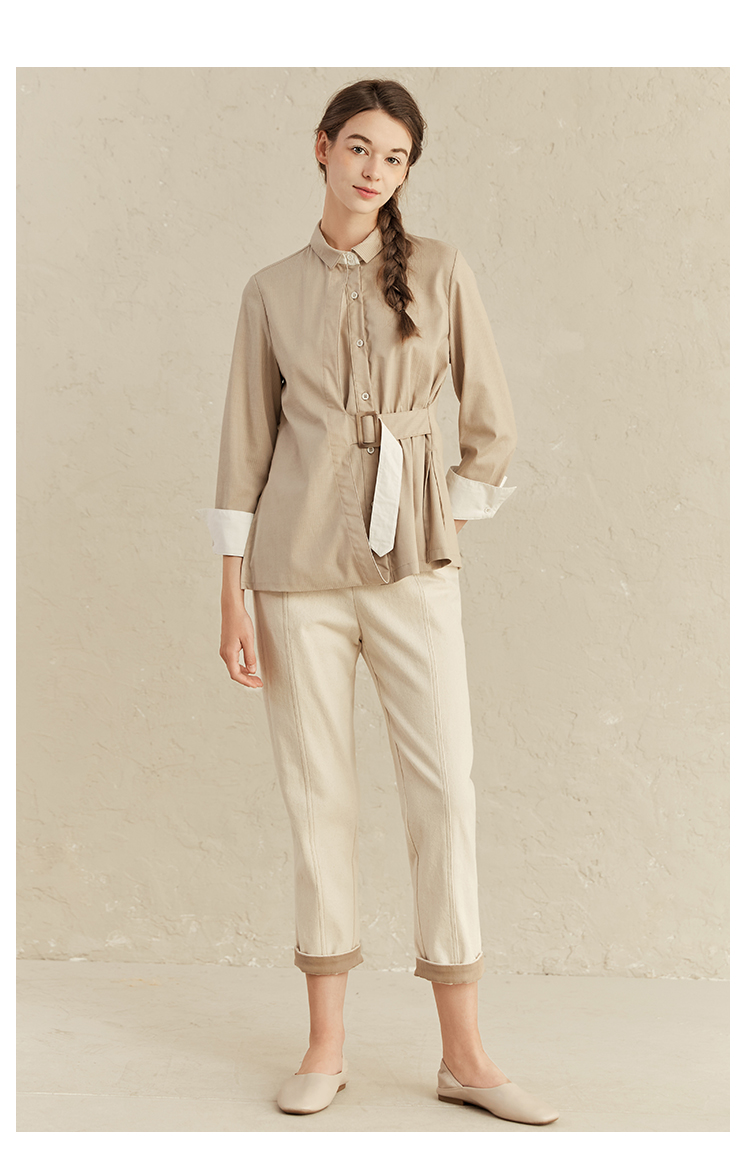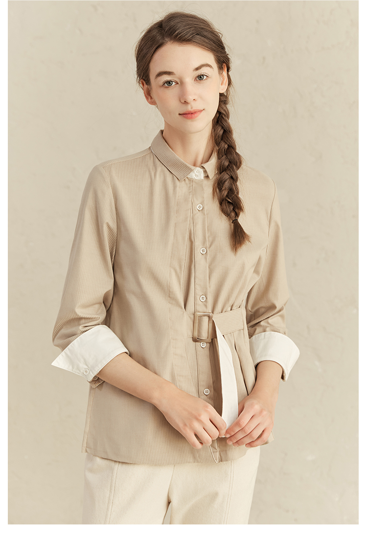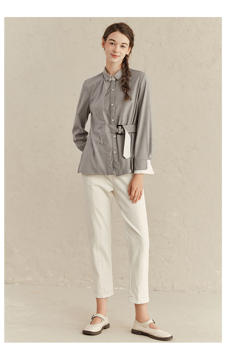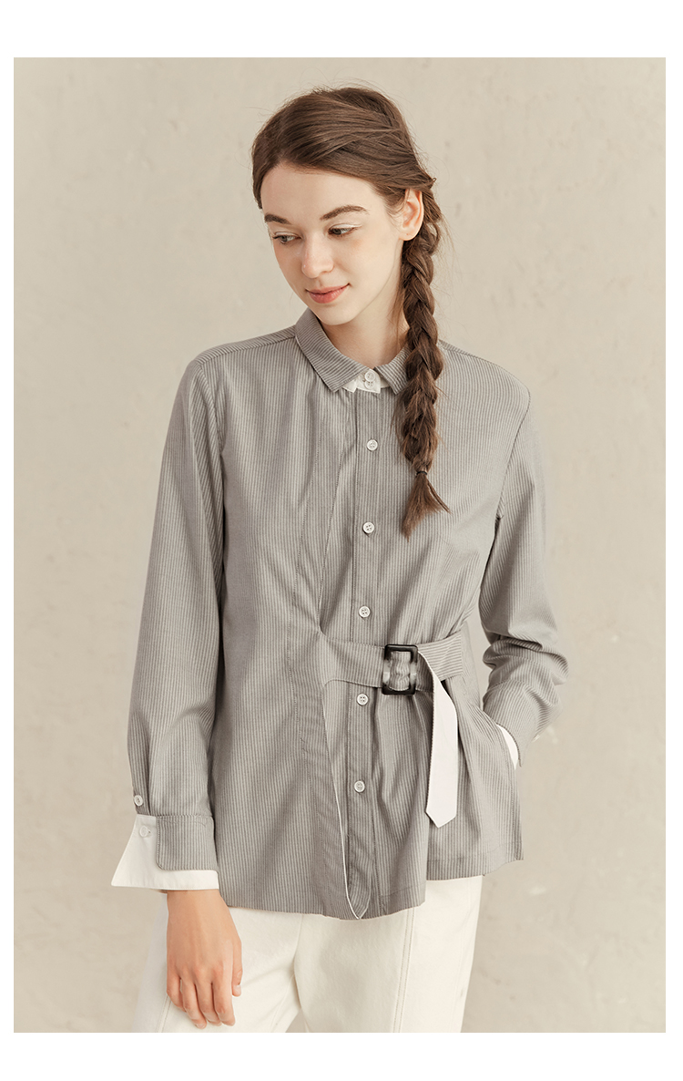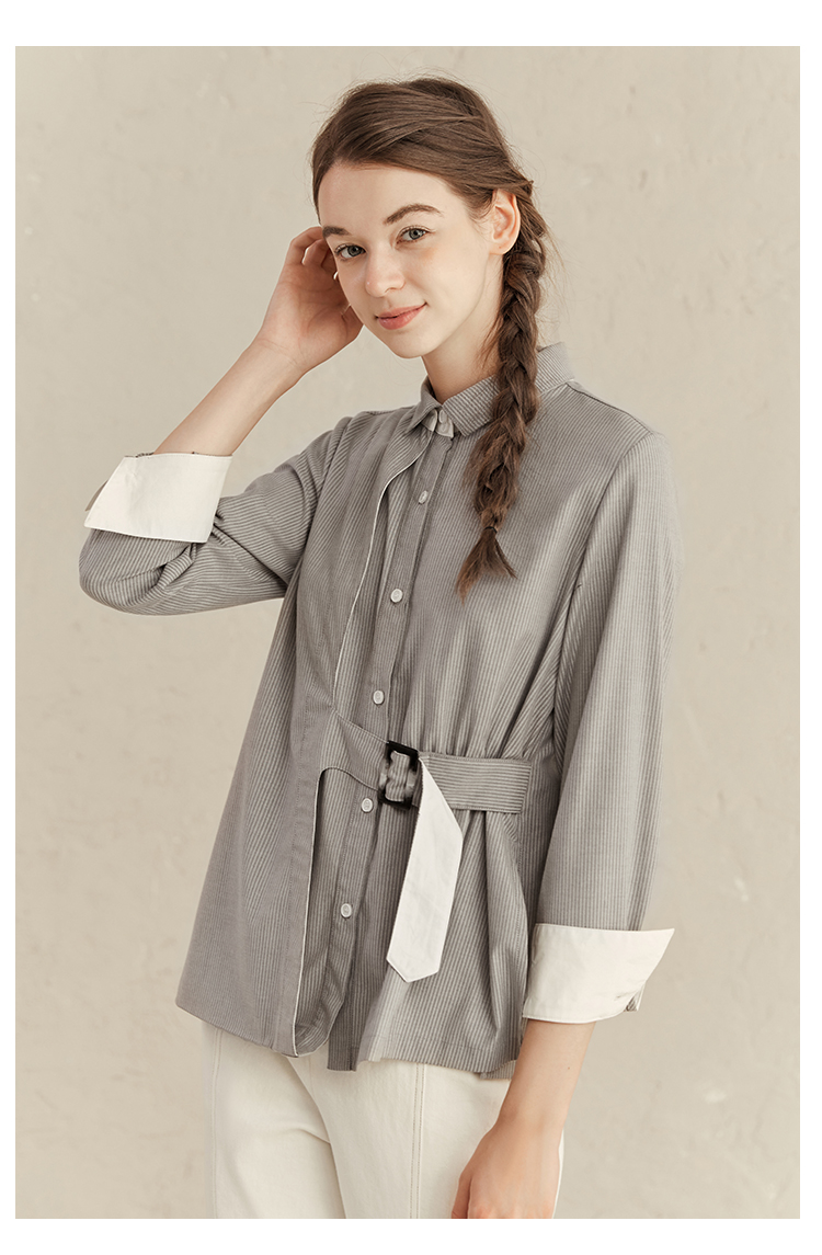 Famecoco范可儿别致收腰衬衫女式早春拼接衬衣F221BH006