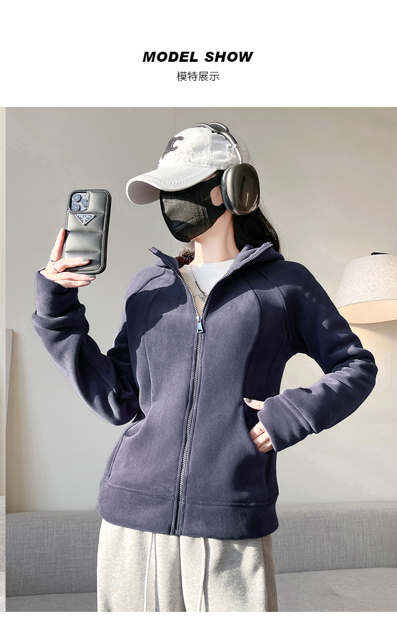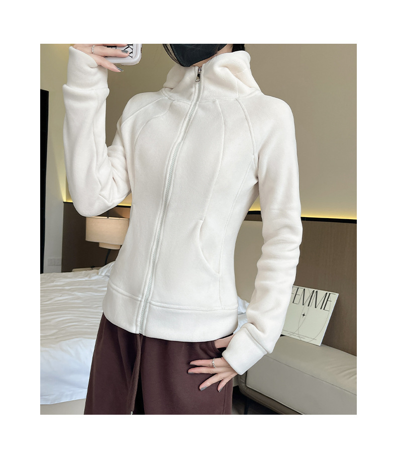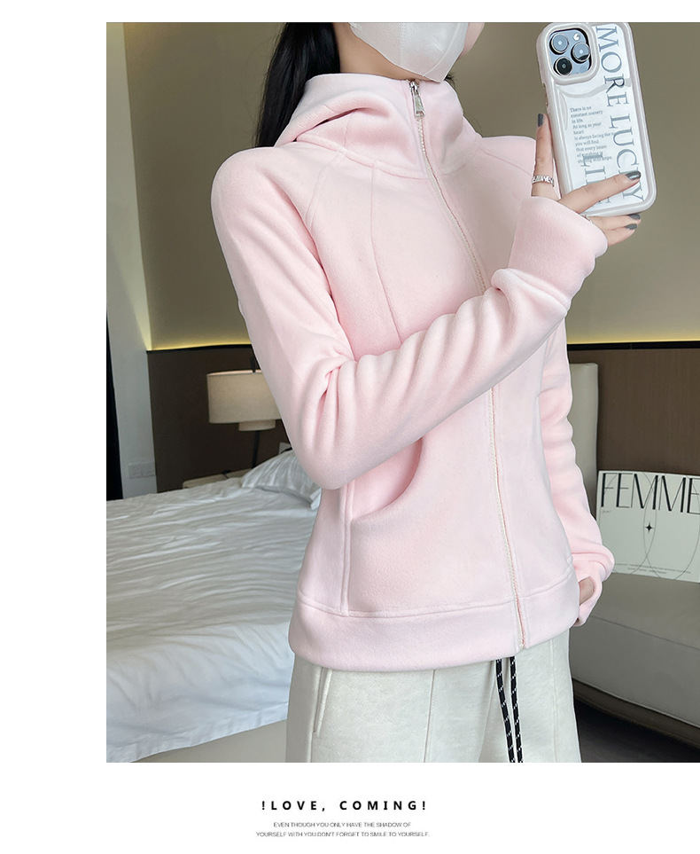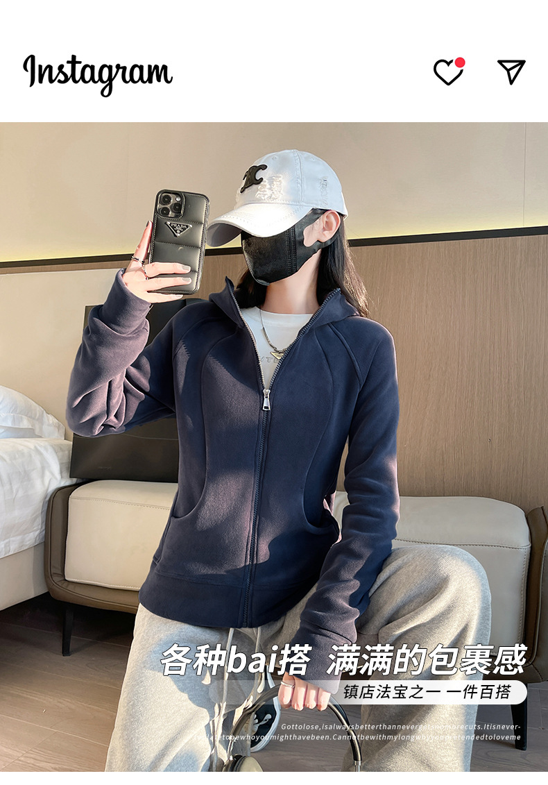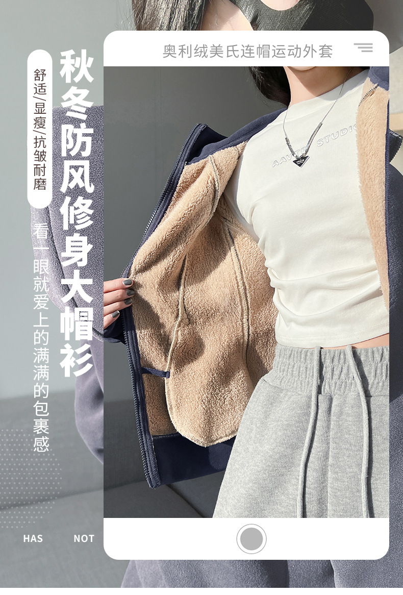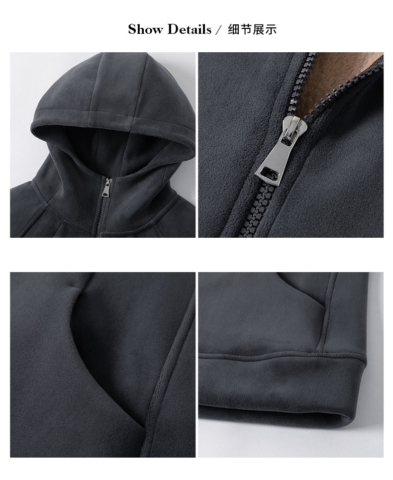 秋冬抓绒修身大帽衫 加绒加厚拉链高领立体百搭棒球服卫衣外套