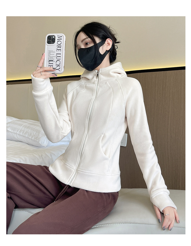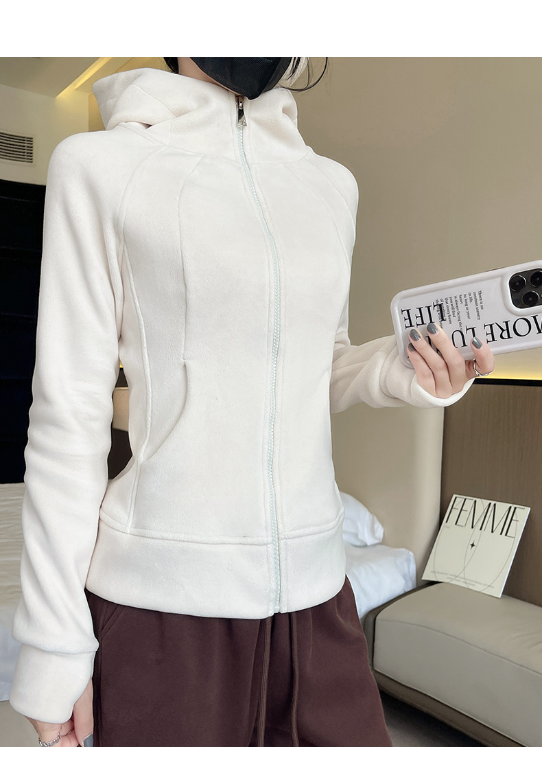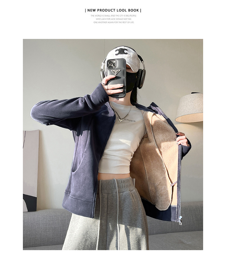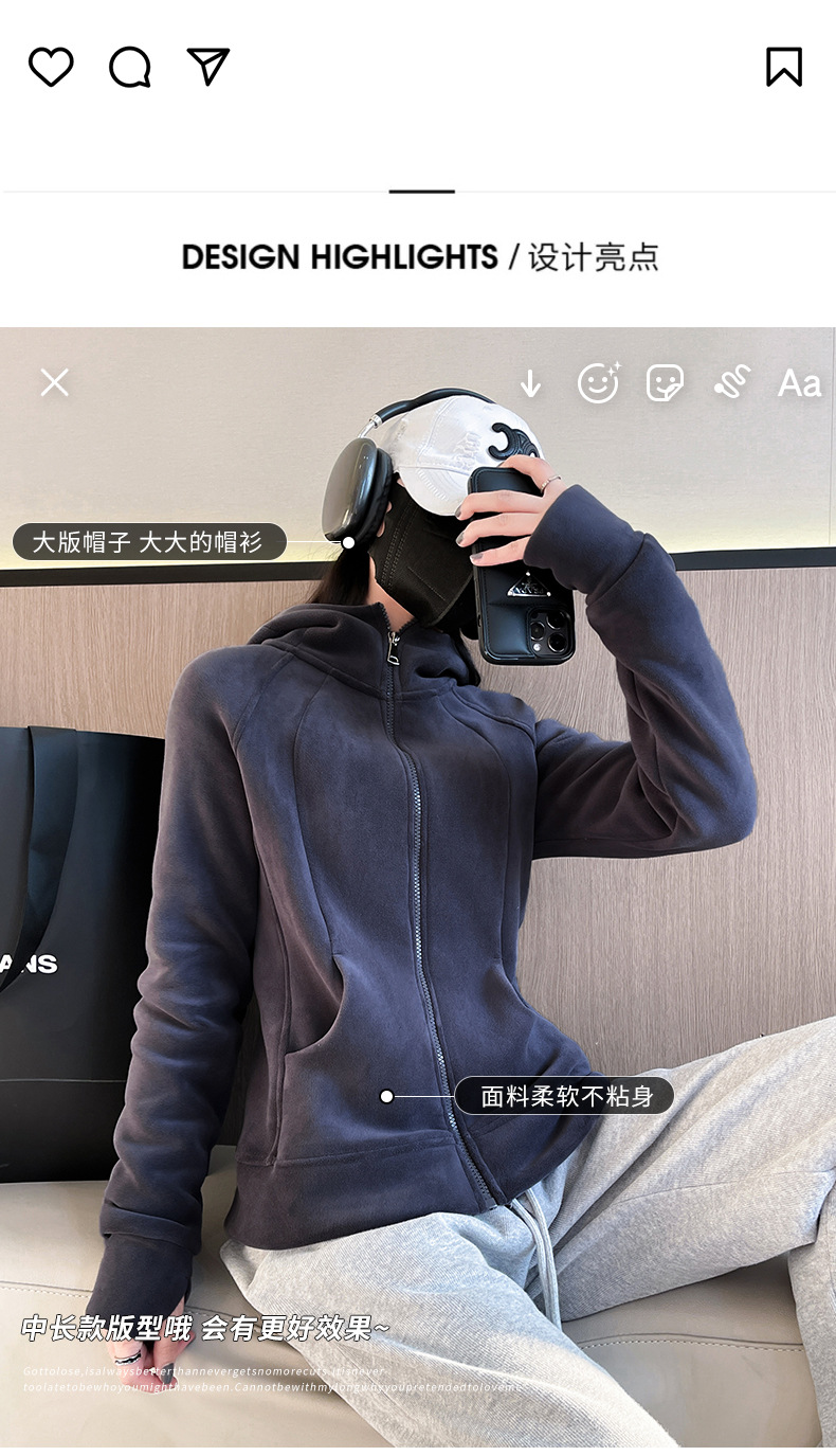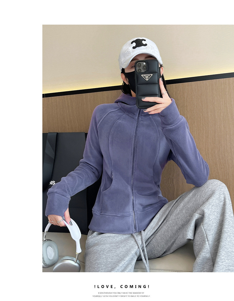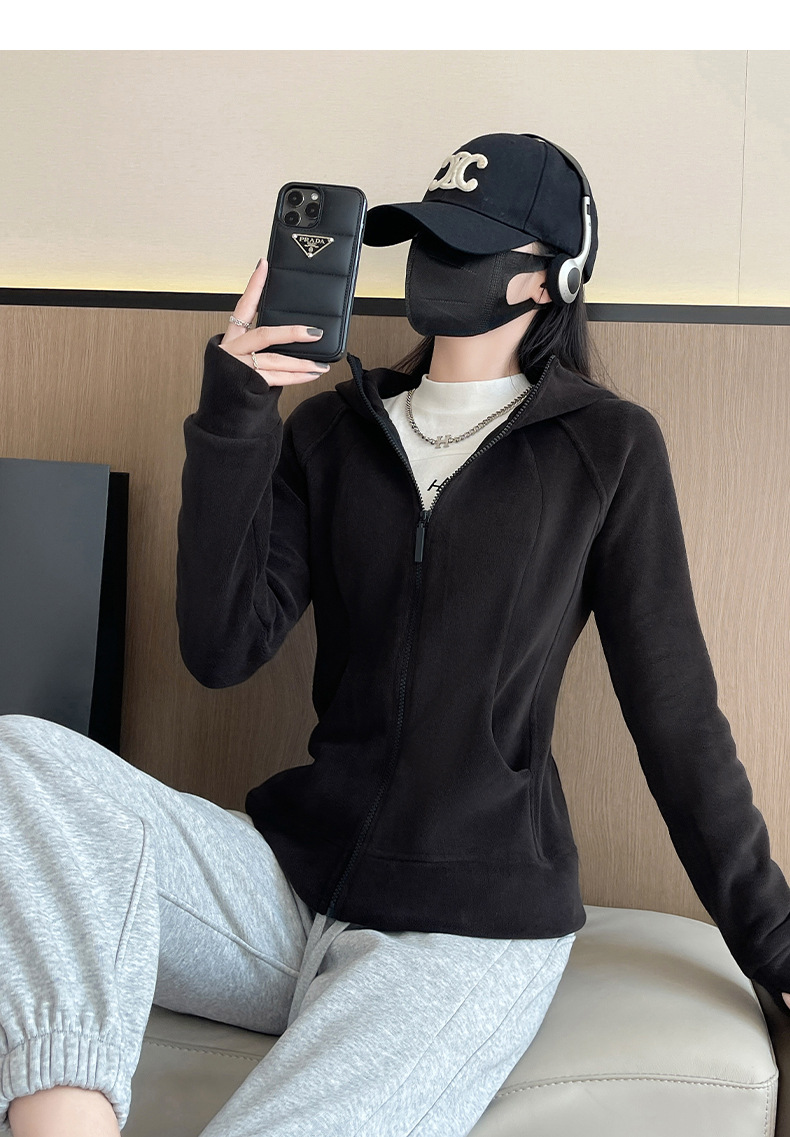 秋冬抓绒修身大帽衫 加绒加厚拉链高领立体百搭棒球服卫衣外套