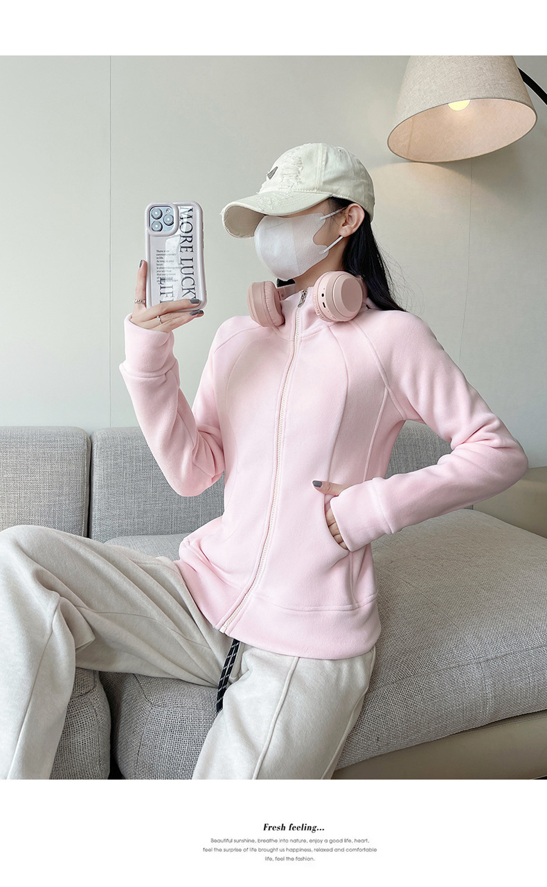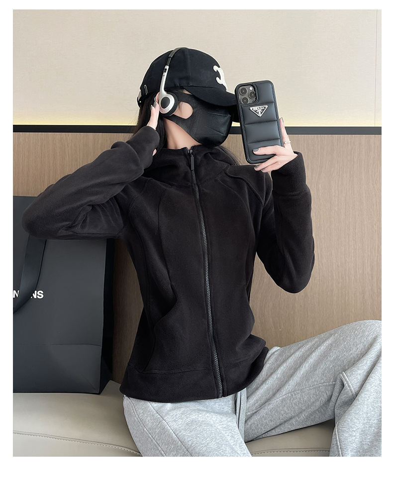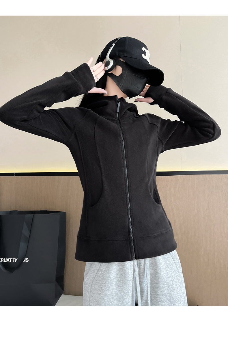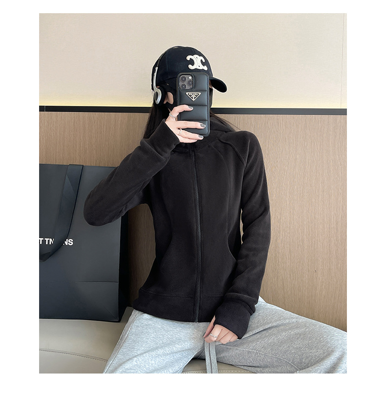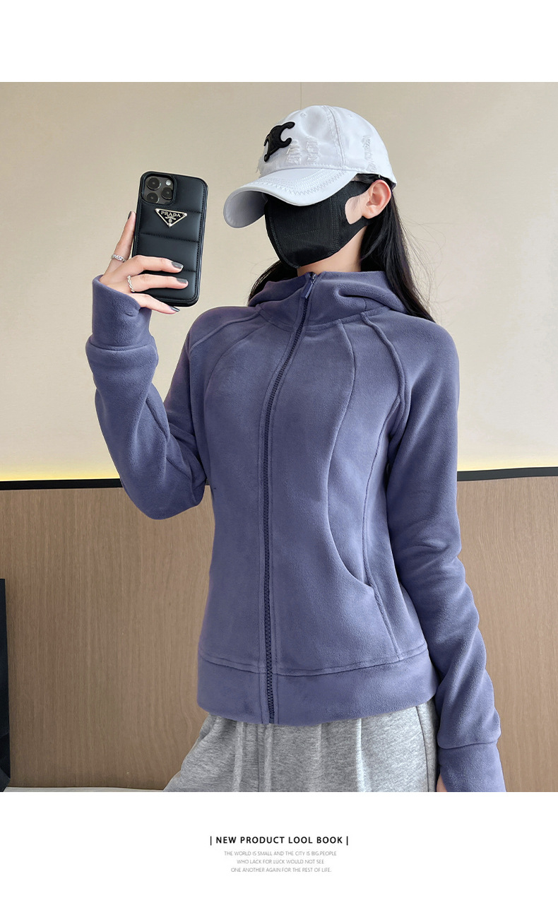 秋冬抓绒修身大帽衫 加绒加厚拉链高领立体百搭棒球服卫衣外套