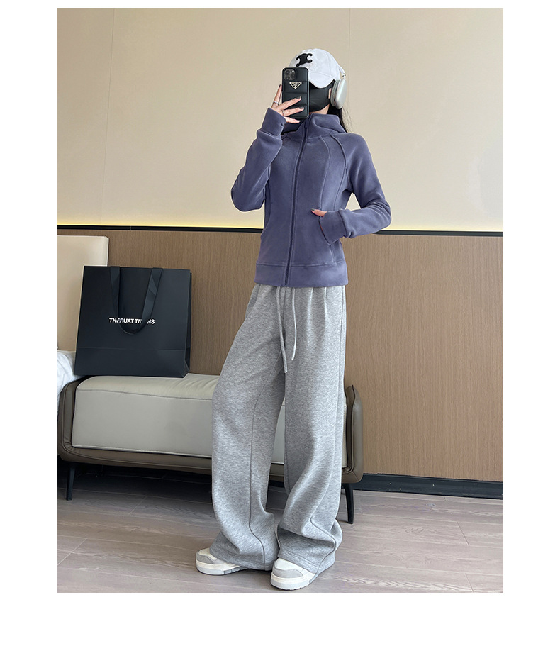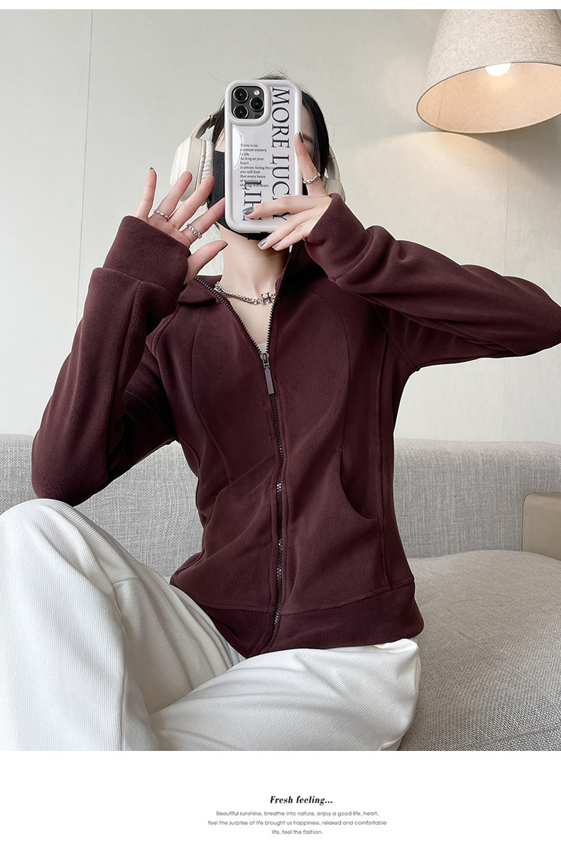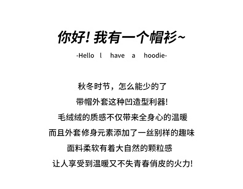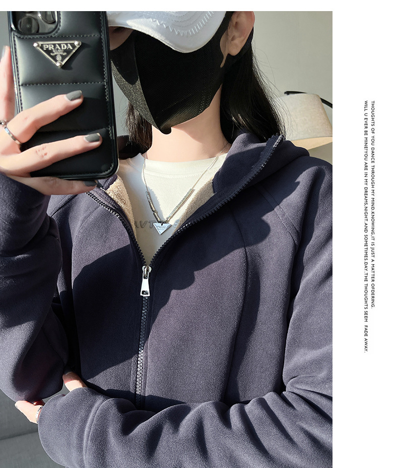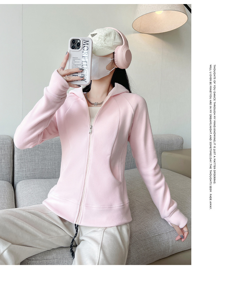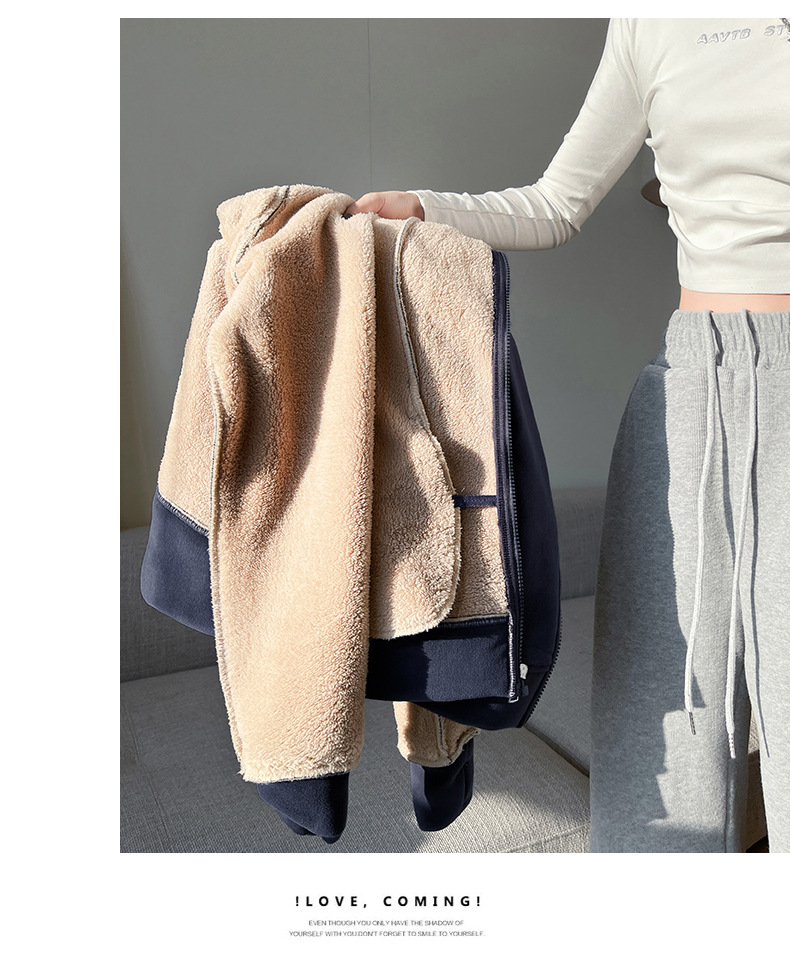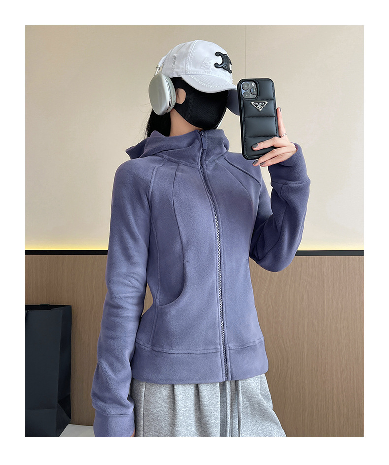 秋冬抓绒修身大帽衫 加绒加厚拉链高领立体百搭棒球服卫衣外套
