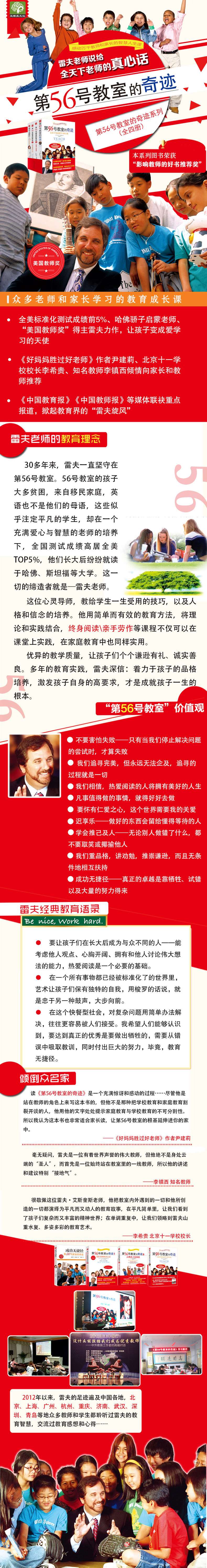 雷夫艾斯奎斯和他的第56号教室,确实是无数父母向往的教师和教育圣地。这位令人敬佩的美国教师,用超凡的勤奋和卓越的教育才能,解答了他在教师职业发展过程中的探索与思考。虽然国情不同,文化背景各异,但我们仍能从书中发现中美教育面临的许多相似之处。了解这些相似之处,或许有助于我们更清醒地认识到,教师职业的确是一项非常特殊的职业,选择这项职业,意味着教师的众多放弃和倾其精力的奉献。当然,其所收获的成就感也是其他任何职业所无法达到的。