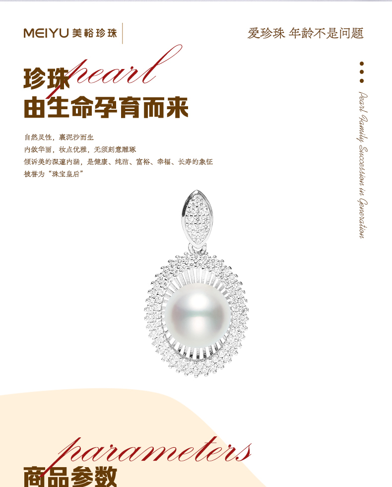 - 珍珠世家,代代相传。美裕珍珠,1933年起源于印尼,成长于海南岛。依托海南资源优势和自身专业优势,以经营南珠、南洋珠为主,专注于珍珠文化的挖掘和传播,把珍珠代表的爱意,永不间断地传承下去。