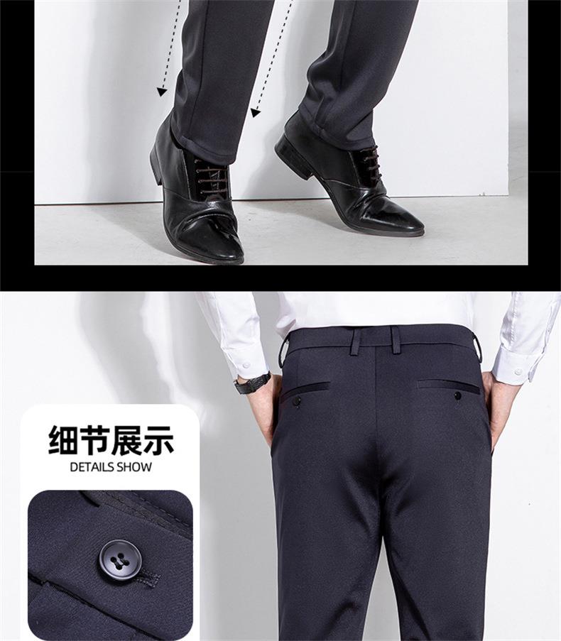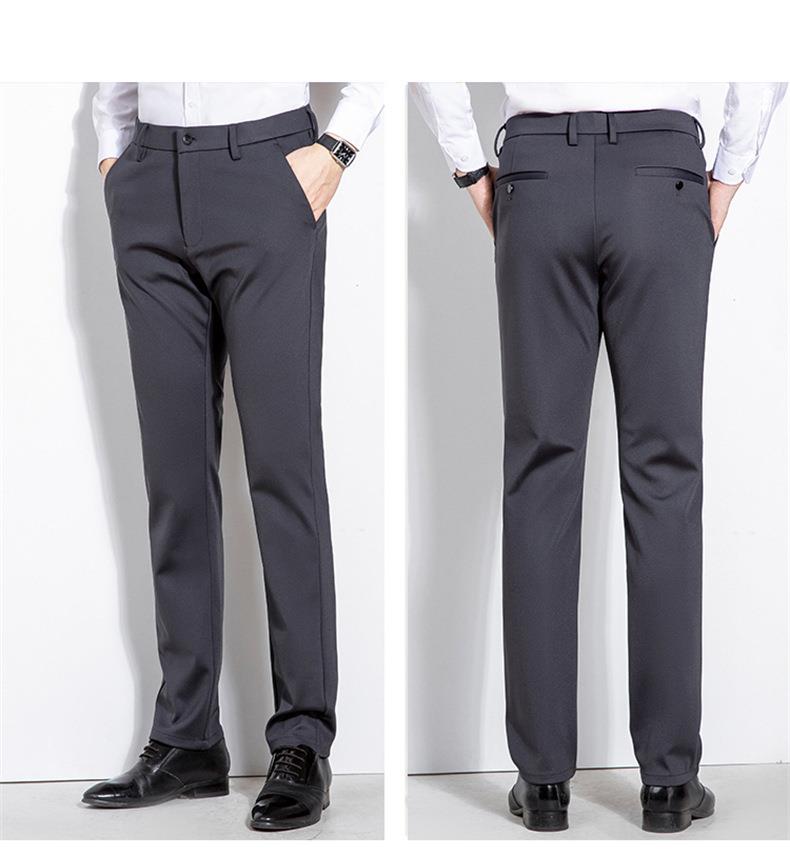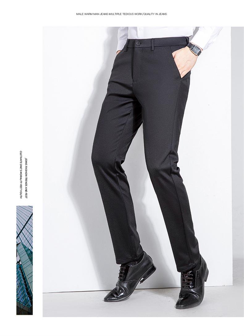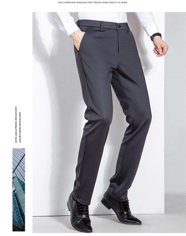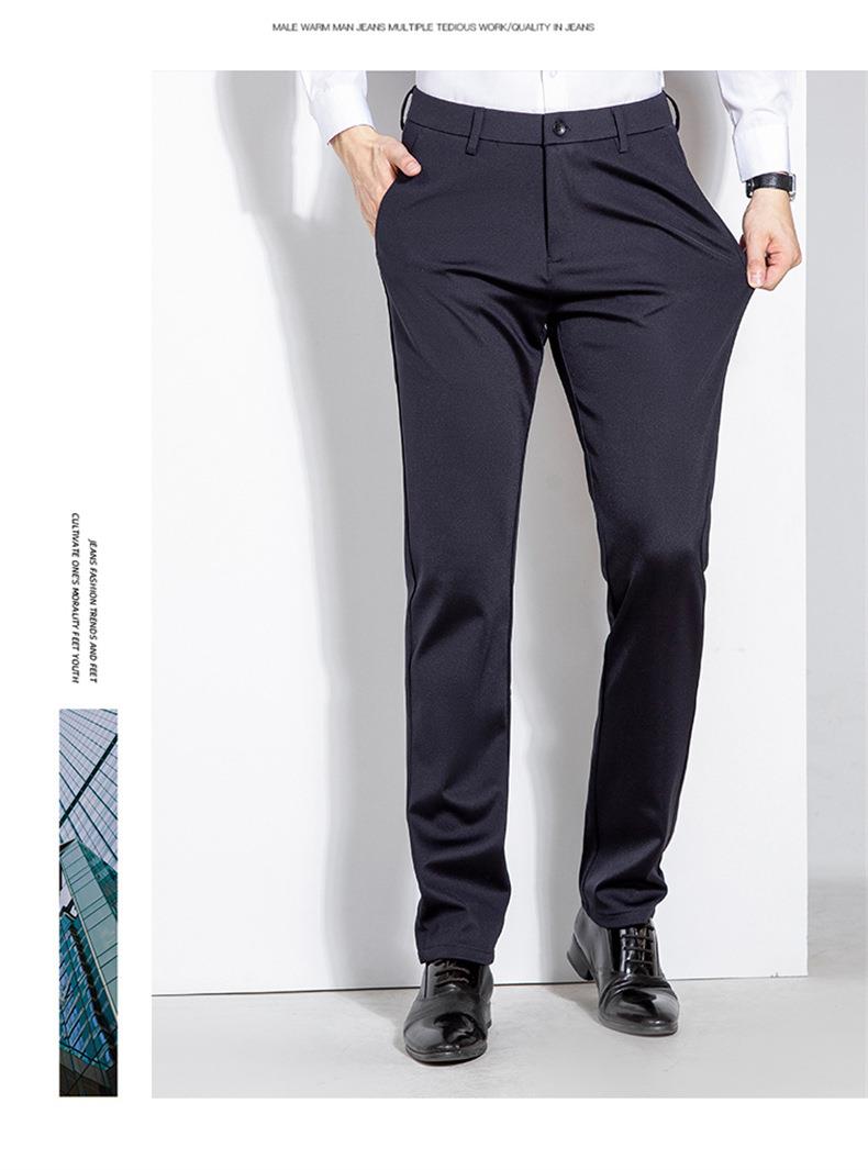 秋冬季男士加绒加厚休闲西裤中年商务休闲高弹简约长裤