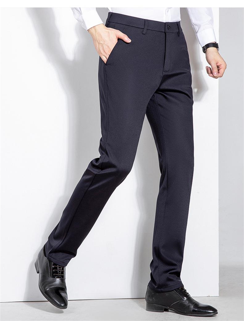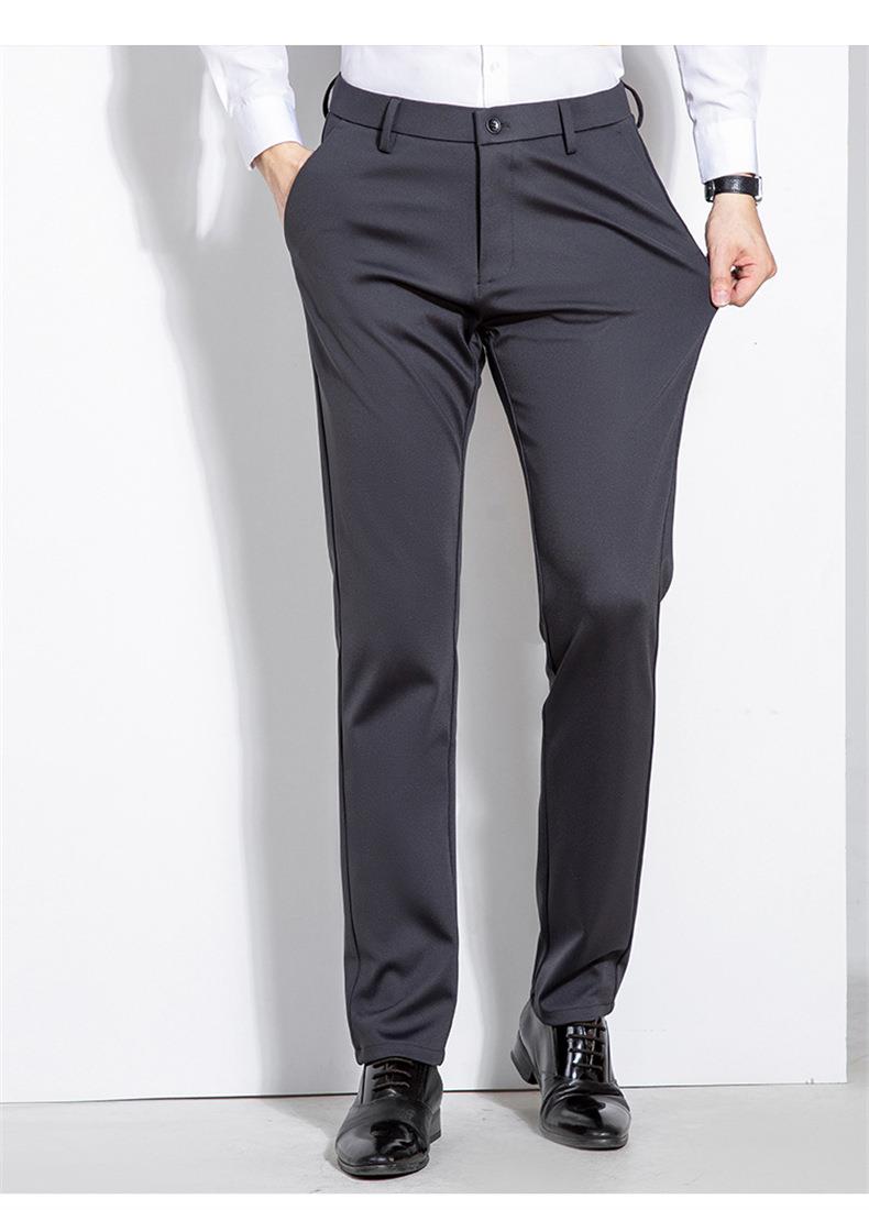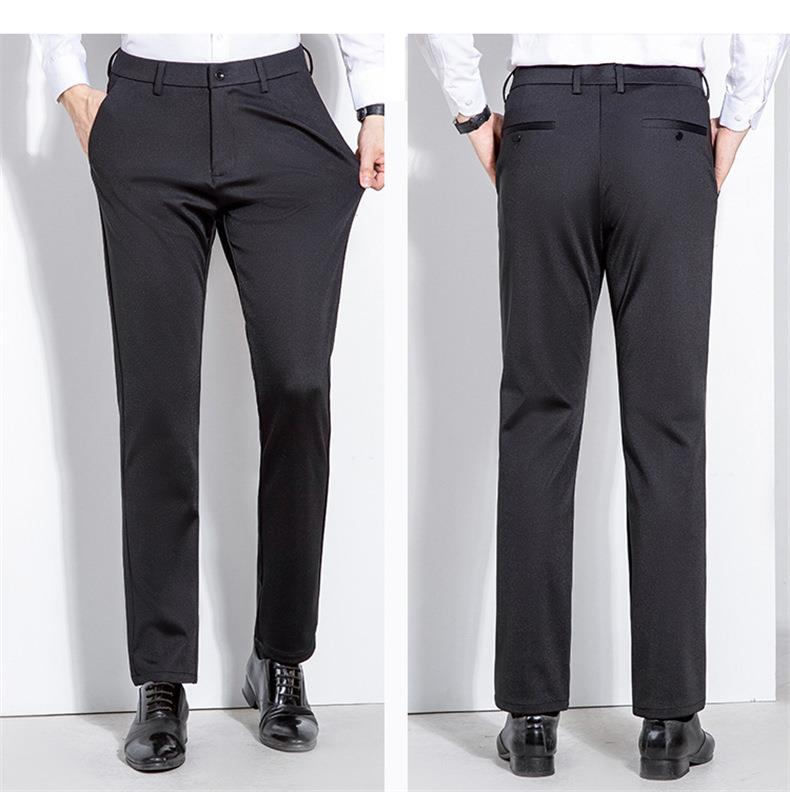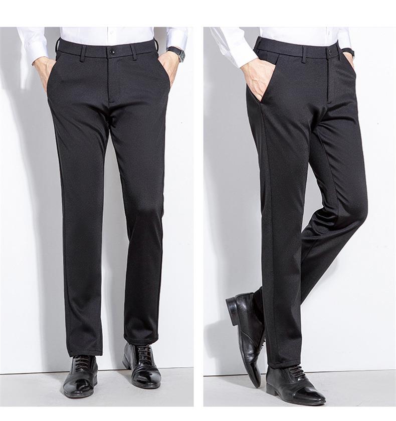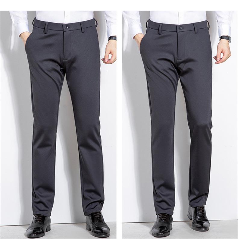 秋冬季男士加绒加厚休闲西裤中年商务休闲高弹简约长裤