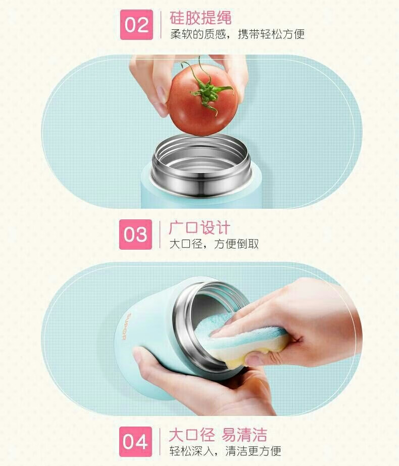苏泊尔(SUPOR)苏泊尔焖烧杯316L不锈钢1人小巧便携500ml粥罐KC50CT70保温杯饭盒 KC50CT70海盐蓝