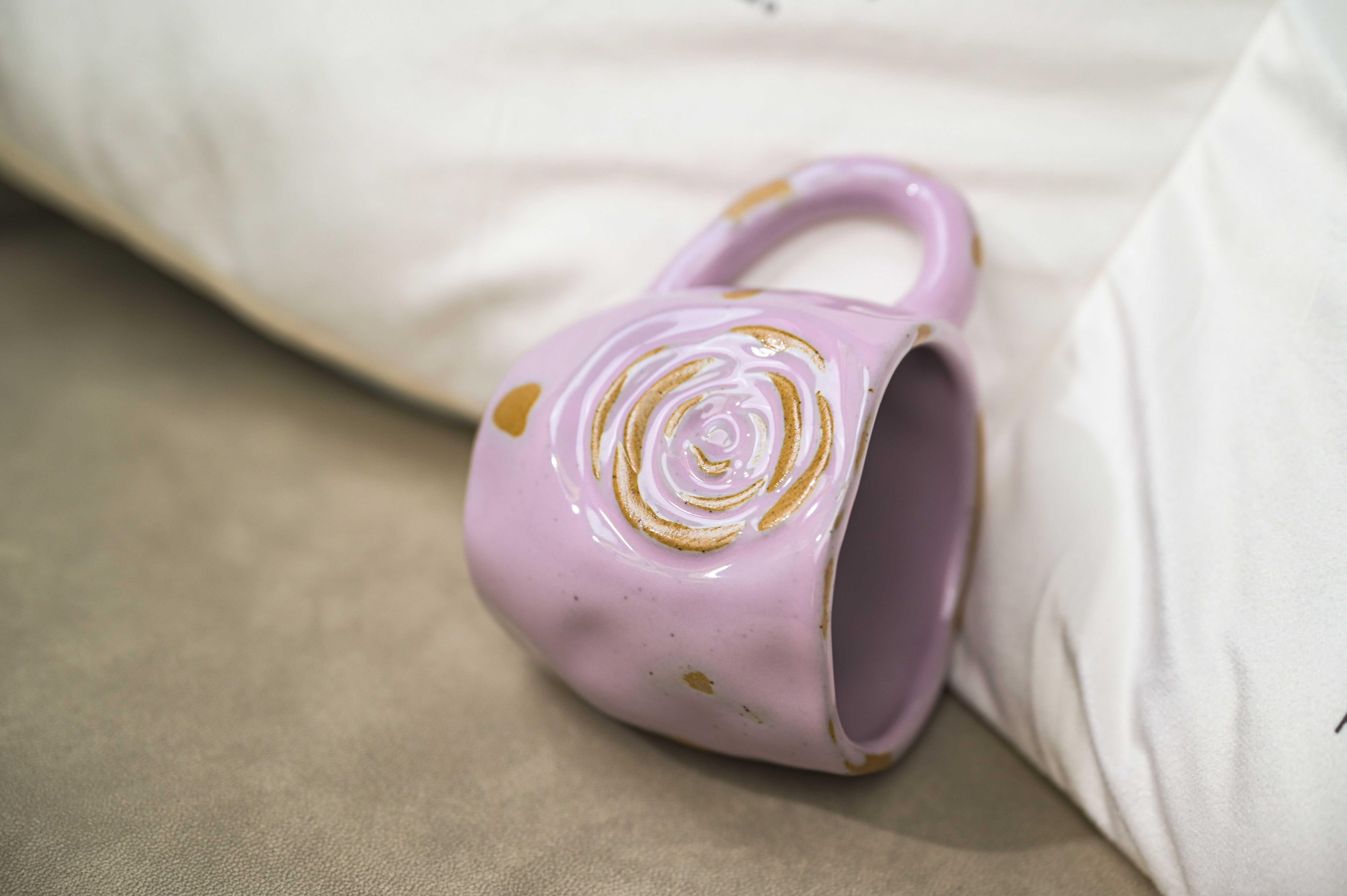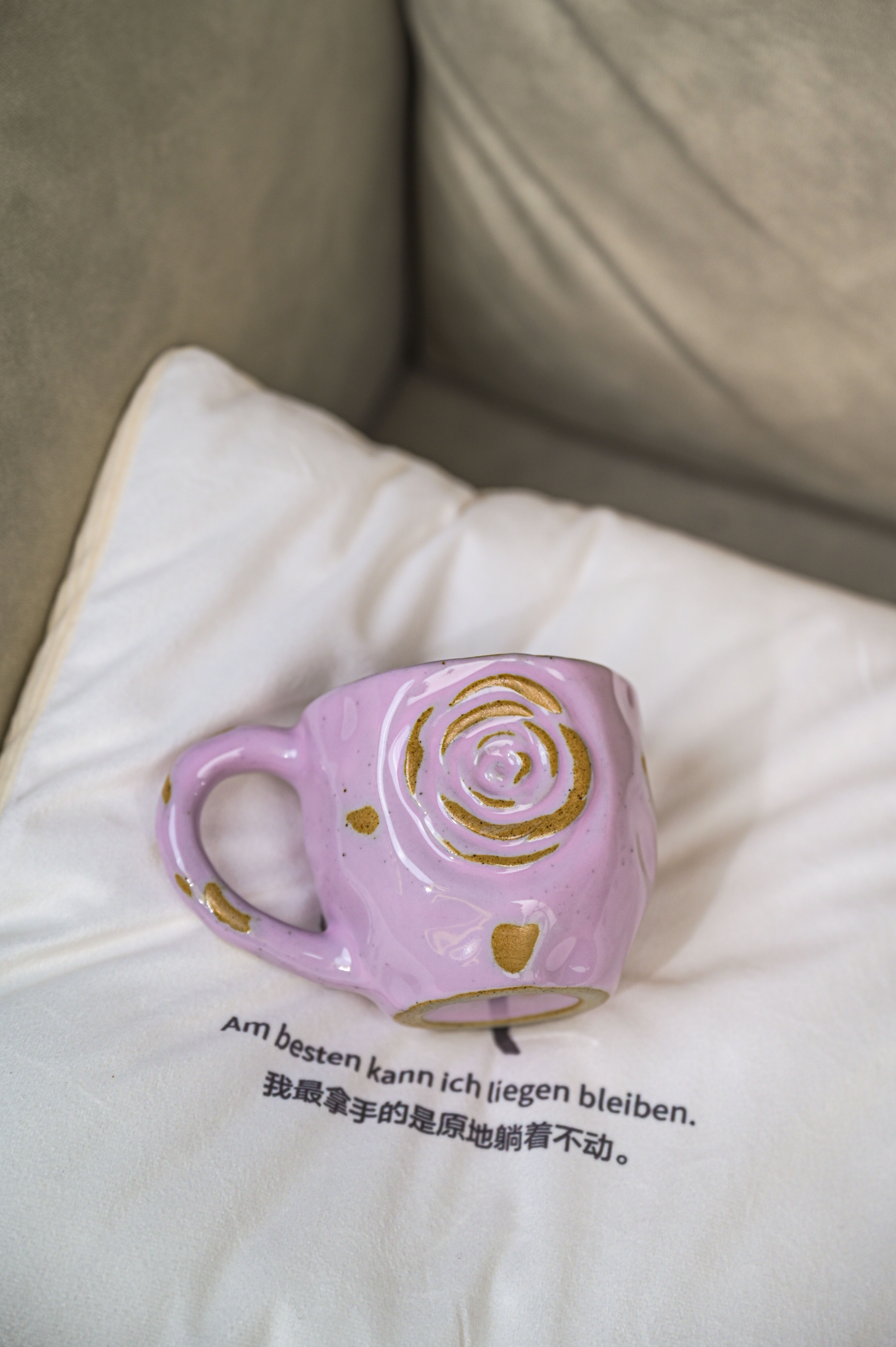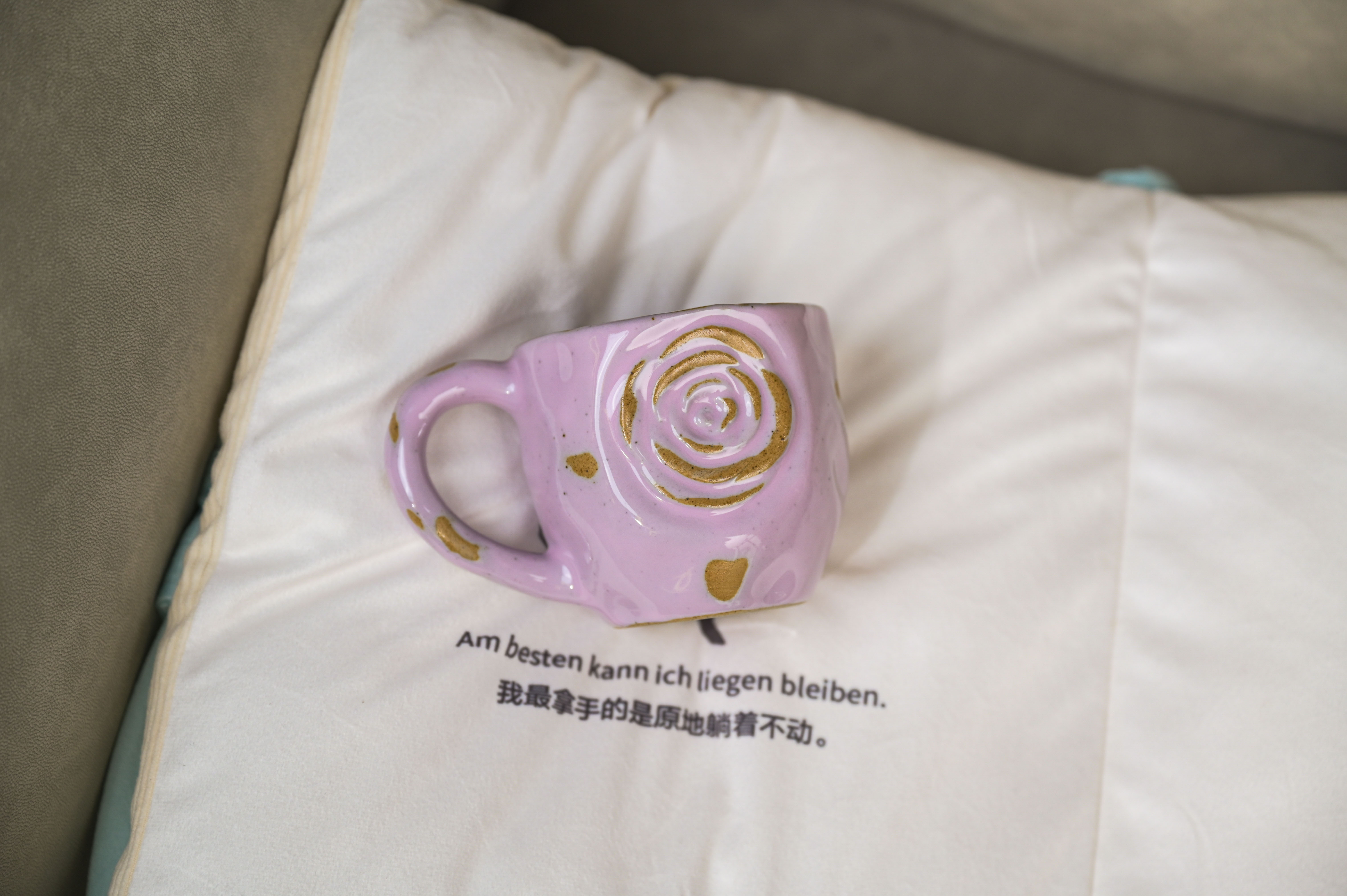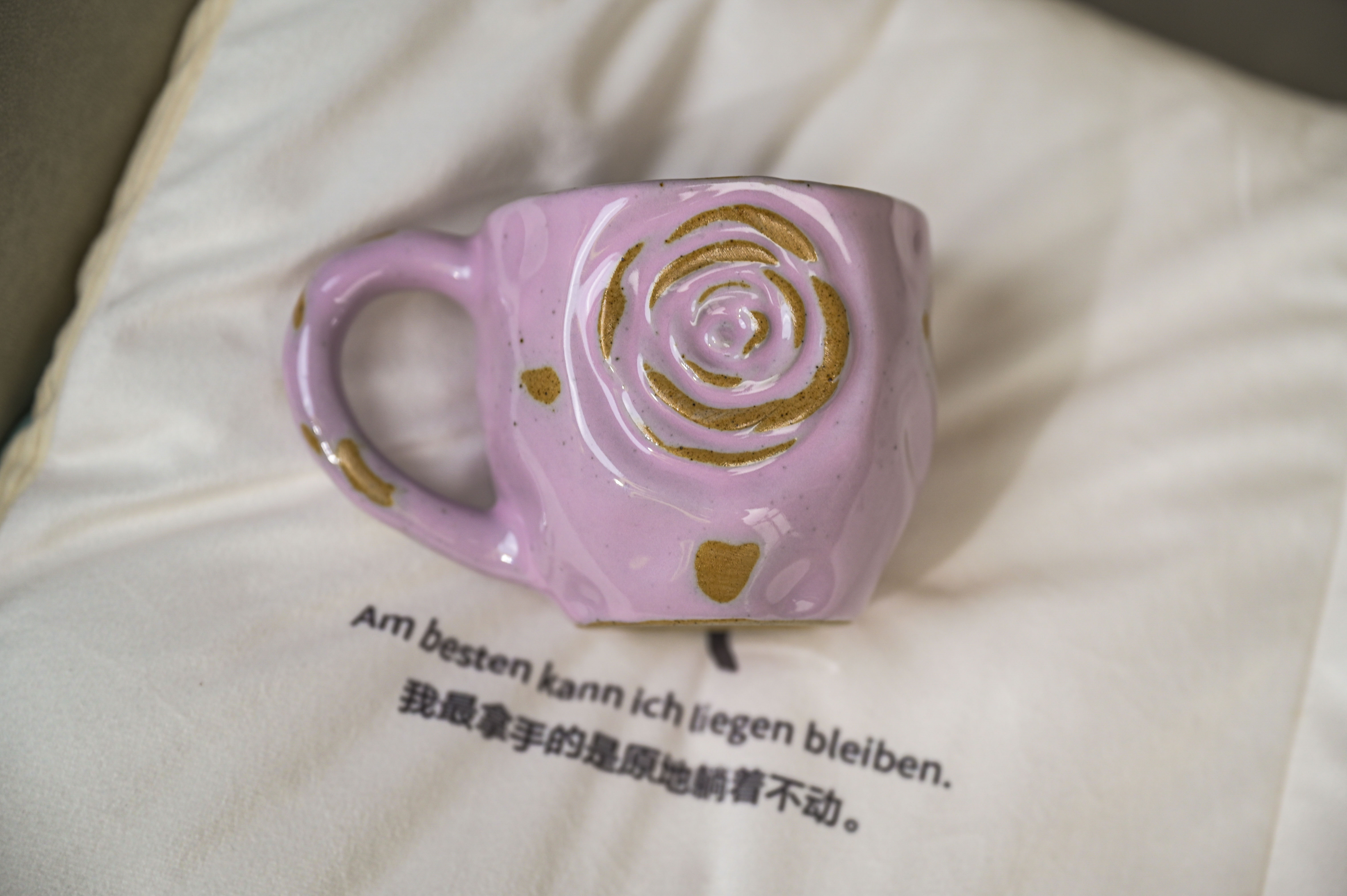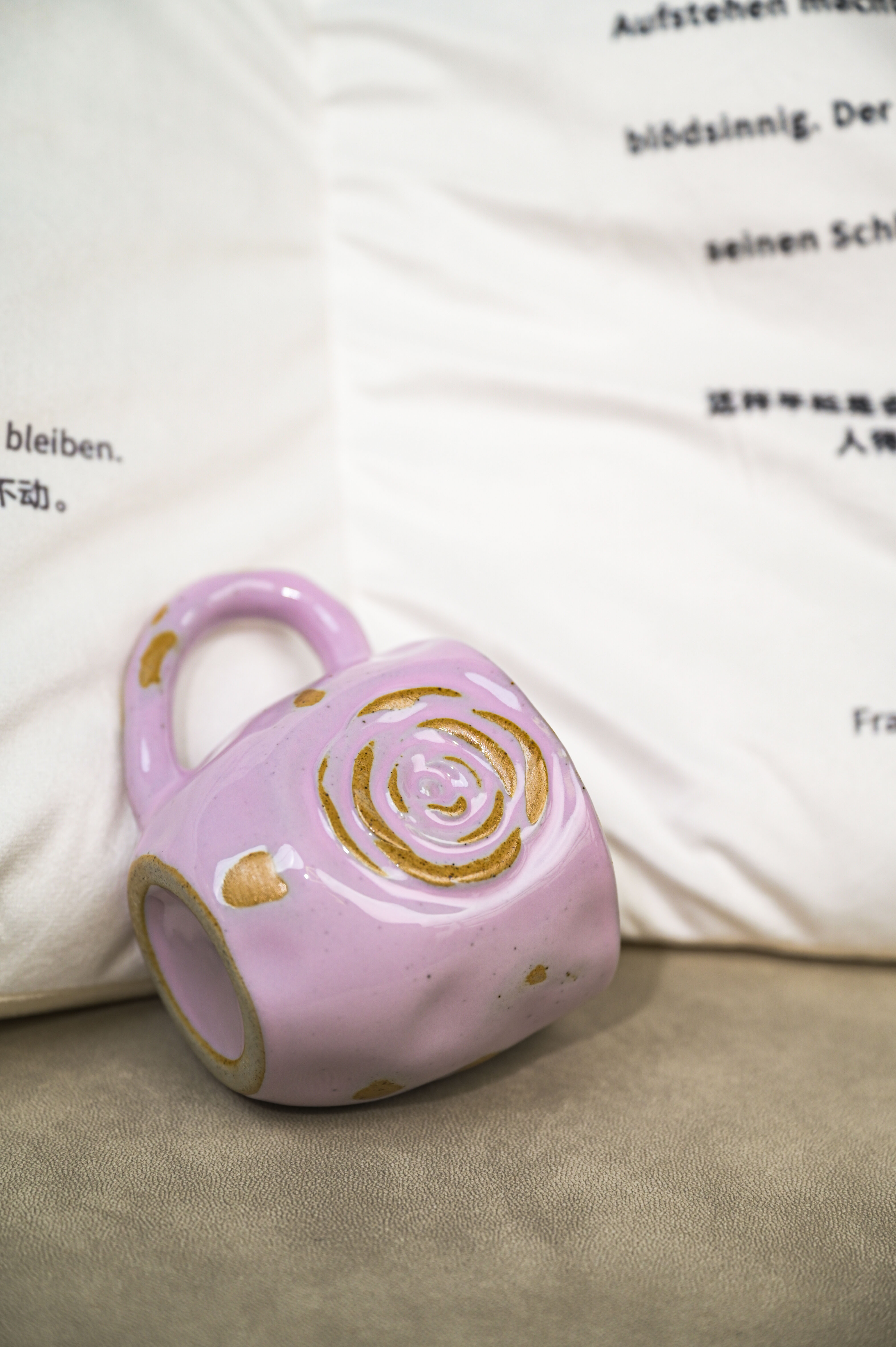 盛放的蔷薇,以浮雕的姿态从杯身蔓延。每一瓣都经过细致雕琢,在高温窑火中定格成永恒。釉色流转间,随机形成斑驳的磨砂质感,如同伦敦旧书店里,被岁月亲吻过的书封,泛着静谧的复古光泽。