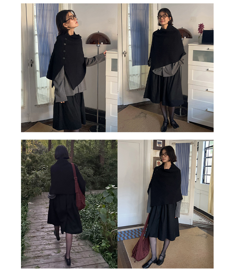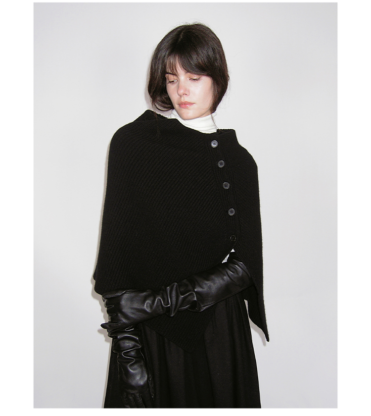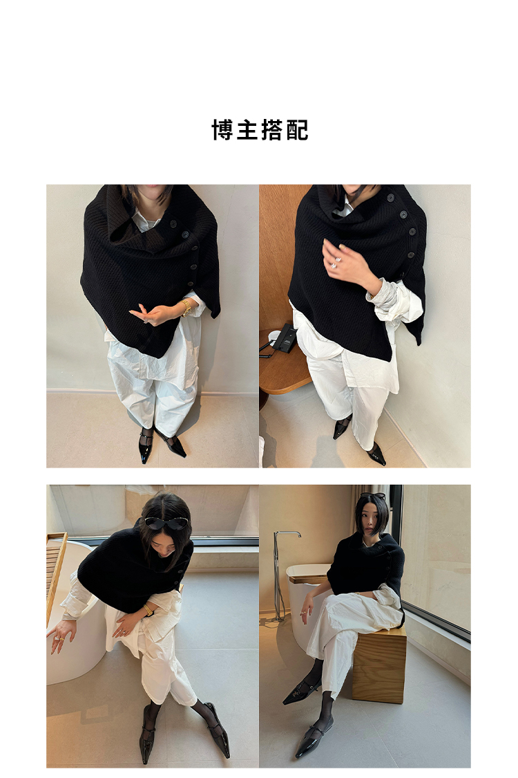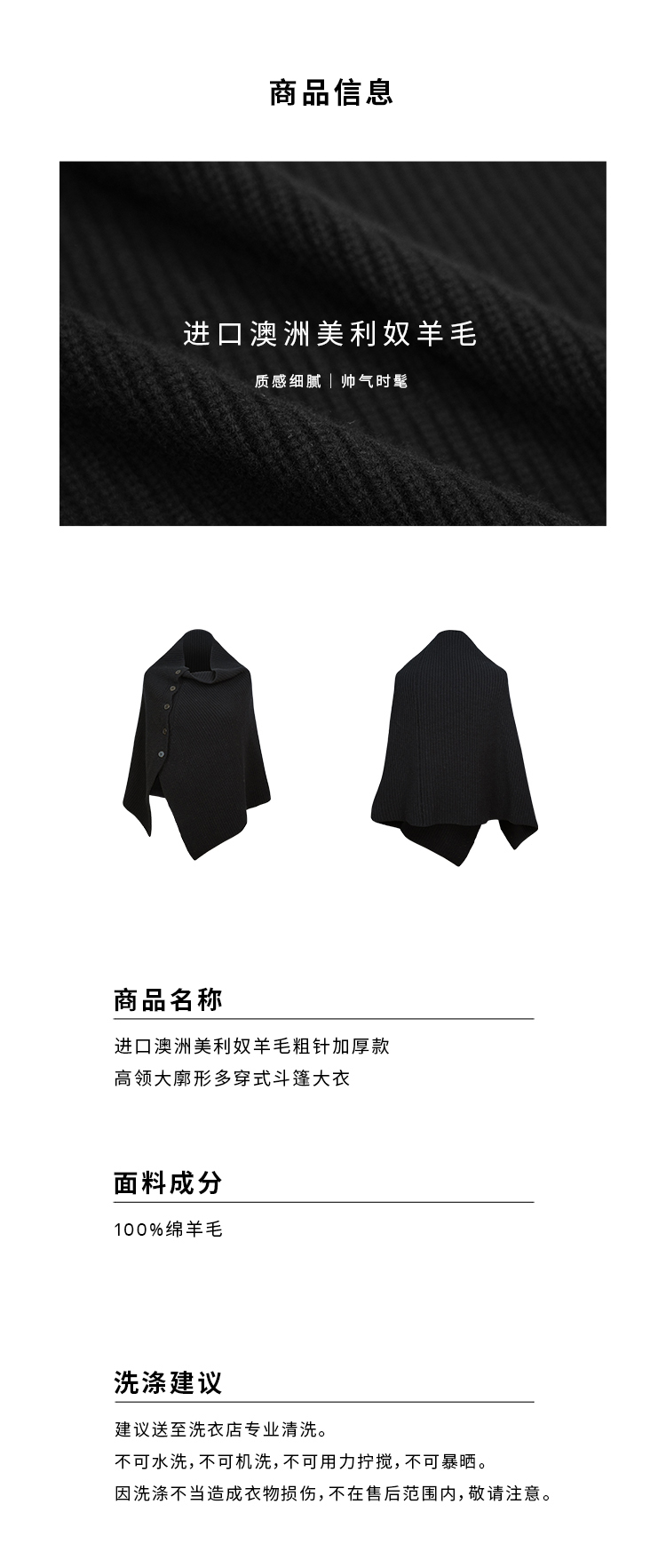 HIDEMI 进口澳洲美利奴羊毛纽扣设计感多穿式披肩斗篷