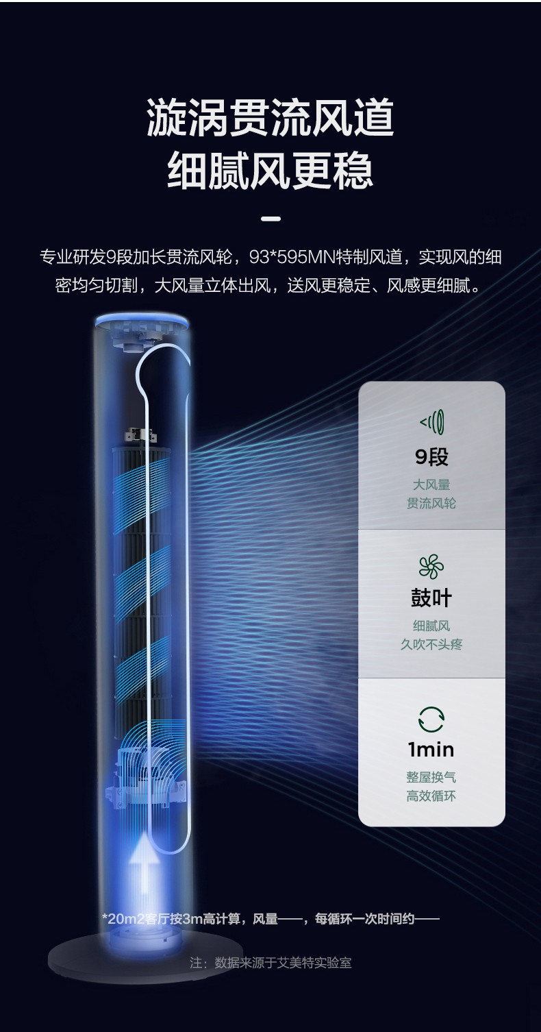 艾美特 无叶电风扇 塔扇 家用落地扇 CT-R9