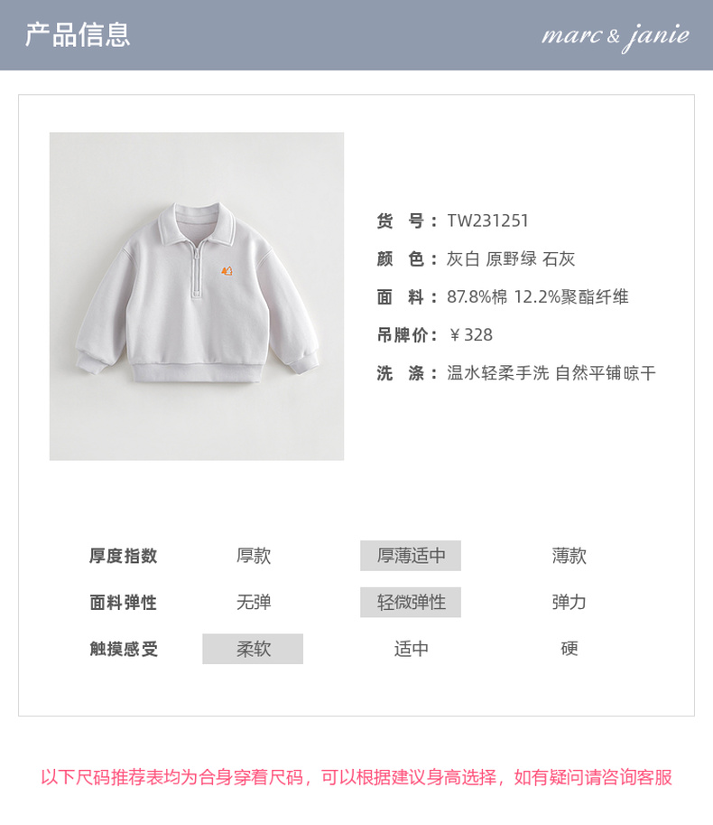 【户外风】马克珍妮秋装新款男童超舒棉翻领卫衣外套231251