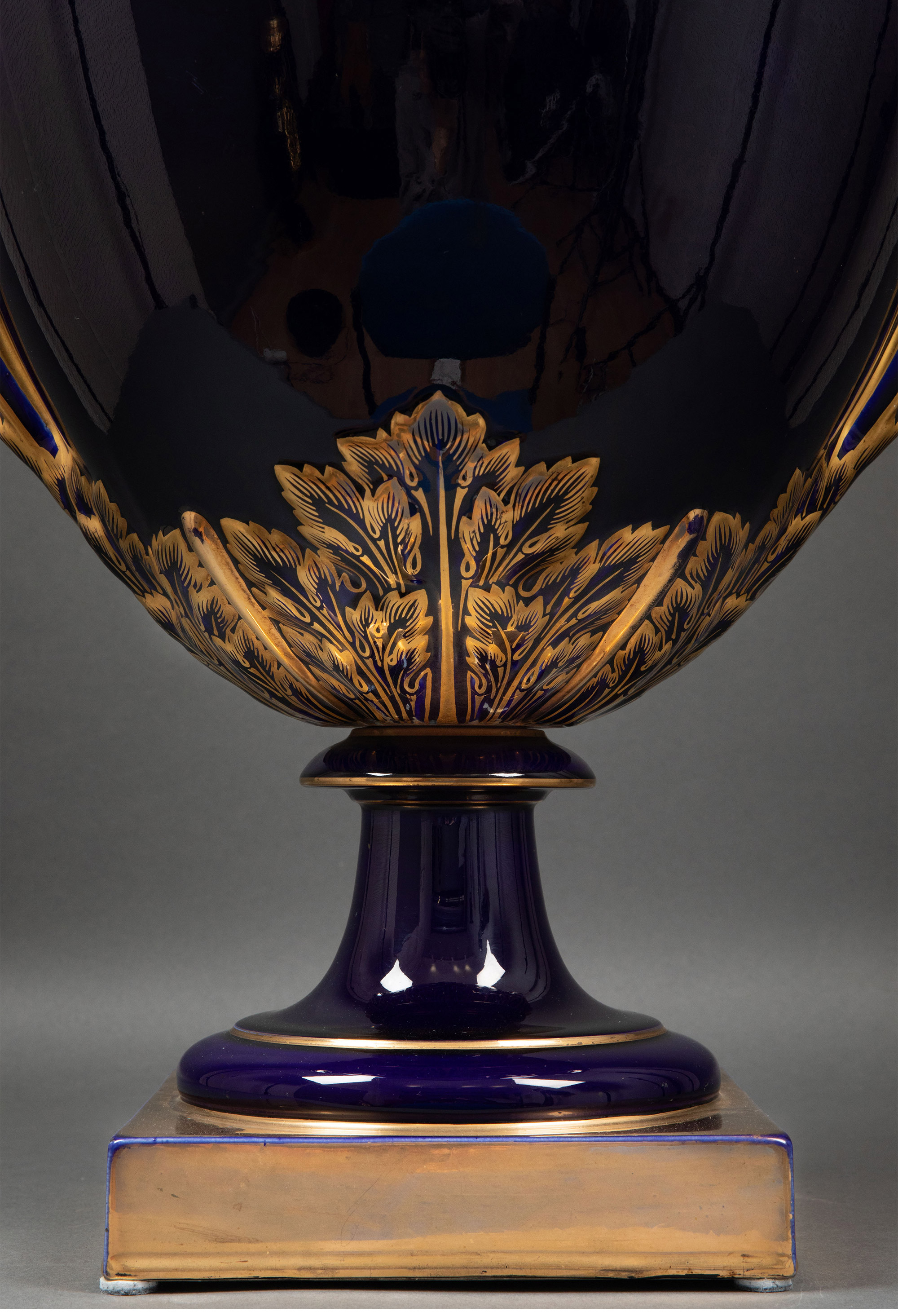 独角鹿西洋古董 19世纪末法国出品路易十六风格铜鎏金精雕嵌塞弗尔风格帝王蓝瓷瓶瓷瓶台灯一对