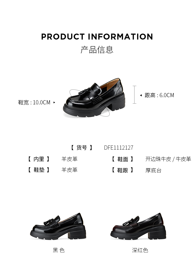 Dfuse迪芙斯2026春季新款复古流苏英伦风深口女鞋休闲乐福鞋深口单鞋DFE1112127