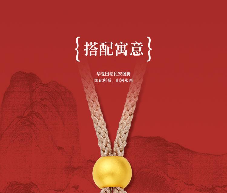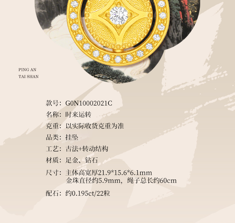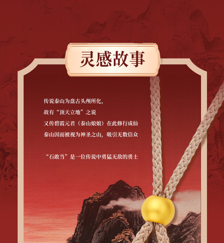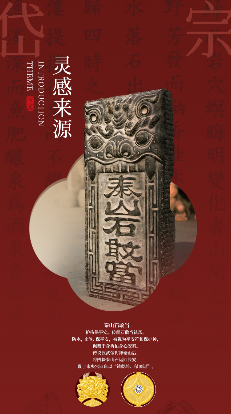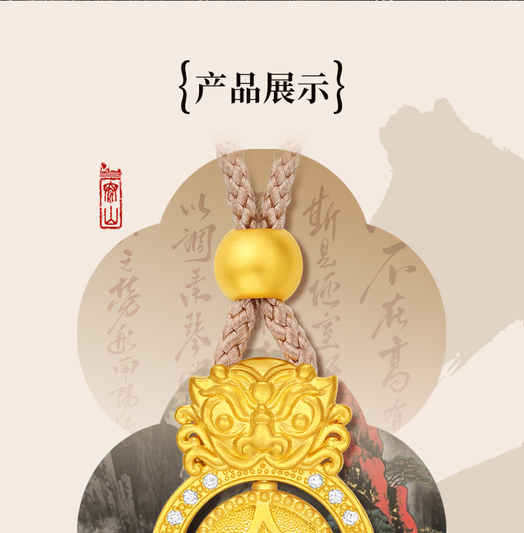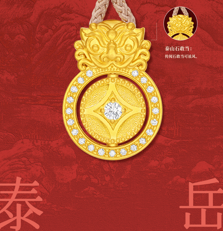 周大生平安泰山足金钻石吊坠黄金点钻石敢当挂坠配绳七夕礼物