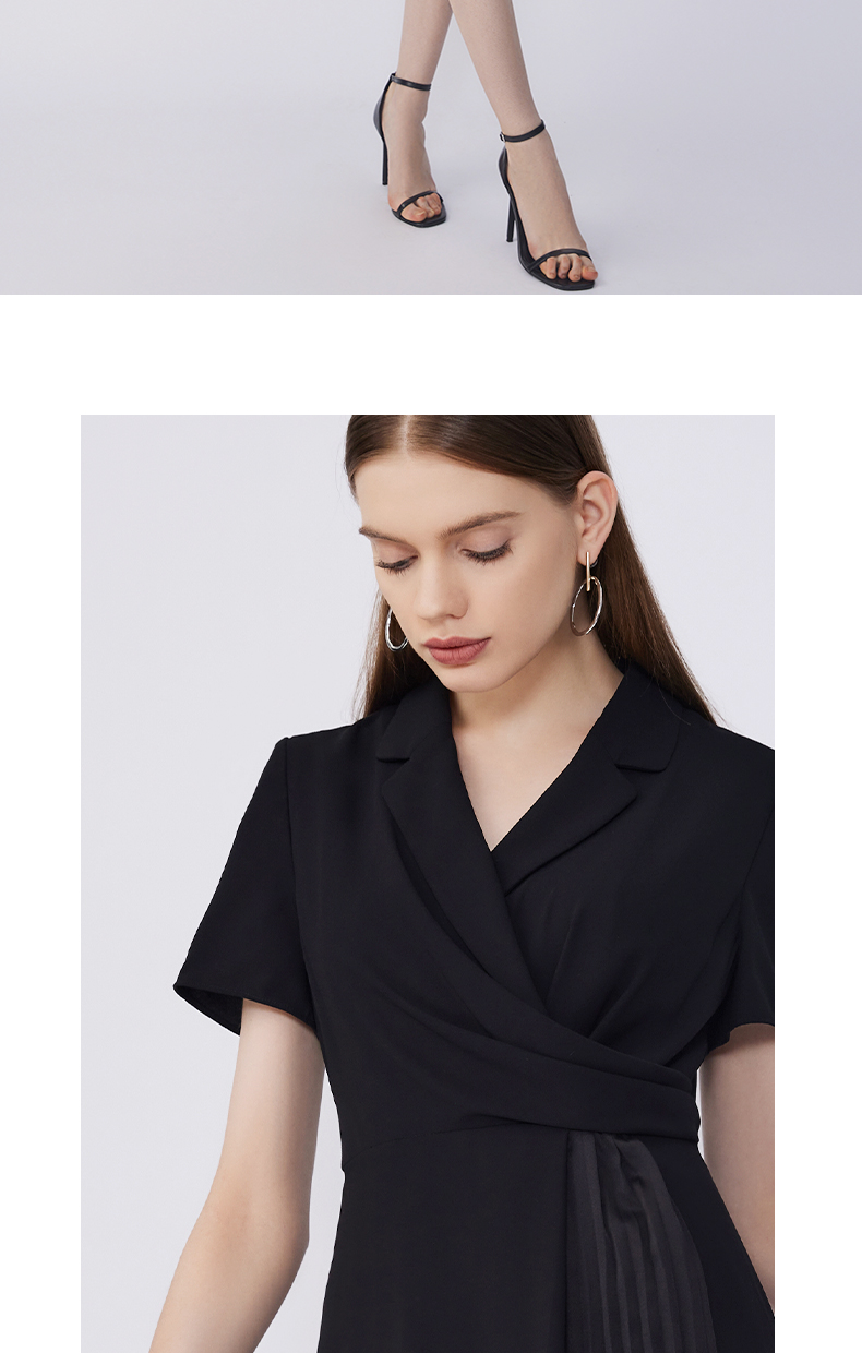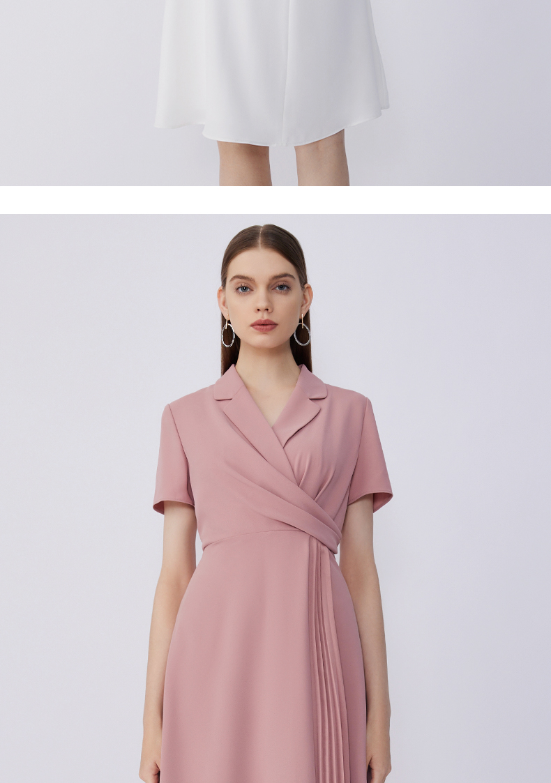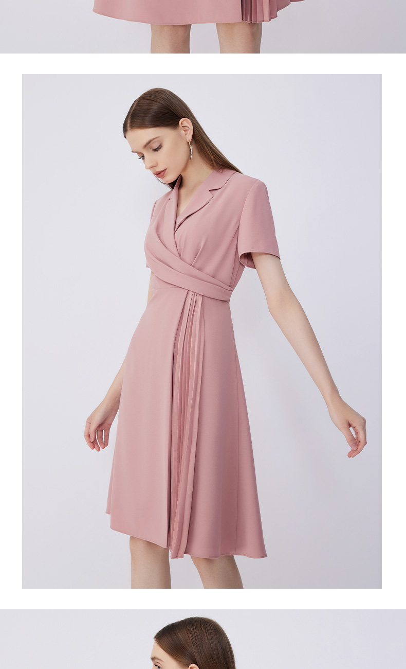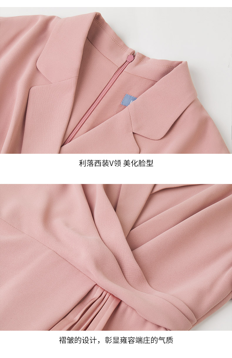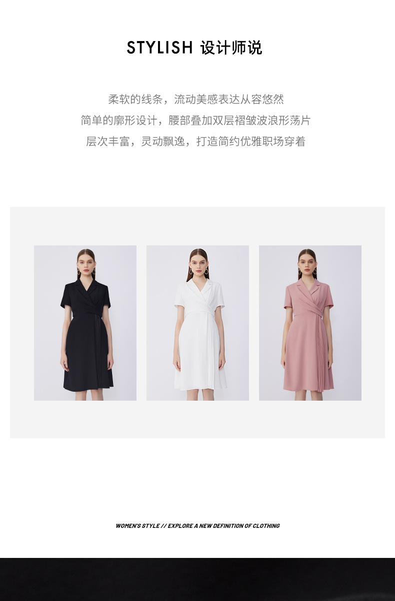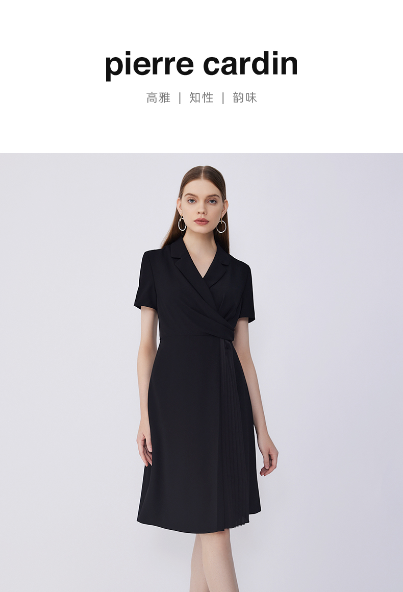 皮尔卡丹女装夏季新款通勤淑女西装压褶连衣裙C32DS014