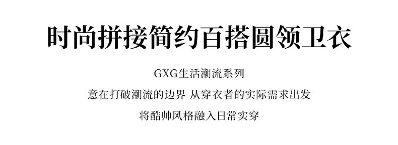 GXG男装秋季时尚拼接简约百搭罗纹圆领男式套头卫衣K&C