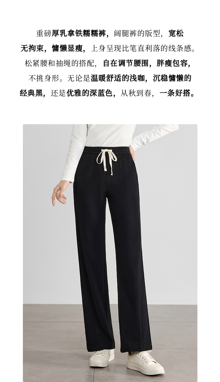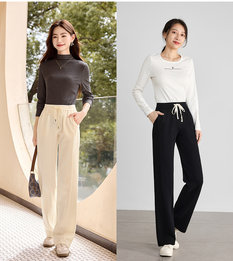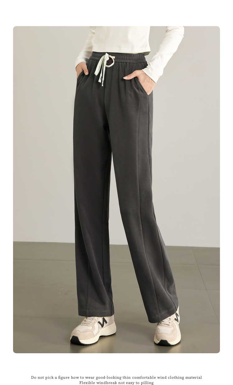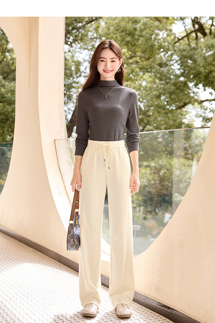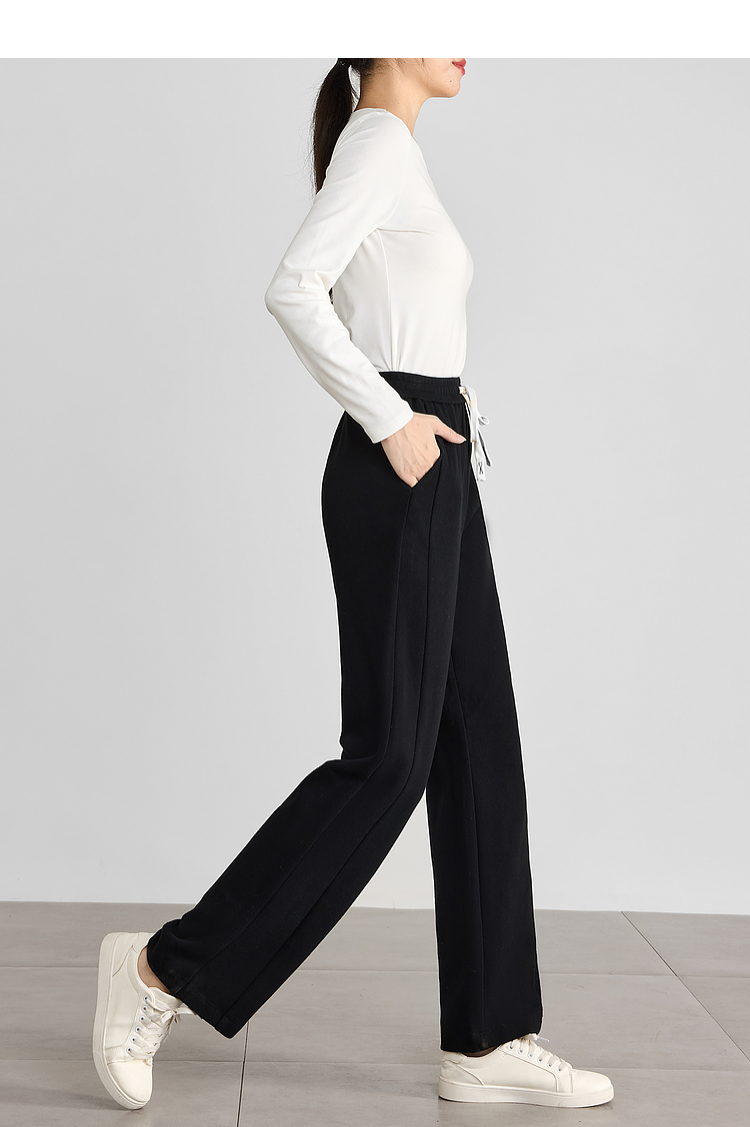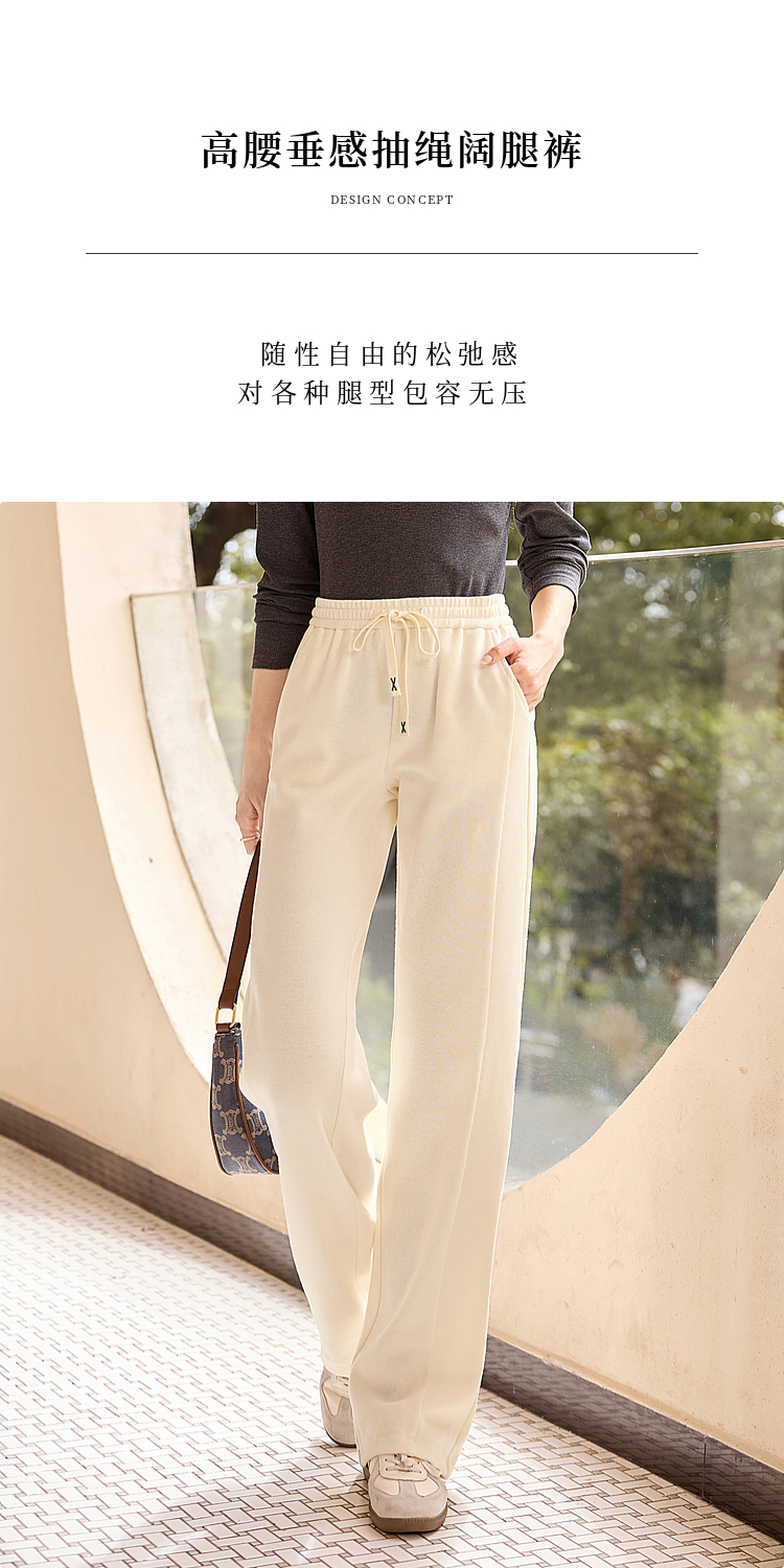【专属特价】熙世界软糯风窄版直筒阔腿裤女秋季新款高腰休闲长裤子宽松糯米裤