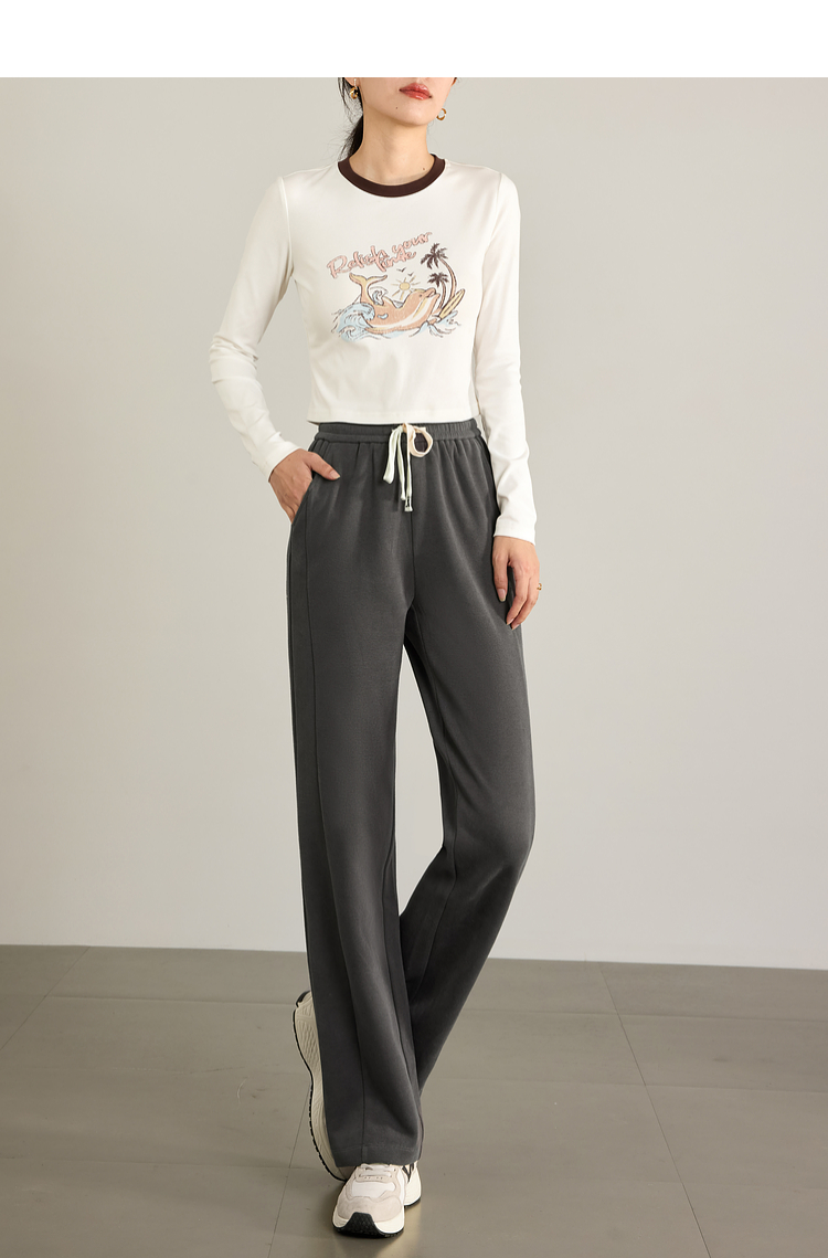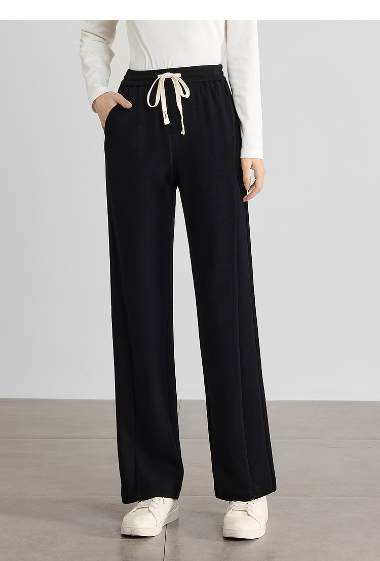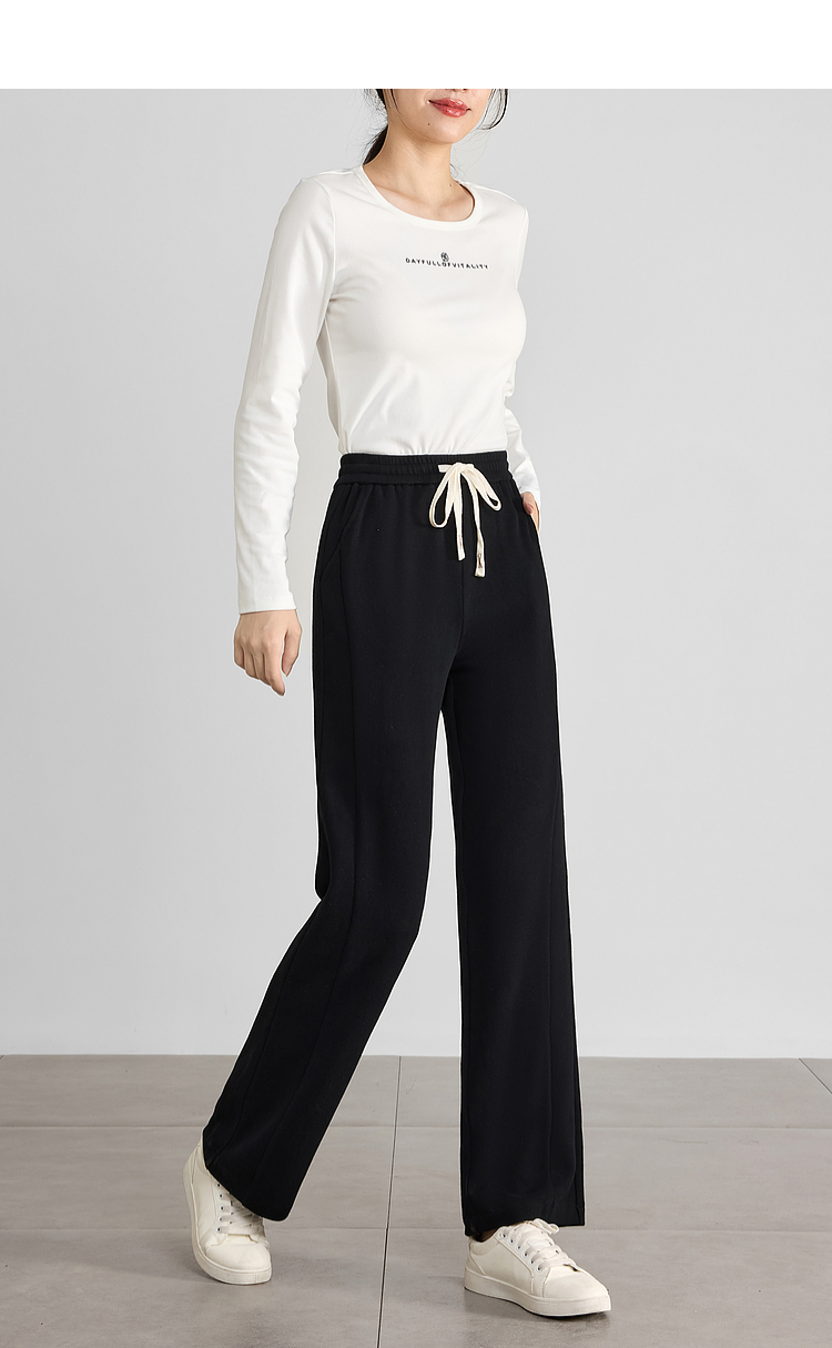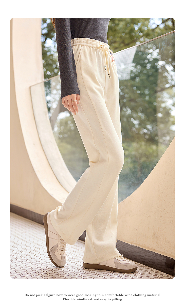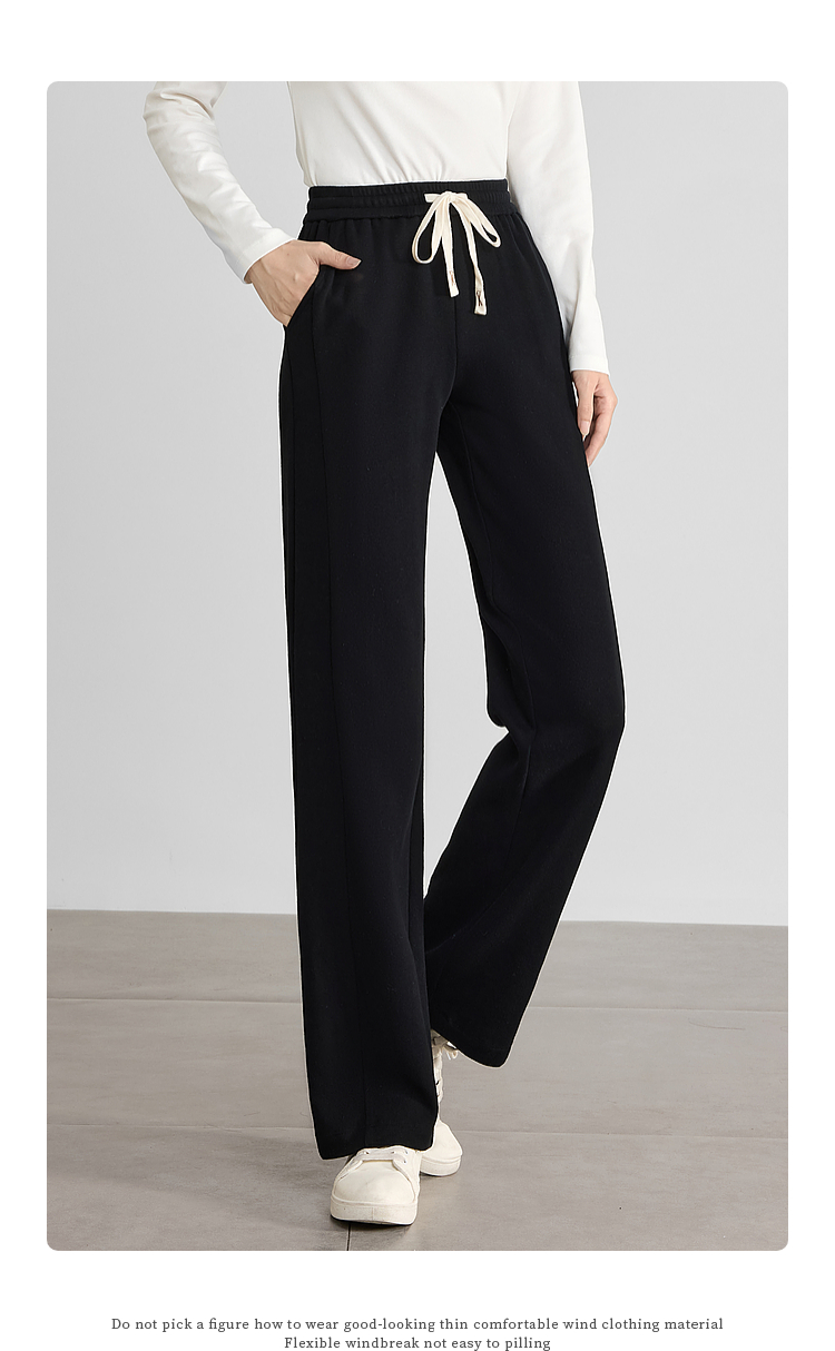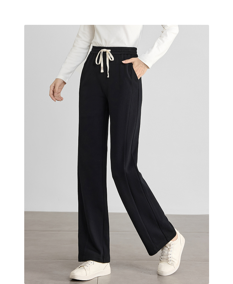 【专属特价】熙世界软糯风窄版直筒阔腿裤女秋季新款高腰休闲长裤子宽松糯米裤