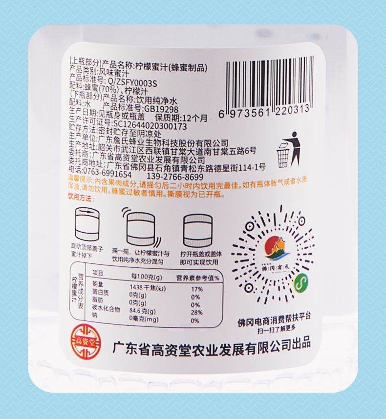 【佛冈手礼】柠檬蜂蜜水350ml*1瓶*6瓶