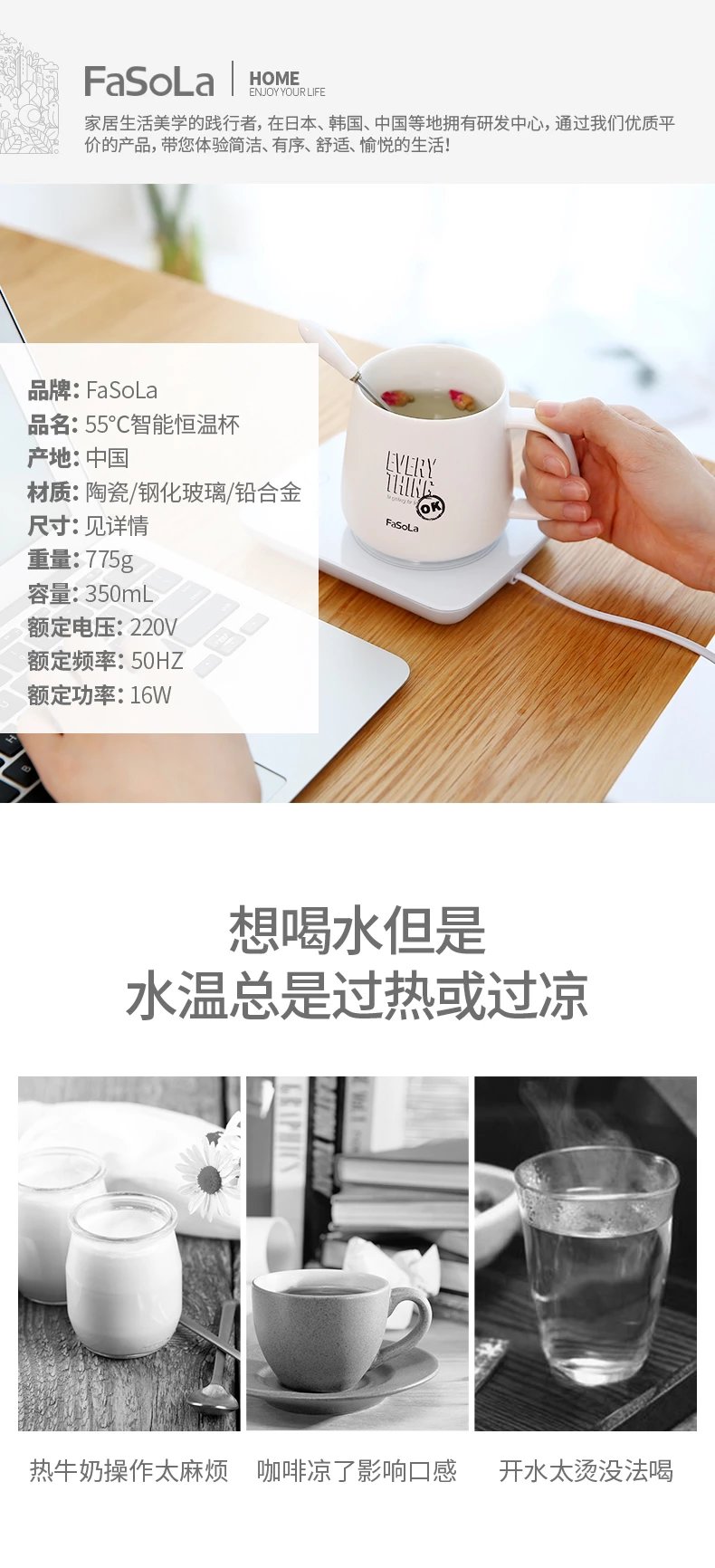 FaSoLa智能恒温杯55度保温底座杯垫暖暖杯加热牛奶陶瓷情侣马克杯
