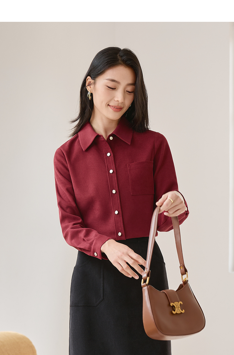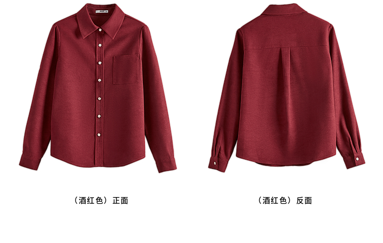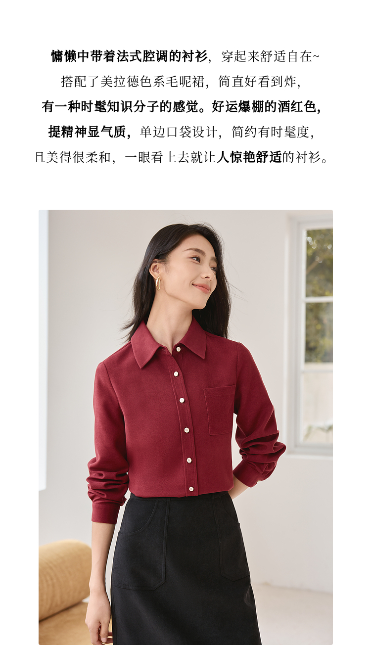 【年货节】熙世界法式气质酒红色衬衫2025秋装长袖通勤休闲高级感磨毛衬衣