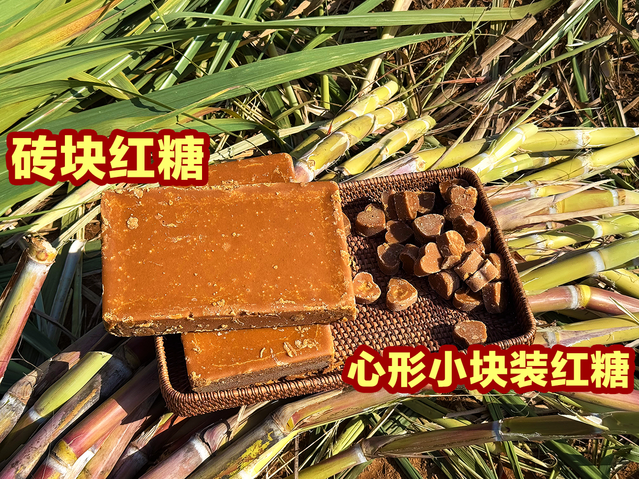 一种是实惠的砖块红糖(每块1斤),另一种是便于携带的心形小块红糖,让您随时随地都便捷享用