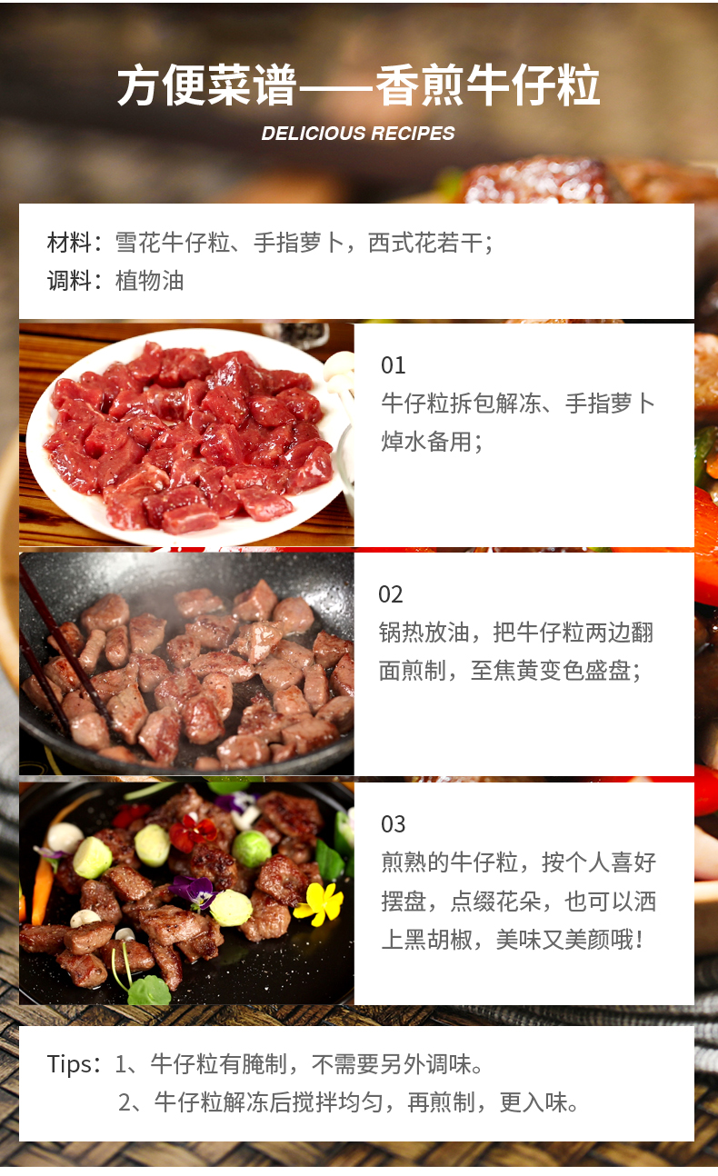 如意三宝 雪花牛仔粒 牛肉粒牛肉生鲜已腌制半成品方便菜美食 250g*4盒