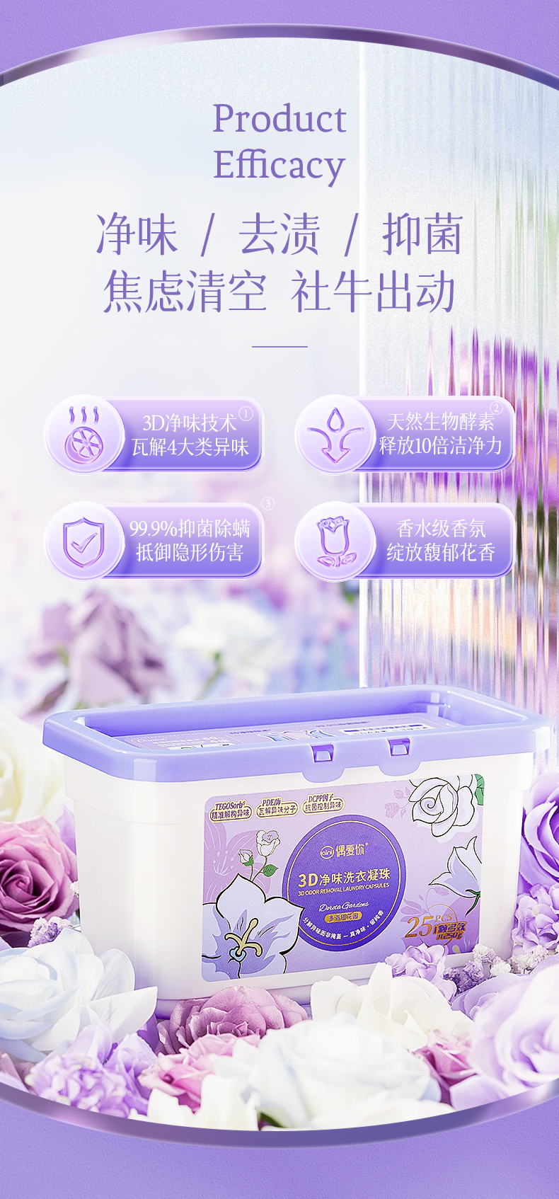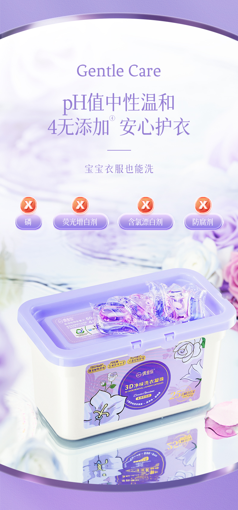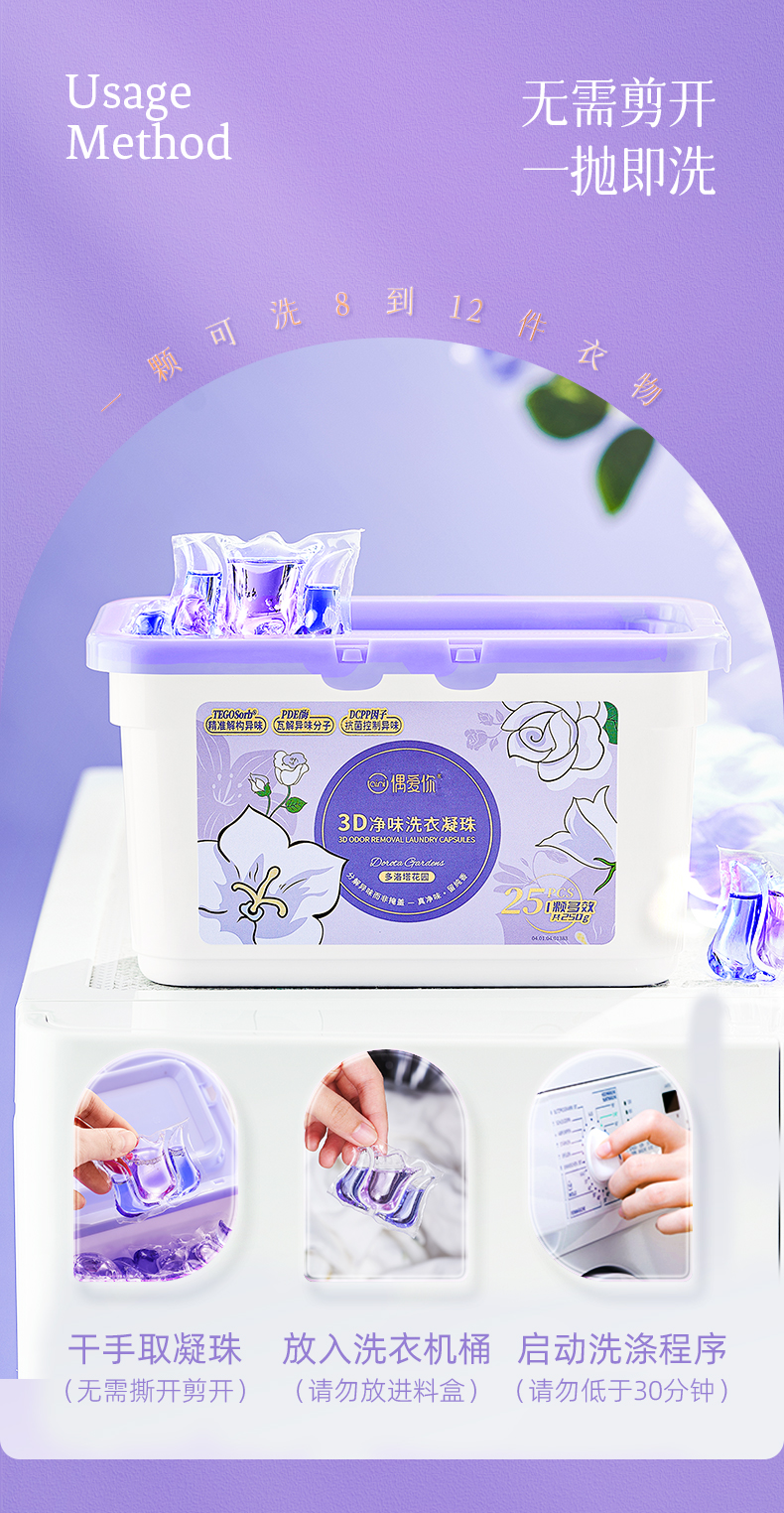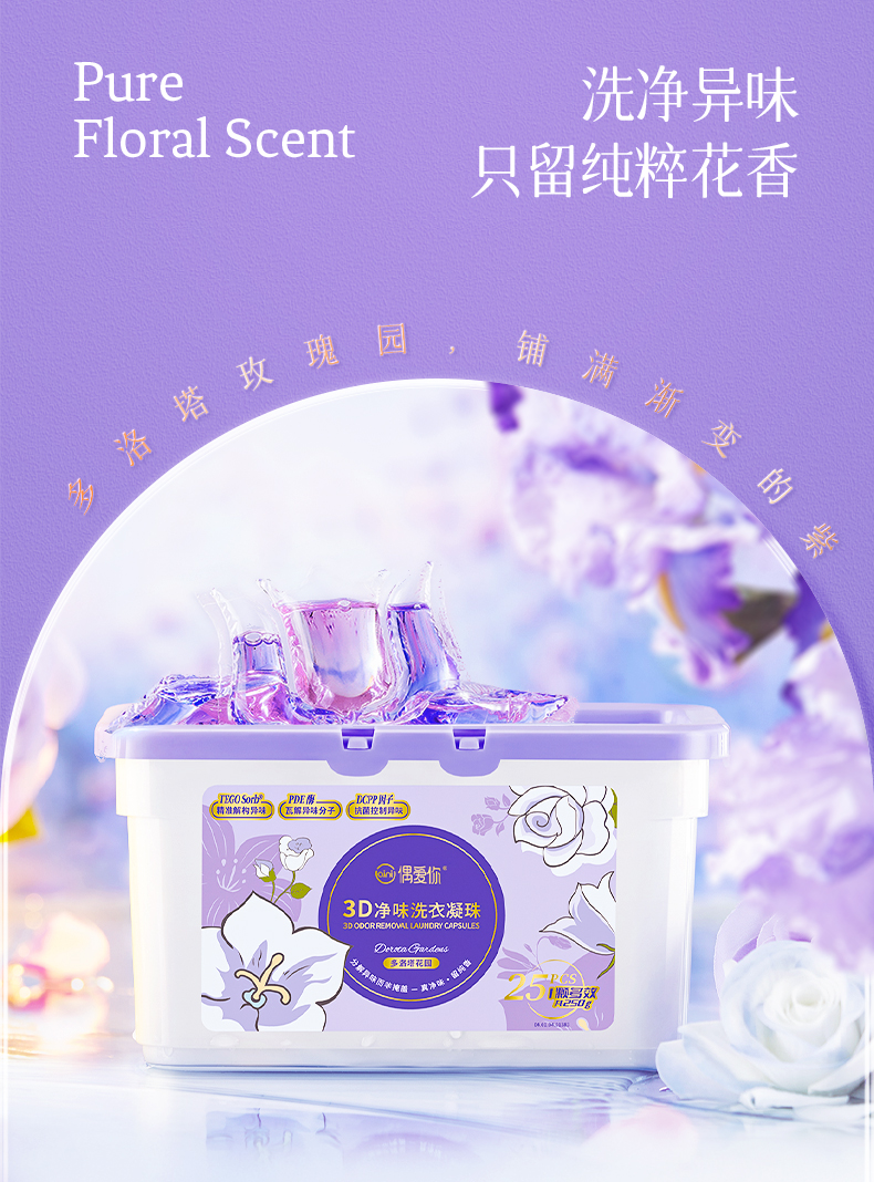 偶爱你 3D净味洗衣凝珠 10g*25颗*2盒 高倍渗透 搅碎污渍 抽离碎渍 48小时发货
