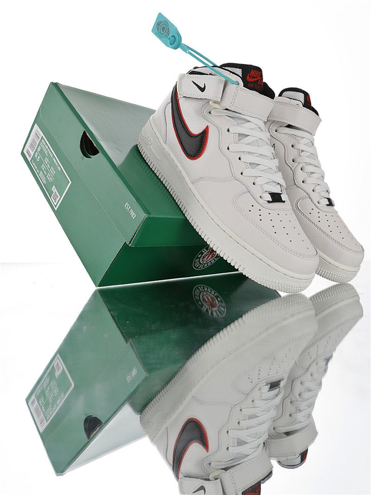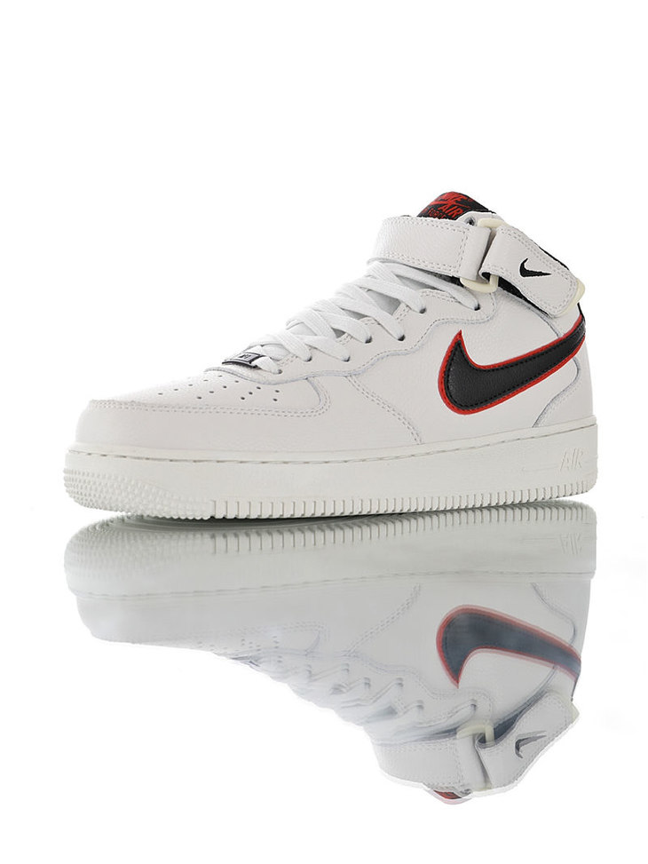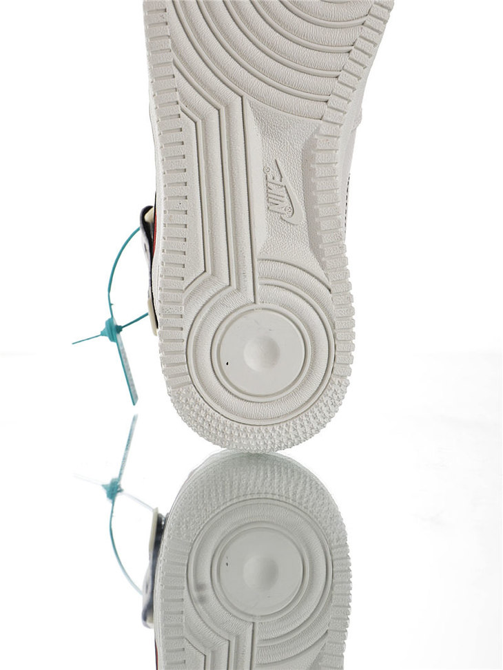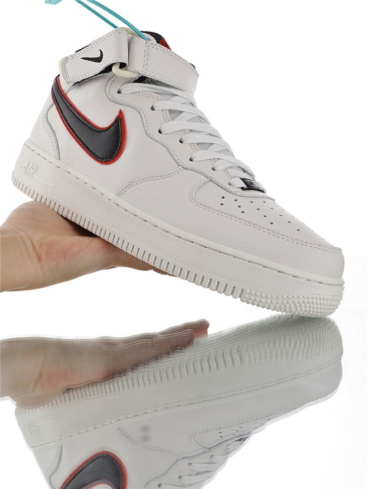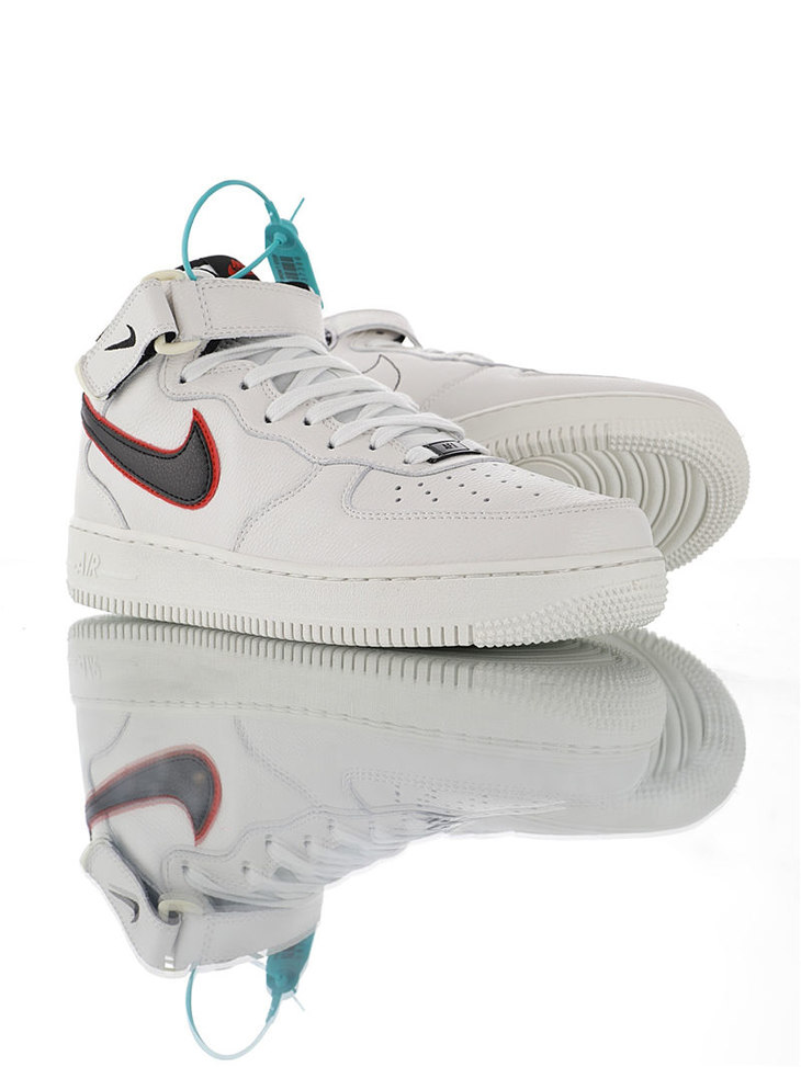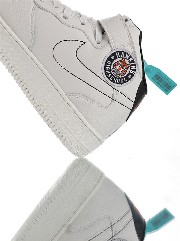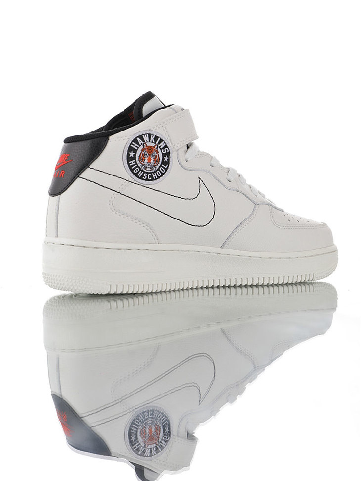耐克Nike Air Force 1 Mid '07 LV8 怪奇物语限定 采用荔枝纹移膜皮革材质 内置全掌air sole气垫 耐克空军一号中帮运动板鞋 皮革白海军蓝红钩