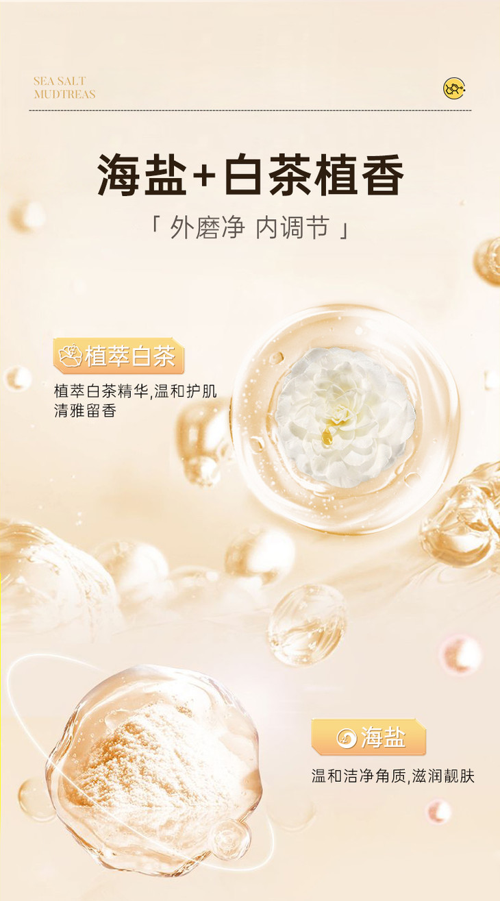 【浴室里必须有它】白茶海盐搓泥宝搓泥宝 专利除螨 啫喱清洁去角质死皮 不沾体毛 男女全身通用