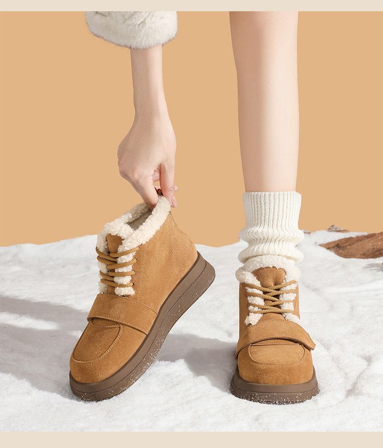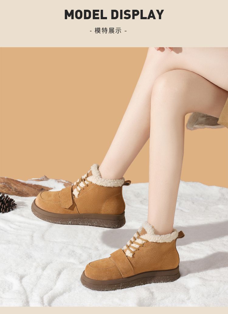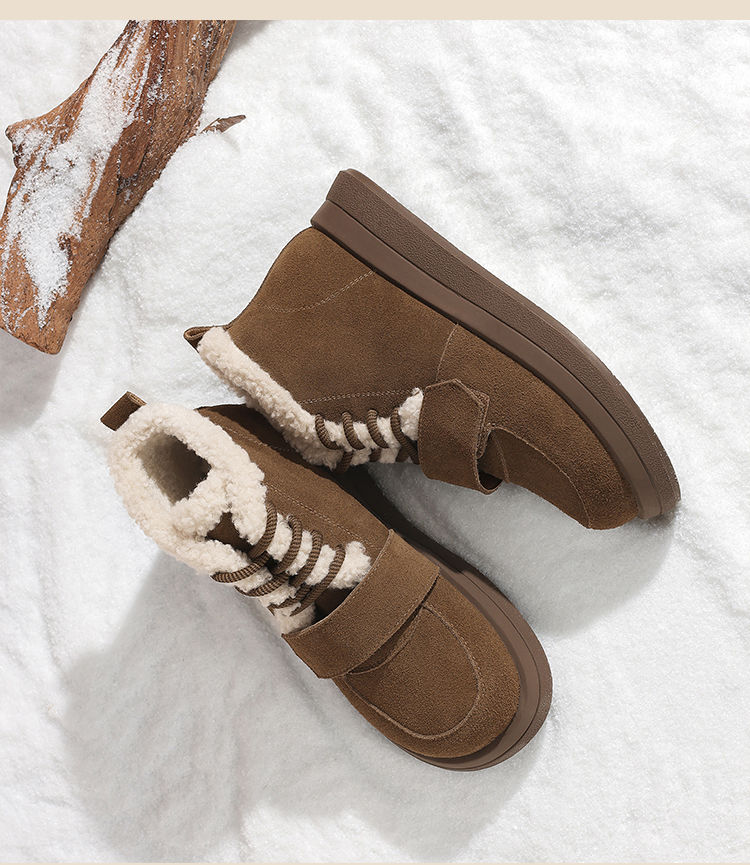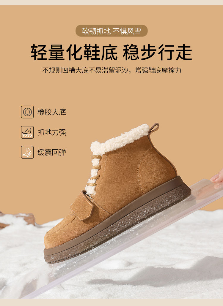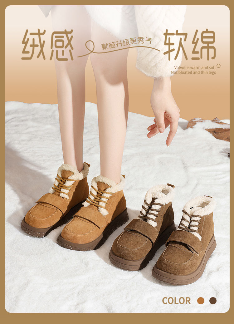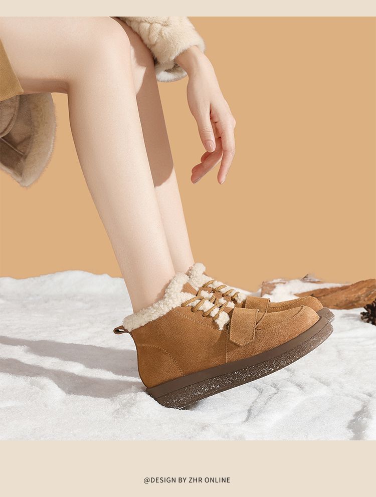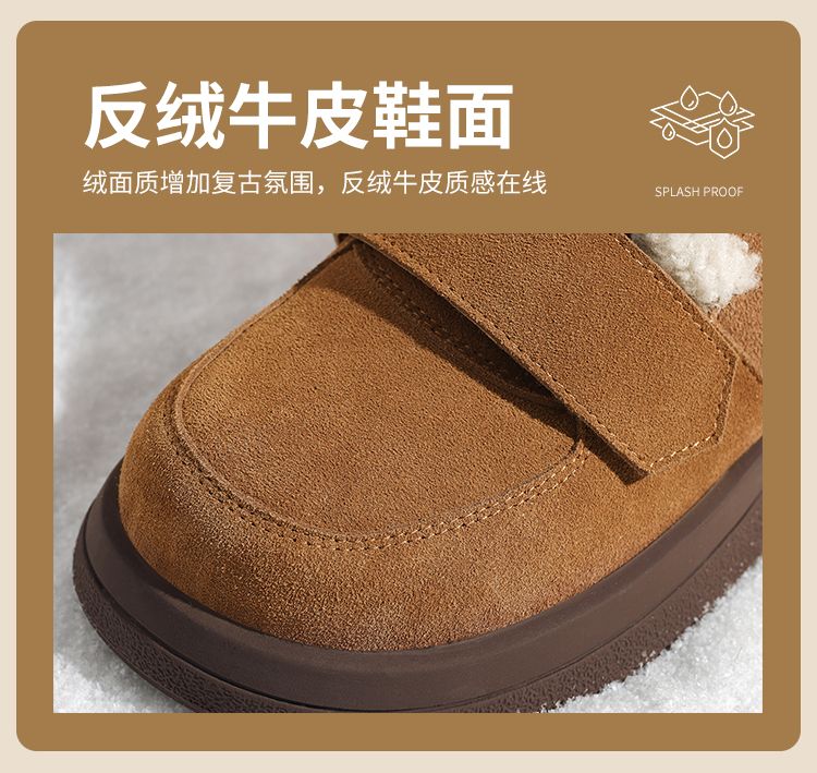 ZHR则则真皮棉鞋女2024冬季新款加绒保暖厚底雪地靴勃肯毛毛鞋女