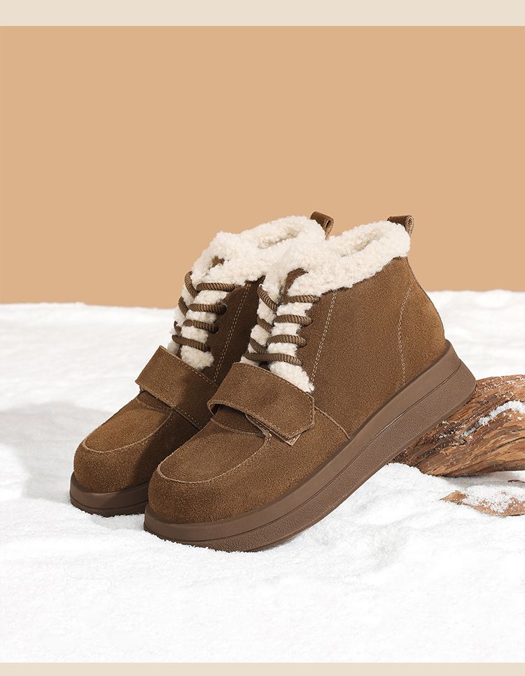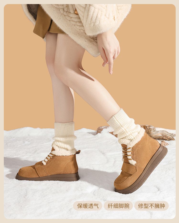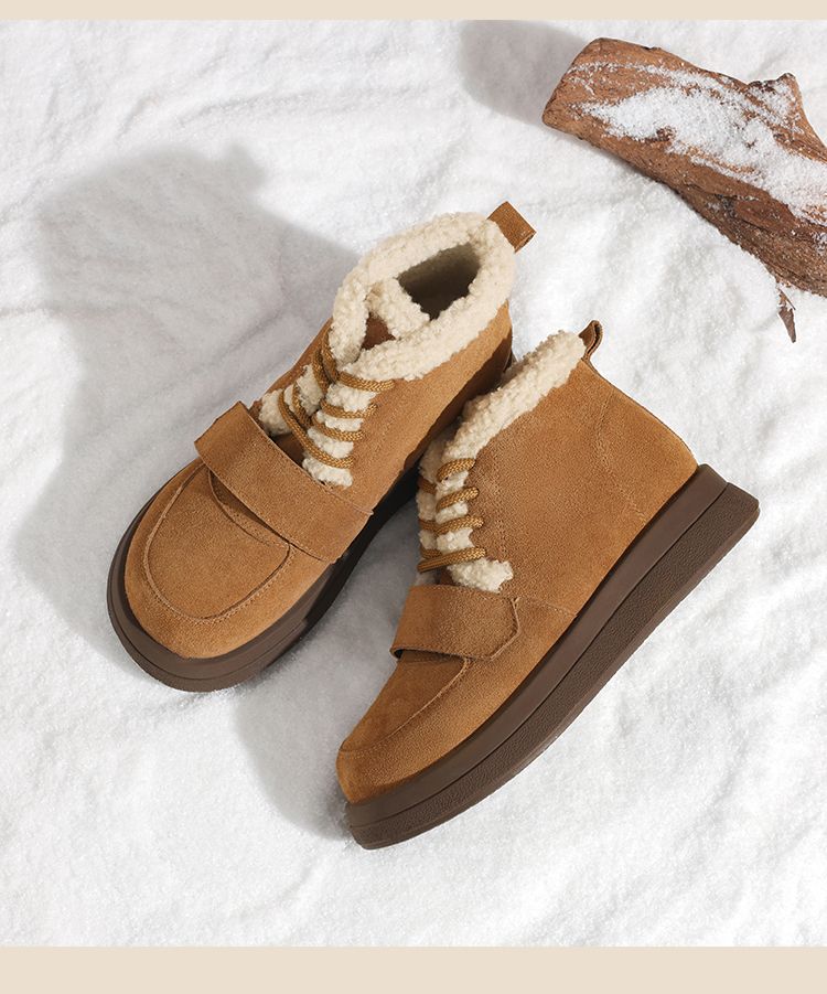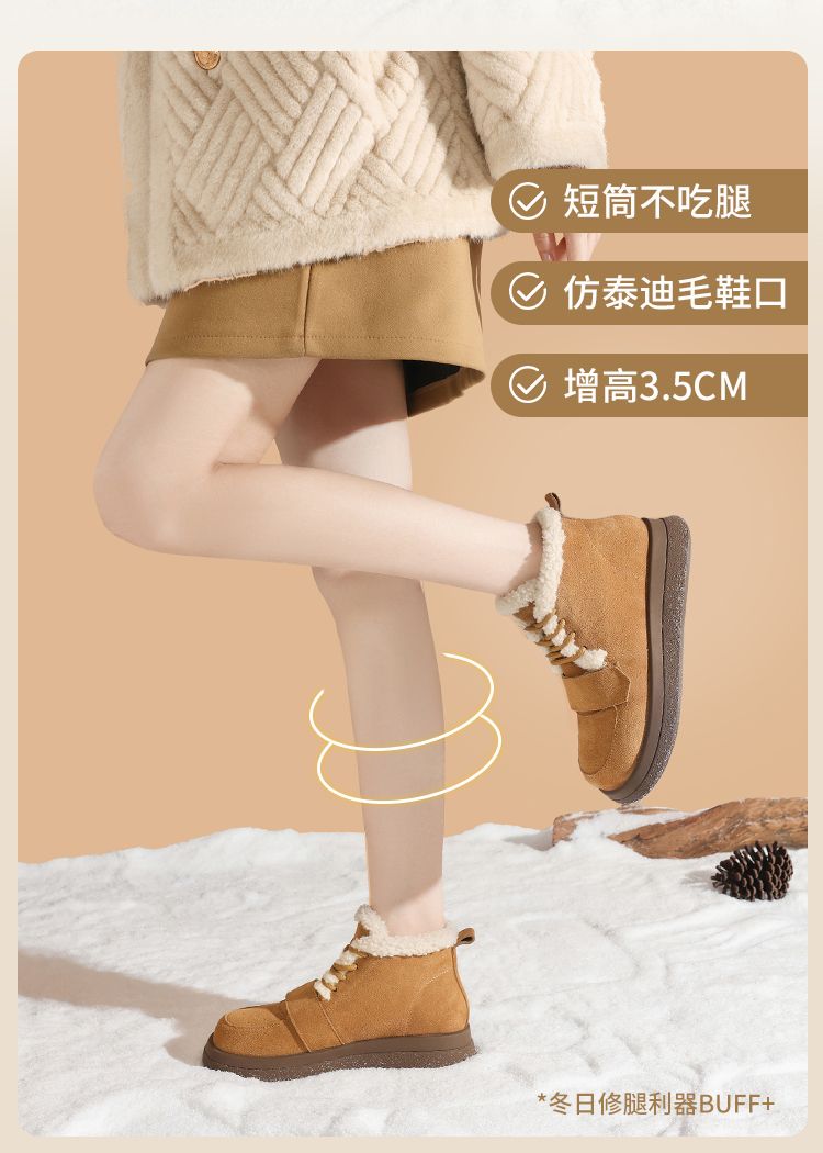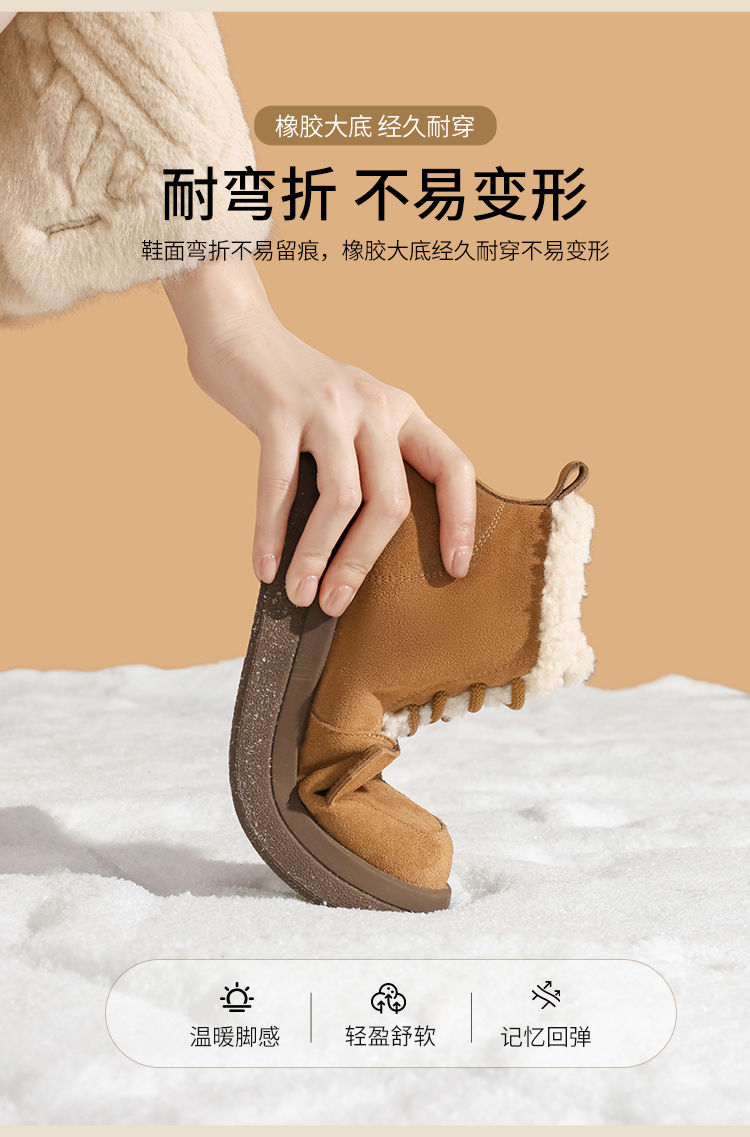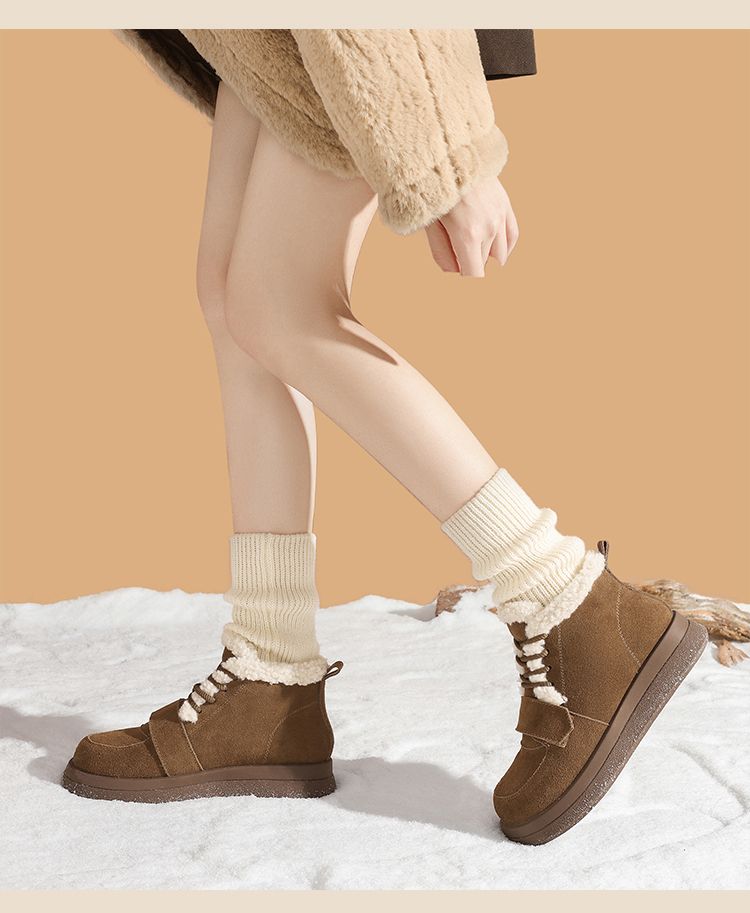 ZHR则则真皮棉鞋女2024冬季新款加绒保暖厚底雪地靴勃肯毛毛鞋女