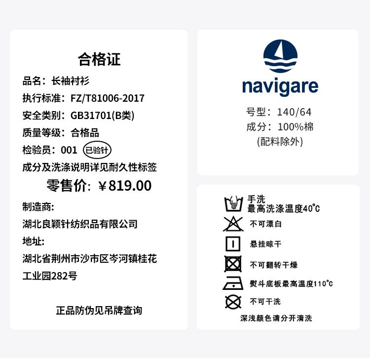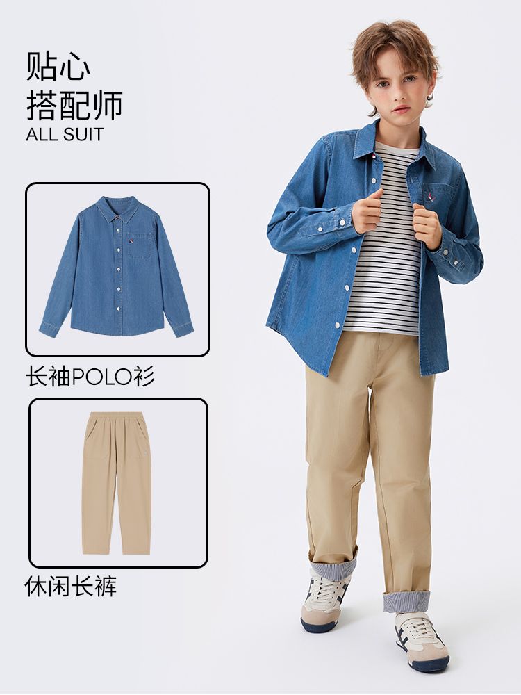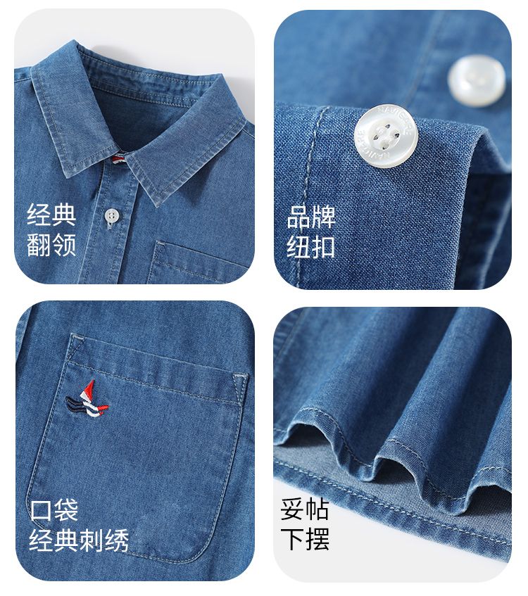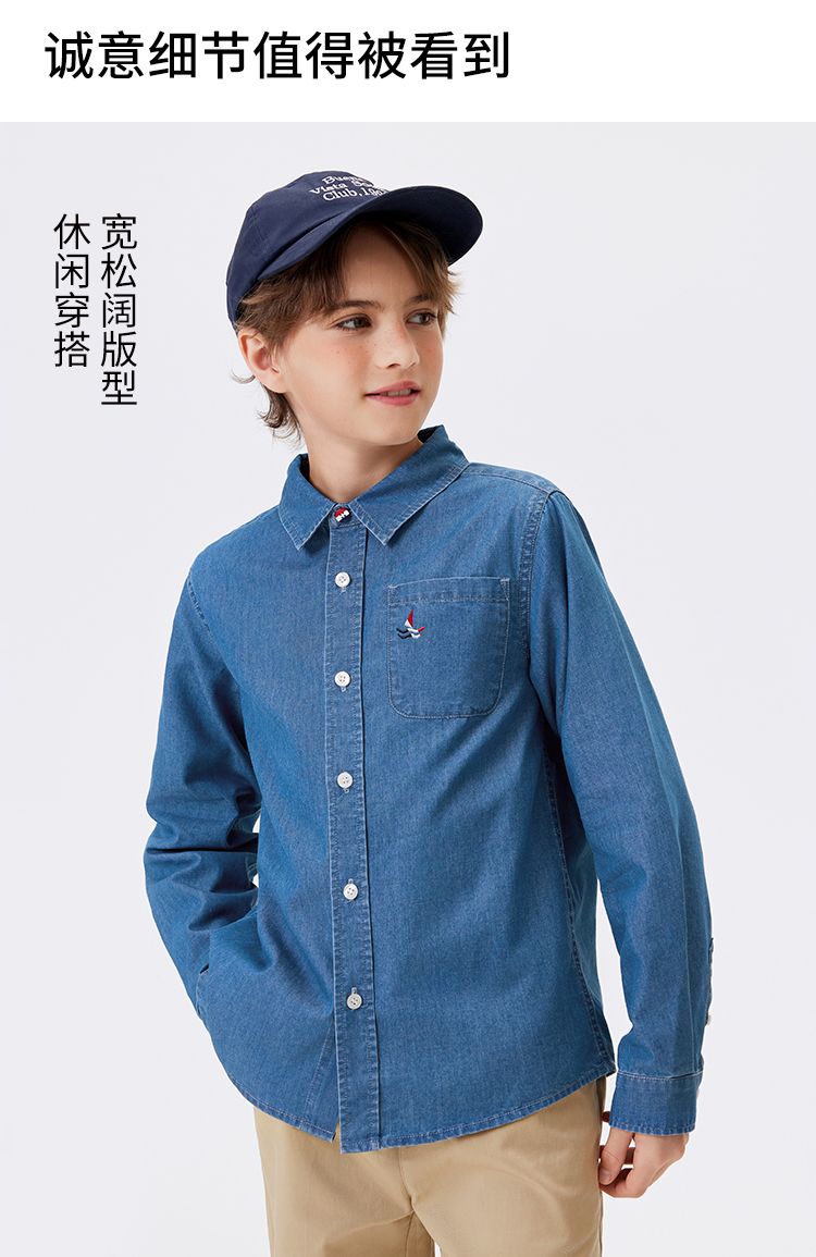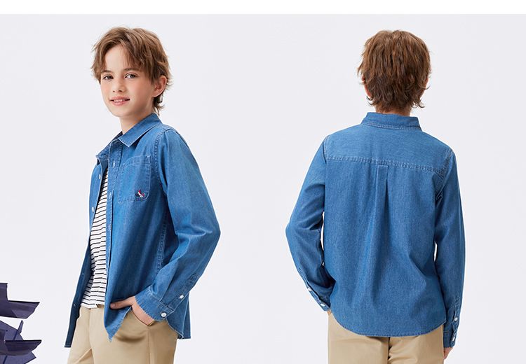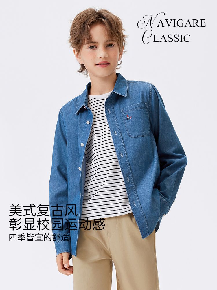 【纳维凯尔】【120-160】Navigare意大利小帆船男童春秋牛仔衬衫
