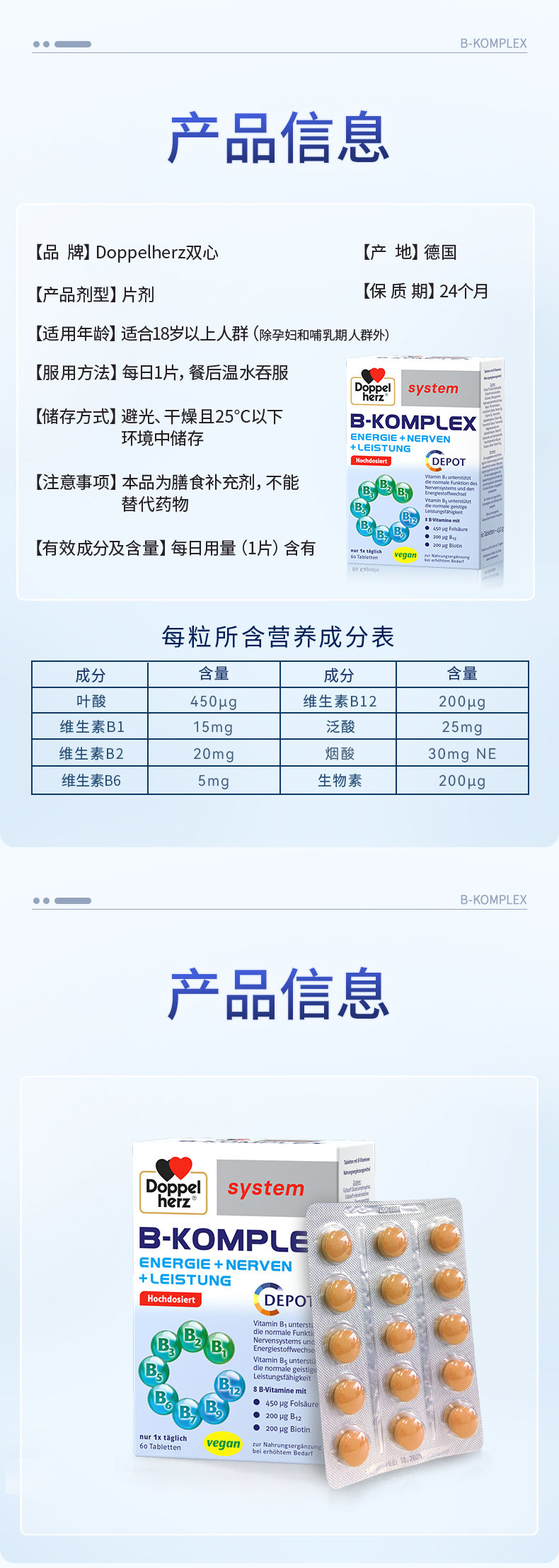 【德国双心】维生素b族缓释片多种复合维生素*1-2盒装